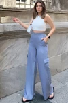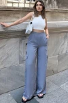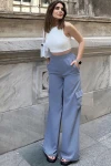 Kadın Gri Beli Lastikli, Kargo Cepli, Bol Paça Kupra Kumaş Palazzo Pantolon - Tesettüre Uygun