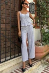 Kadın Gri Keten V Yaka Askılı Uzun Takım