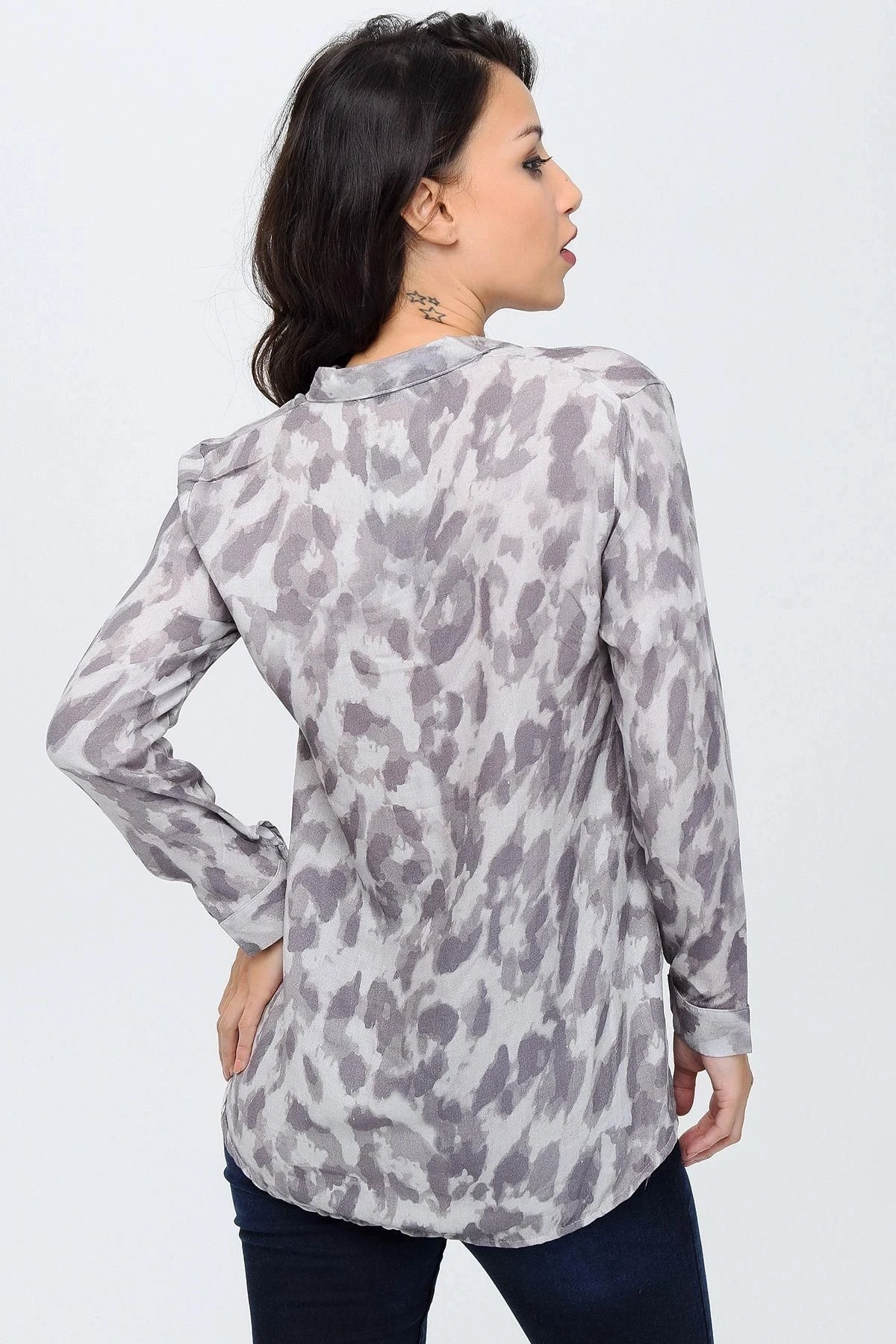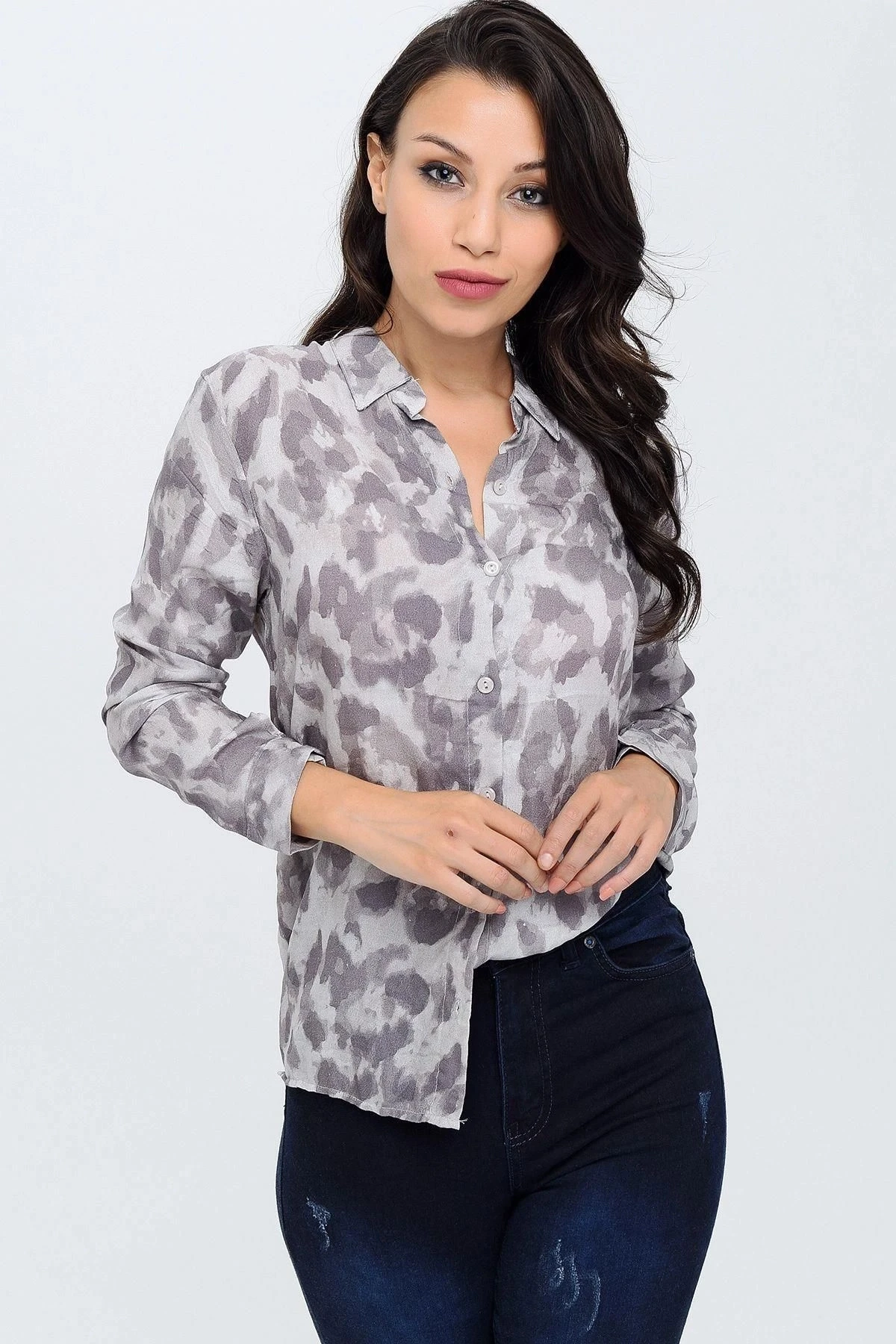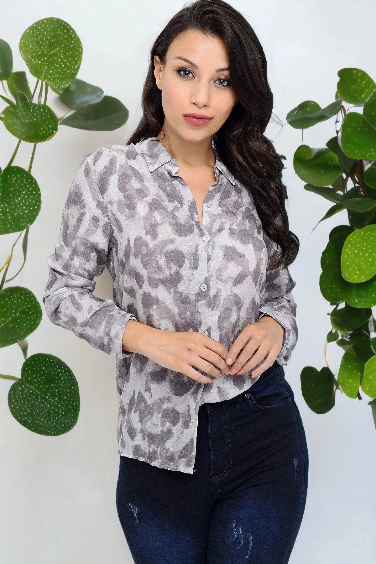 Bu gömlek, zarif ve şık bir görünüm sunmak için tasarlanmıştır.; Kumaşı, %100 viskon malzemeden yapılmıştır, bu da giysinin yumuşak, hafif ve nefes alabilen bir doku sağlar.; Viskon kumaşın lüks bir parlaklığı vardır ve cildinize hoş bir dokunuş sağlar.; Gri renkli bu klasik yaka gömlek, herhangi bir gardıroba mükemmel bir tamamlayıcıdır.; Gri, zamanın testine dayanan klasik bir renktir ve kolayca diğer renklerle kombinlenebilir.; Bu gömlek, tarzınızı tamamlamak için çeşitli kombinasyonlarla kullanabileceğiniz çok yönlü bir parçadır.; Uzun kollu tasarımı, daha soğuk havalarda da rahatlık sağlar ve kollarda ince bir zarafet yaratır.; Çiçek desenleri, gömleğe canlılık ve şıklık katarken, aynı zamanda zamansız bir tarz sunar.; Bu gömlek, klasik bir kesime sahip olup vücut hatlarınızı takip eden bir şekle sahiptir, böylece size şık bir siluet sağlar.; Standart boy gömlek, birçok farklı bedene uyum sağlar ve herhangi bir vücut tipine uygun olanaklar sunar.; Bu gömlek, hem günlük hayatta hem de özel etkinliklerde giyilebilir ve her durumda tarzınızı yansıtmanıza olanak tanır.; Bu gömlek, kaliteli kumaşı, çekici rengi, şık tasarımı ve rahat kesimi ile öne çıkıyor.; İster iş yerinde, ister bir gece dışarıda veya gündelik bir buluşma için olsun, bu gömlek sizin için mükemmel bir seçim olacaktır.