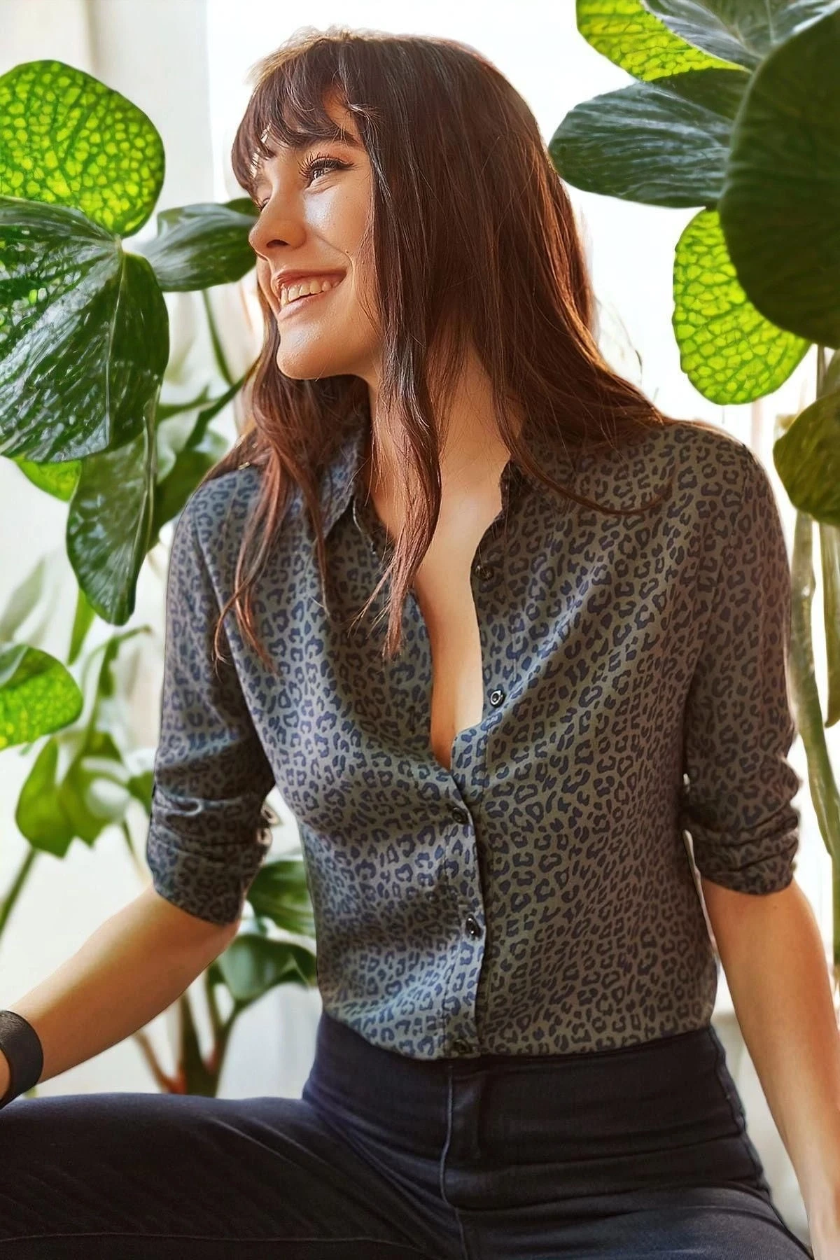Bu şık ve trendy görünümlü gömlek, gri renkli ve klasik yaka detayıyla öne çıkıyor.; Uzun kollu tasarımı, serin havalarda sizi sıcak tutarken, leopar desenli dokusuyla da gözleri üzerinize çekiyor.; Regular kesimine sahip olan bu gömlek, vücut hatlarınızı hoş bir şekilde vurgulayarak şık bir duruş sergilerken, standart boyu sayesinde rahat bir kullanım sunuyor.; Bu ürün, %100 polyester kumaş içeriğiyle üretilmiştir.; Polyester kumaş, hafif ve dayanıklı olmasıyla bilinirken, aynı zamanda kırışmaya karşı dirençli olduğu için kolayca bakım yapmanızı sağlar.; Bu gömlek, kaliteli kumaş yapısıyla uzun ömürlü kullanım sağlayarak size yüksek bir konfor sunar.; Leopar desenli tasarımı, modayı takip eden ve cesur bir tarzı benimseyen kişiler için mükemmel bir seçimdir.; Bu desen, şıklığınıza farklılık katarken aynı zamanda güçlü ve çarpıcı bir görünüm yaratmanıza yardımcı olur.; Gri renkli gömlek, her mevsim ve her stil için uygun bir seçenek olup, kombinlerinizi tamamlarken size geniş bir özgürlük sunar.; İster günlük hayatta ister özel bir davette giyin, bu gömlek size tarzınızı ifade etme imkanı verir.; Kısacası, gri renk klasik yaka, uzun kol, leopar desenli, regular kesim ve standart boy özelliklerine sahip bu gömlek, stil sahibi ve şık bir görünüm elde etmek isteyen herkes için ideal bir seçenektir.; Kaliteli kumaş yapısı ve özgün tasarımıyla sizi memnun edecek olan bu gömlek, gardırobunuzun vazgeçilmez parçalarından biri olmaya adaydır.