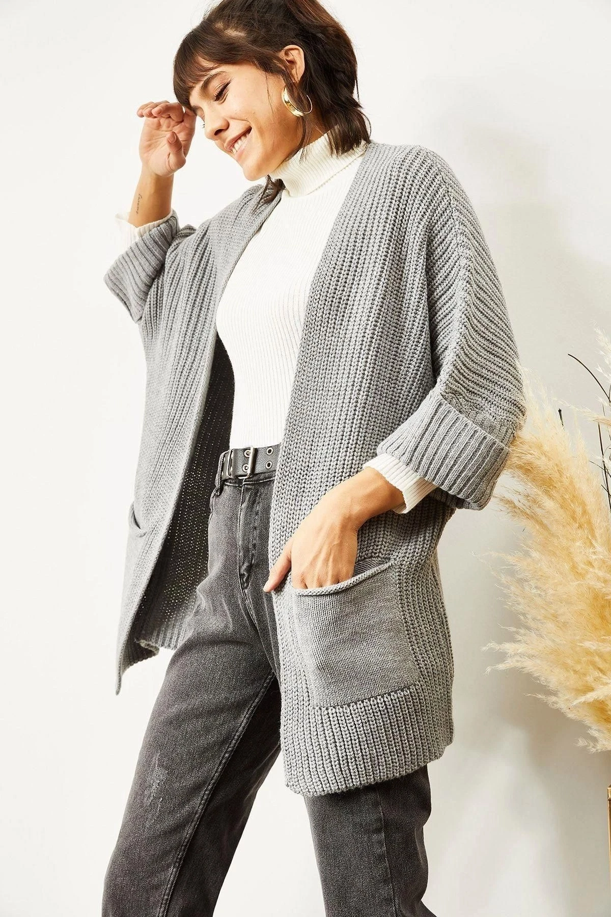 Bu Gri Renk V Yaka Cep Detaylı Uzun Kol Basic Regular Kesim Standart Boy Hırka, şıklığı ve rahatlığı bir araya getiren mükemmel bir seçenektir. ; Kumaşı %100 akrilikten üretilmiştir, bu da kalite ve dayanıklılık sağlar. ; Akrilik kumaş, yumuşak ve pürüzsüz dokusuyla size lüks bir his verirken, aynı zamanda uzun süreli kullanım için mükemmel bir şekilde şekil alır. ; Hırkanın gri rengi, modern ve zarif bir görünüm sunar. ; Bu çok yönlü renk, herhangi bir kıyafete mükemmel şekilde uyum sağlar ve gardırobunuzun vazgeçilmez bir parçası olabilir. ; Standart boyuyla her vücut tipine uyum sağlar ve rahat bir regular kesime sahiptir. ; Böylece, hareket özgürlüğünüzü kısıtlamadan gün boyu konforlu bir şekilde giyebilirsiniz. ; Bu hırkanın dikkat çeken özelliklerinden biri de V yaka tasarımıdır. ; V yaka, boyun ve dekolte bölgesini zarifçe vurgular ve şıklık katarken, biraz daha feminen bir hava katar. ; Ayrıca, cep detayları da pratiklik sunar. ; Cep detayları, küçük eşyalarınızı taşımanızı kolaylaştırır ve hırkaya ekstra bir işlevsellik katar. ; Bu Gri Renk V Yaka Cep Detaylı Uzun Kol Basic Regular Kesim Standart Boy Hırka, günlük giyimden özel etkinliklere kadar her durumda kullanabileceğiniz çok yönlü bir parçadır. ; Klasik ve şık tasarımı, her yaşa ve tarza uyum sağlar. ; Kendinizi sıcak tutarken tarzınızı da korumak istiyorsanız, bu hırka tam size göre!;