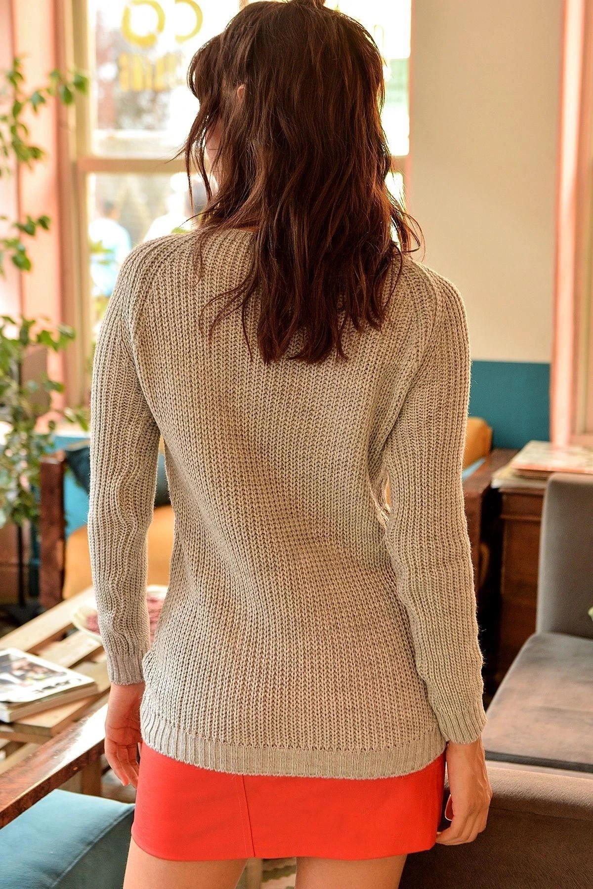 Kadın Gri Yuvarlak Yaka Basic Regular Kesim Uzun Kol Standart Boy Triko