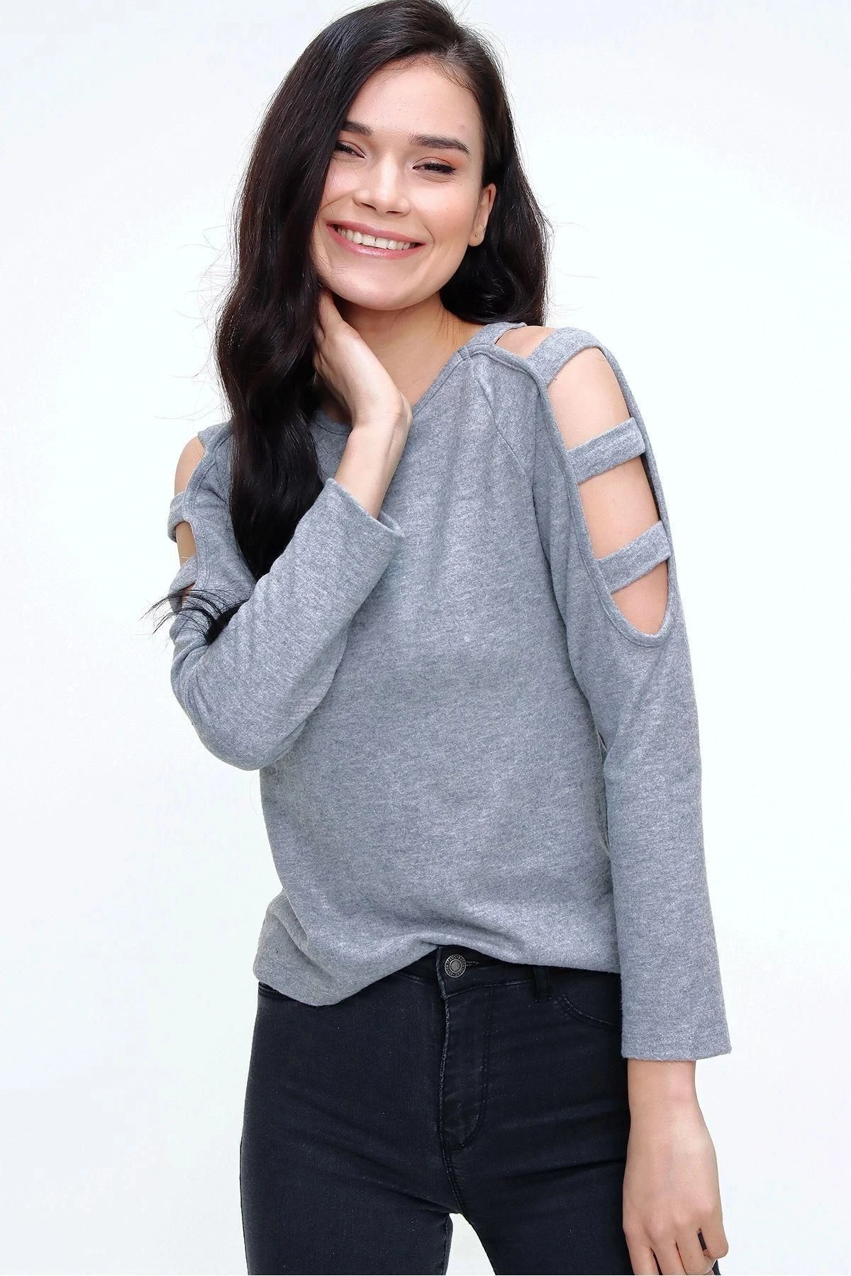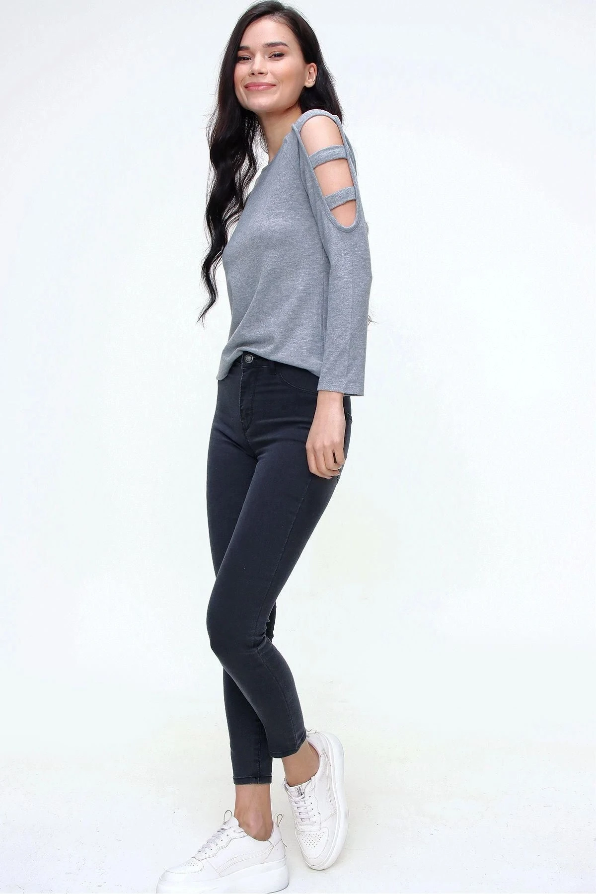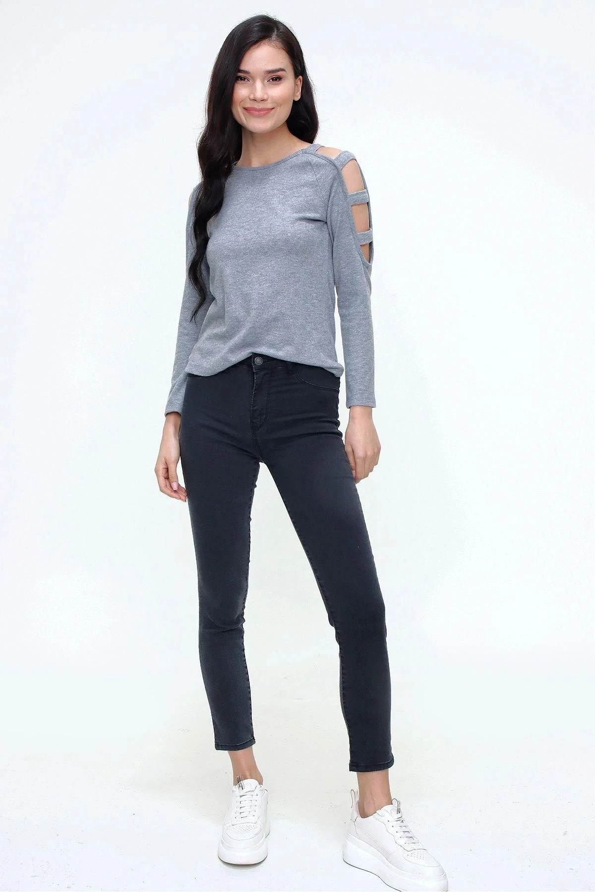 Tanımlanan ürün, şık ve zarif bir görünüm sağlayan bir bluzdur.; Gri renkli, yuvarlak yaka detayına sahip ve uzun kolludur.; Omuzlarda bulunan pencereler, bluza özgün bir tasarım dokunuşu katmaktadır.; Bu bluz, kullanılan kumaşın kalitesiyle öne çıkmaktadır.; %50 akrilik ve %50 pamuk karışımından üretilmiştir.; Bu sayede, hem dayanıklı hem de yumuşak bir dokunuşa sahiptir.; Akrilik, kumaşın dayanıklılığını artırırken, pamuk ise nefes alabilme özelliği sayesinde konforlu bir giyim deneyimi sunar.; Bluz, regular kesimiyle her bedene uyum sağlayacak şekilde tasarlanmıştır.; Standart boyutta üretilen bu bluz, her mevsimde ve çeşitli stil kombinasyonlarında kullanılabilir.; Şık detaylarının yanı sıra, kesimi de modern bir görünüm sunmaktadır.; Bu ürün, günlük giyimden özel etkinliklere kadar birçok farklı duruma uyum sağlamak için idealdir.; Gri rengi, zamansız bir şıklık sunarken, yuvarlak yaka ve omuzdaki pencereleriyle dikkat çekici bir detay ekler.; Bu bluz, gardırobunuzda önemli bir parça olacak ve farklı kombinasyonlarla tarzınıza özgün bir dokunuş katacaktır.