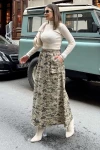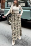 Kadın haki Beli Lastikli, Kargo Cepli, Rahat, Uzun Gabardin Kiloş Etek
