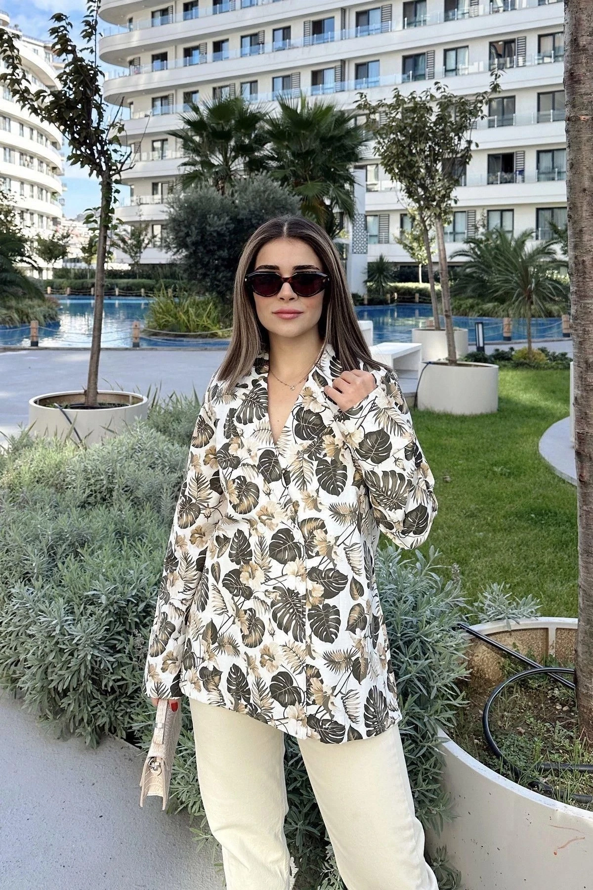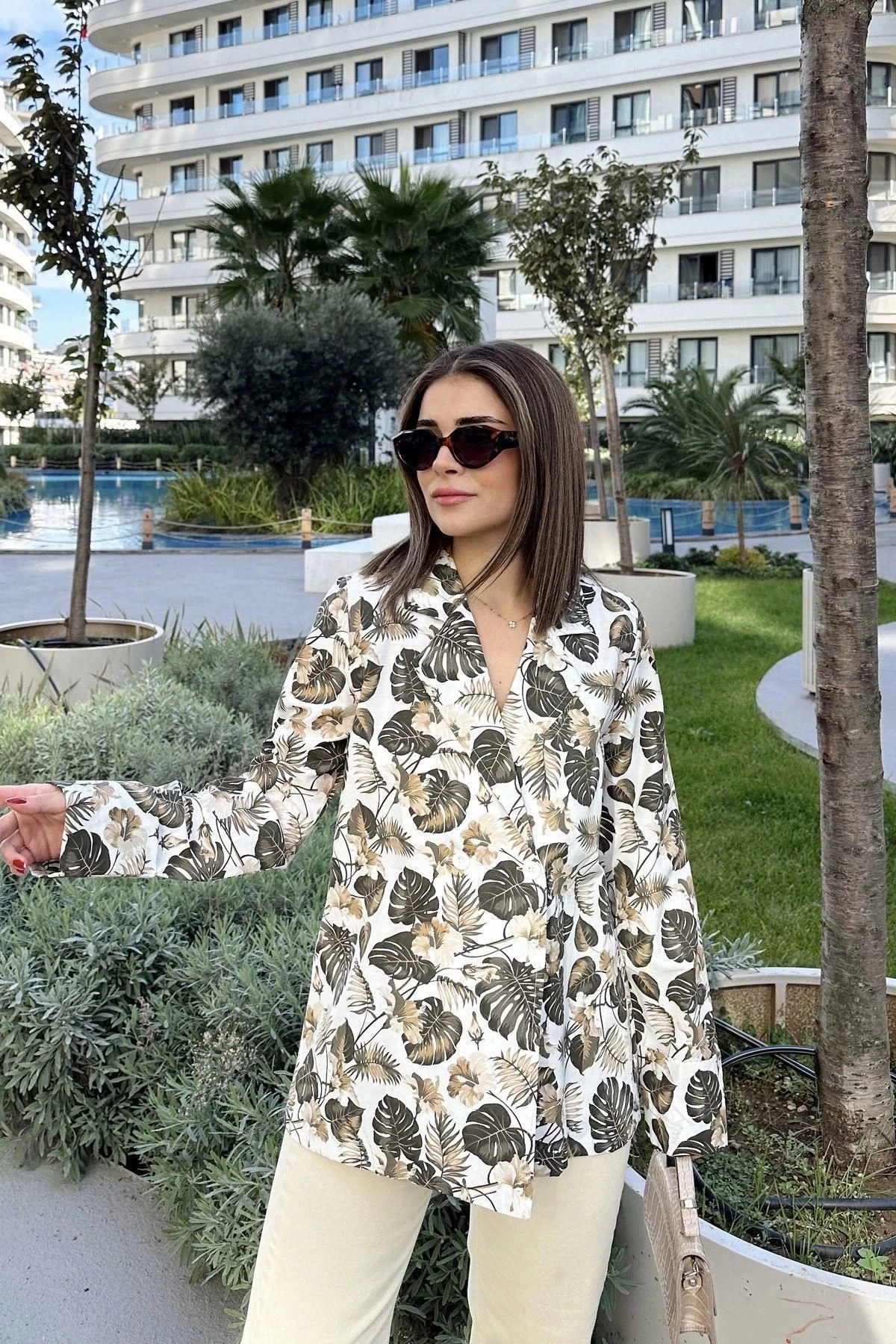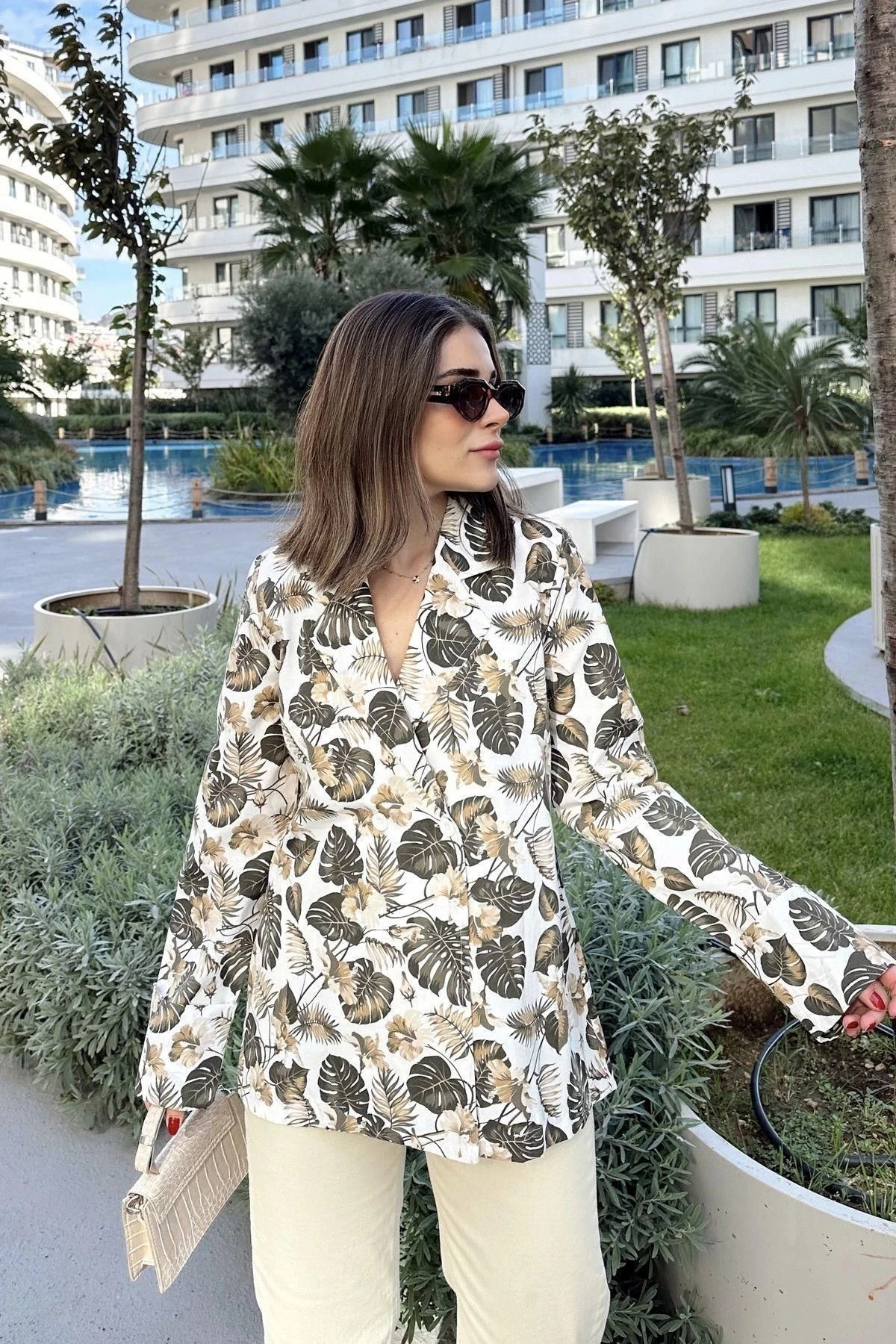 Kadın Haki Desenli, Uzun Kol, Düğme Kapamalı, Kruvaze Ceket