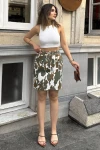 Kadın Haki & Ekru Bel Lastikli, Rahat Mini Gabardin Etek