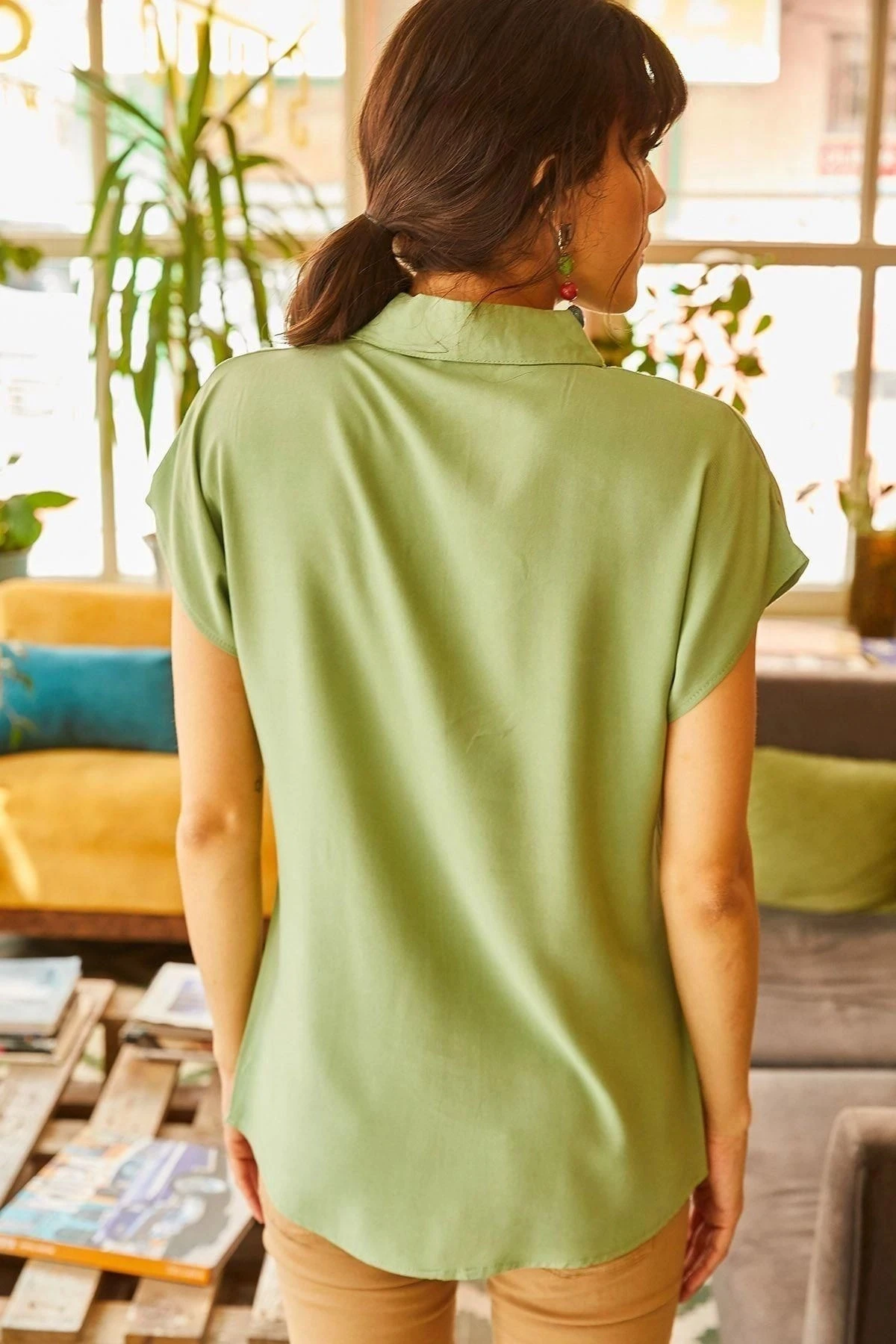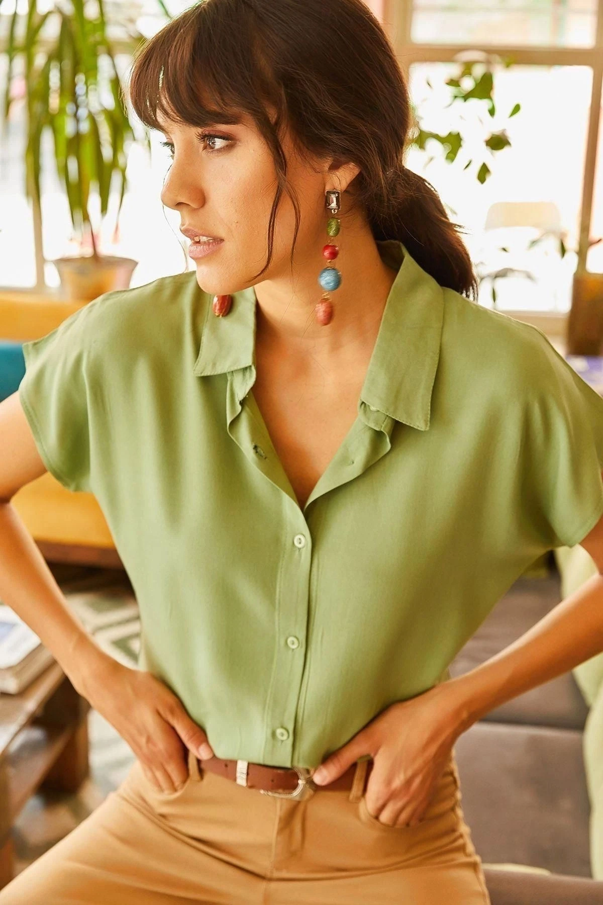 Bu Haki Renk Kısa Kol Basic Polo Yaka Regular Kesim Standart Boy Gömlek, şıklığı ve konforu bir araya getiren mükemmel bir seçenektir.; Ürünün kumaşı %100 viskozdan üretilmiştir, böylece yumuşaklık ve nefes alabilirlik sunar.; İster günlük bir görünüm için kullanın, ister daha resmi bir etkinlikte tercih edin, bu gömlek size her durumda şık bir tarz kazandıracaktır.; Haki rengi, modern ve sofistike bir görünüm sunarken, kısa kollu tasarımı yaz aylarında serin ve ferah hissetmenizi sağlar.; Polo yaka detayı, zarif bir görünüm katarken, düz kesimi her bedene uyum sağlar ve herhangi bir beden tipi için mükemmel bir uyum sağlar.; Bu gömleği dikkatlice tasarlandı ve kalıplandırıldı.; Standart boyu, şık bir görünüm sağlarken, rahat bir kullanım sunar.; Kesimi ise modern ve trendy bir tarzı yansıtırken, giyen kişiye rahat bir hareket özgürlüğü sağlar.; %100 viskoz kumaş içeriği, gömleğin yumuşaklığını ve dayanıklılığını artırırken, aynı zamanda nefes alabilirlik sağlar.; Bu özellik, sıcak havalarda terlemeyi en aza indirir ve size tüm gün boyunca konfor sunar.; Ayrıca, kumaşın hızlı kuruma özelliği sayesinde, pratik bir şekilde yıkayabilir ve hemen tekrar giyebilirsiniz.; Bu Haki Renk Kısa Kol Basic Polo Yaka Regular Kesim Standart Boy Gömlek, gardırobunuzun vazgeçilmez bir parçası olacak.; Modern tasarımı, yüksek kaliteli kumaşı ve rahat kesimiyle her durumda şık ve rahat bir görünüm elde etmenizi sağlayacaktır.; Bu gömleği herhangi bir şort, pantolon veya etekle kombinleyerek tarzınızı tamamlayabilirsiniz.