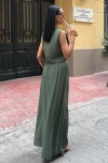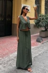Kadın Haki Kolsuz Düz Dokuma Rayon İkili Takım