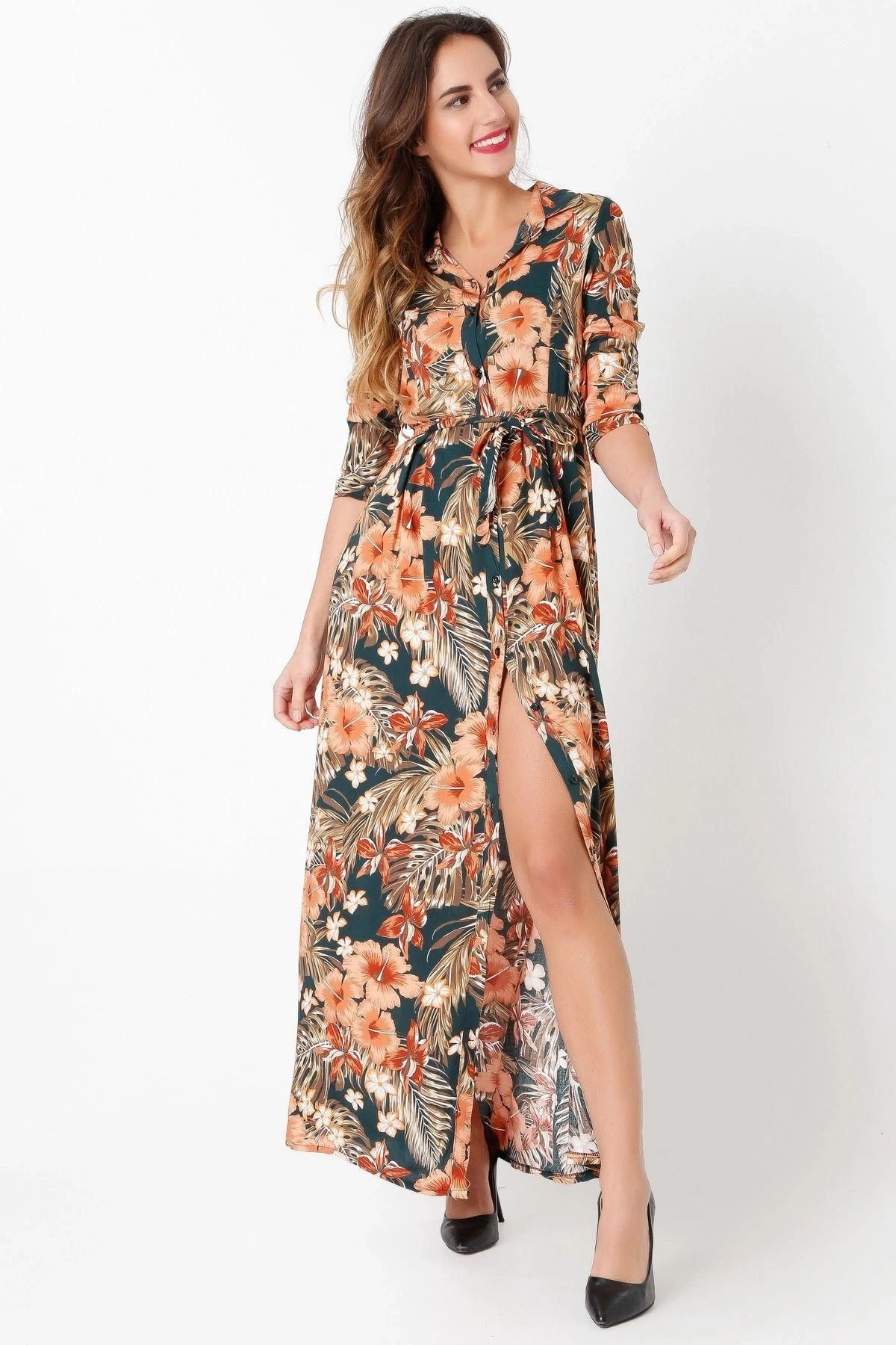 Bu turuncu renkli çiçekli uzun gömlek elbise, stil sahibi ve rahat bir görünüm sunar.; Uzun kollu tasarımıyla, her mevsimde giyebileceğiniz bir seçenek sunar.; Beli kemer detayıyla vücudu güzel bir şekilde vurgular ve regular kesimi sayesinde her bedene uyum sağlar.; Maksi boyuyla, uzun bir görünüm elde etmenizi sağlar ve aynı zamanda günlük giyim için ideal bir seçenektir.; Rahat ve hafif bir model olması, gün boyu rahatlıkla hareket etmenizi sağlar.; Bu elbise, tesettür modasına uygun olarak tasarlanmıştır.; Kumaşı %100 polyesterden yapılmıştır, bu da dayanıklı ve kolay bakım sağlar.; Polyester kumaş, kırışıklıklara dirençli olduğu için her zaman düzgün ve şık görünmenizi sağlar.; Turuncu renkli çiçek desenleri, canlı ve enerjik bir hava katarken, elbiseye şık bir görünüm verir.; Bu desen, günlük kullanım için mükemmel bir seçimdir ve herhangi bir ortamda dikkat çekici olmanızı sağlar.; Bu gömlek elbise, hem şıklığı hem de konforu bir araya getirerek, her kadının gardırobunda olması gereken bir parça haline gelir.; Günün her saatinde ve herhangi bir etkinlikte rahatlıkla kullanabileceğiniz bu elbise, tarzınızı yansıtmanız için mükemmel bir seçenektir.