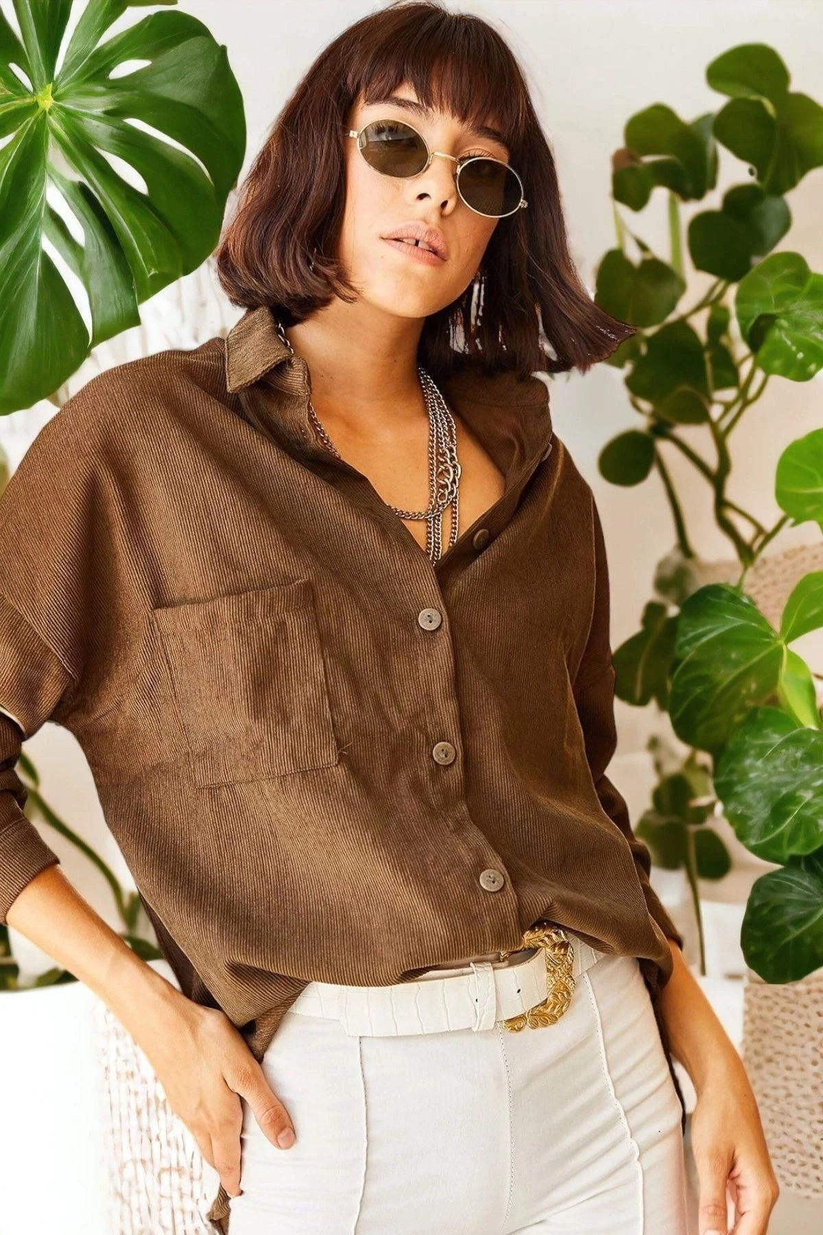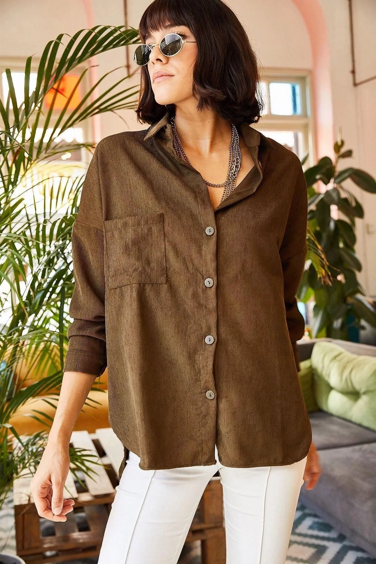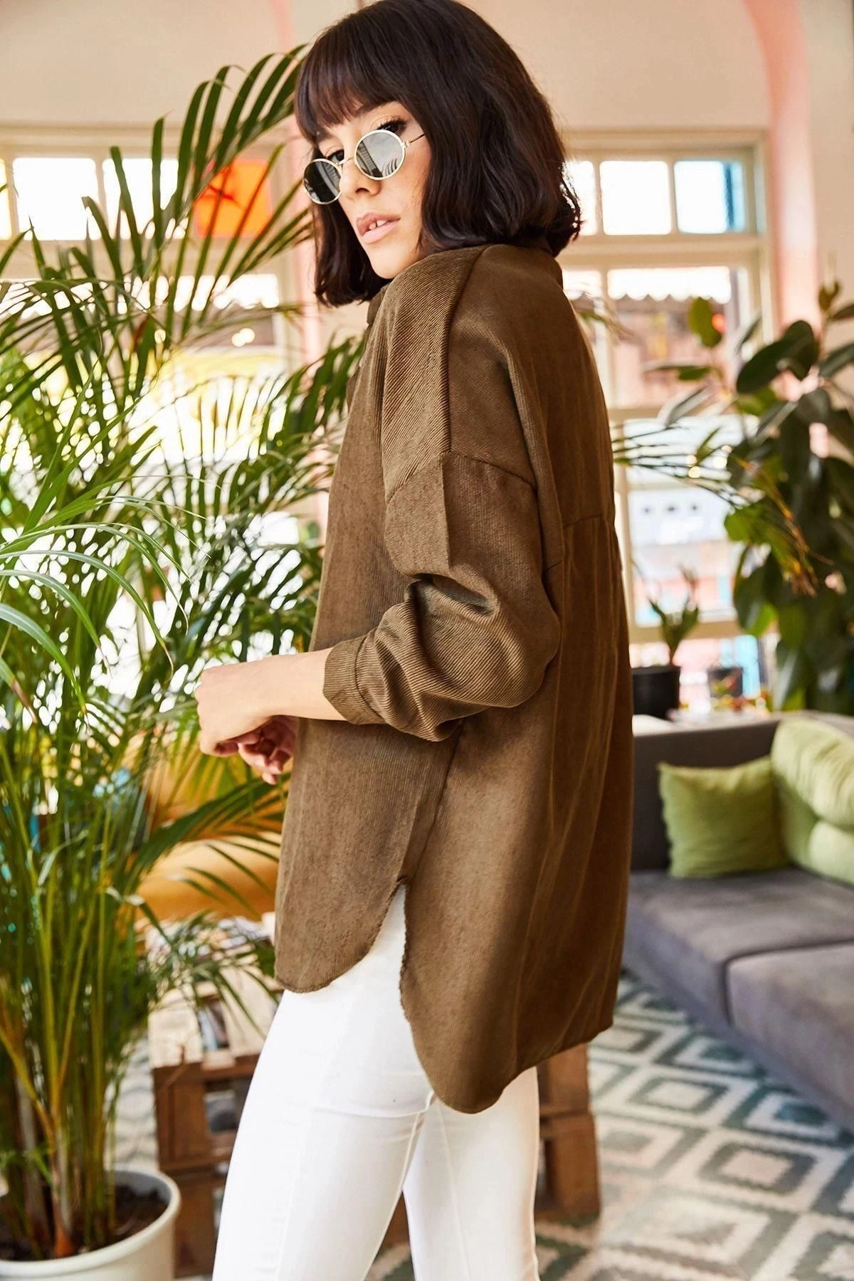 Bu Haki Renk Uzun Kol Cep Detaylı Basic Yanları Yırtmaçlı Polo Yaka Gömlek, şıklığı ve rahatlığı bir araya getiren mükemmel bir seçenektir.; Kumaşı, %95 viskoz ve %5 elastan içeriğiyle, yumuşak ve esnek bir dokunuş sunar.; Bu sayede, gün boyu rahat bir şekilde hareket etmenizi sağlar.; Renk olarak haki tercih edilen bir ton olup, herhangi bir kombinle mükemmel uyum sağlar.; Klasik ve zamansızdır, bu nedenle gardırobunuzda her mevsim kullanabileceğiniz bir parça olacaktır.; Aynı zamanda, bu gömleğin tasarımında yer alan cep detayları ve yırtmaçlar, tarzınıza şık bir dokunuş katarken, işlevselliği de artırır.; Polo yaka, modern ve sofistike bir görünüm sunarken, regular kesimi ve standart boyu sayesinde her bedende mükemmel bir uyum sağlar.; Bu gömlek, herhangi bir günlük veya özel durum için mükemmel bir seçenektir.; Şık bir pantolon veya kot ile kombinleyerek gündüz veya gece şıklığı yakalayabilirsiniz.; Bu haki renkli gömlek, yüksek kaliteli kumaşı, şık tasarımı ve rahat kesimiyle hem stil sahibi olmanızı hem de konforunuzu garanti eder.; İster özel bir etkinlikte, ister günlük hayatta kullanın, her zaman tarzınızı ve kişisel zevkinizi yansıtmanızı sağlar.; Bu sezon gardırobunuzun vazgeçilmez parçası olacak!
