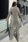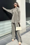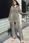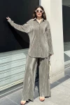 Kadın Haki Uzun Tunik Gömlek & Beli Lastikli, Bol Paça Pantolon - Salaş Bürümcük Takım