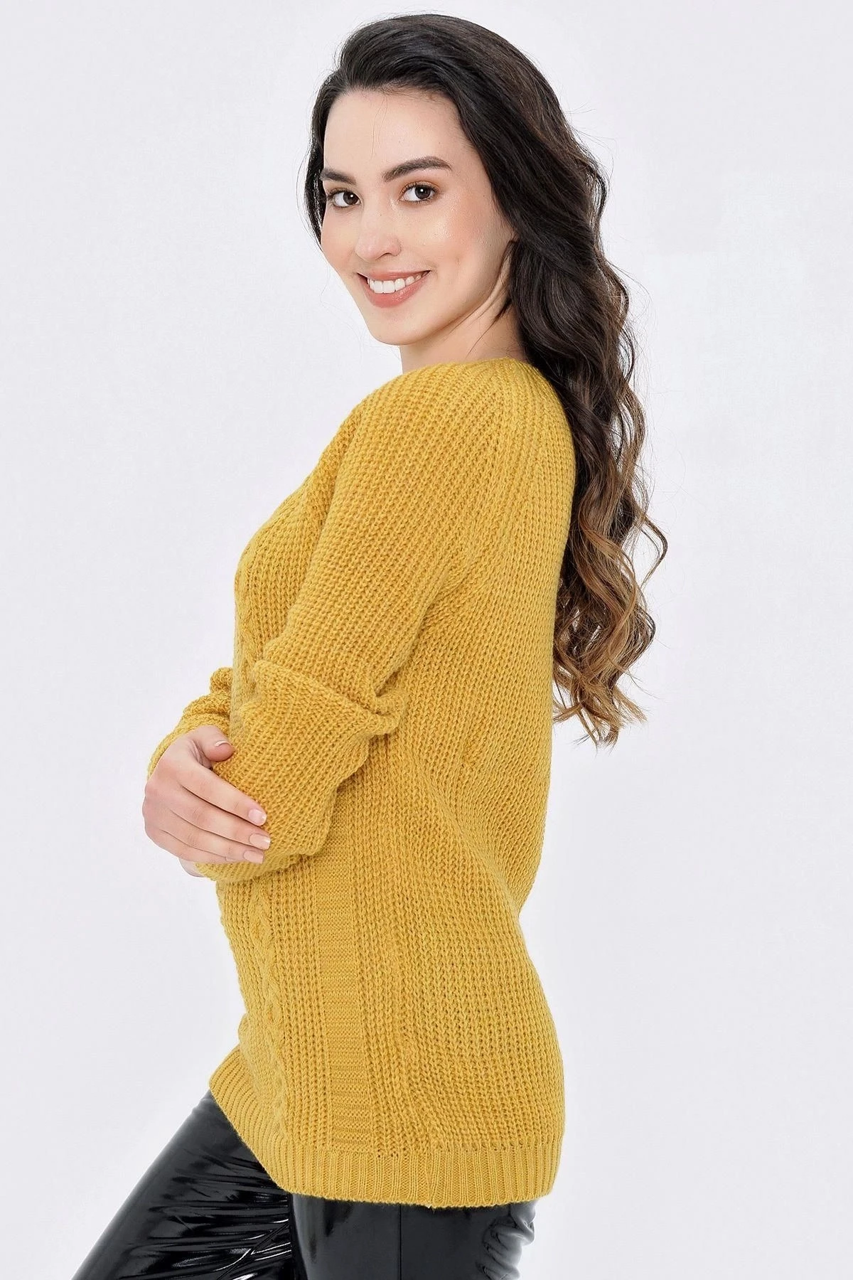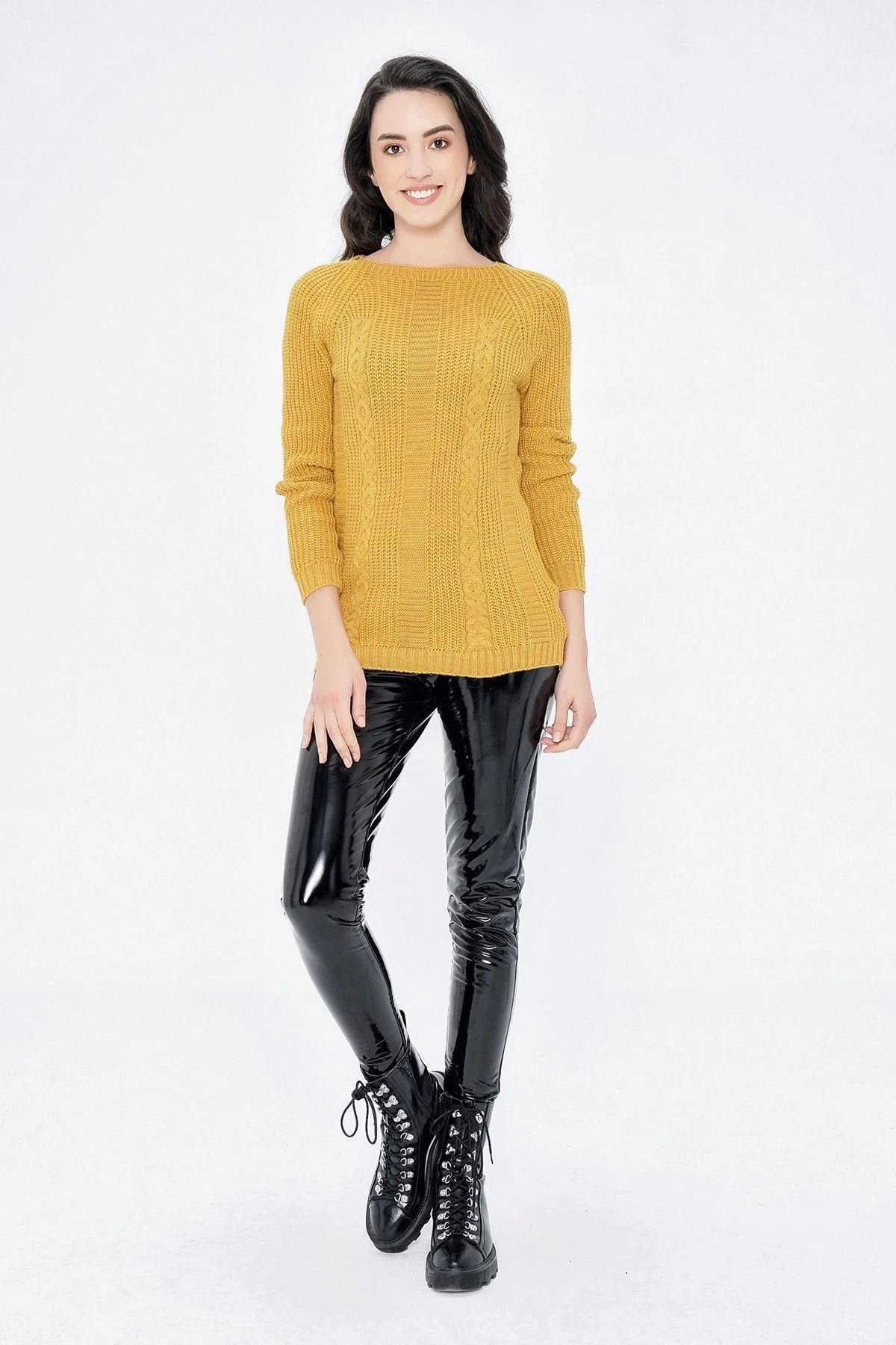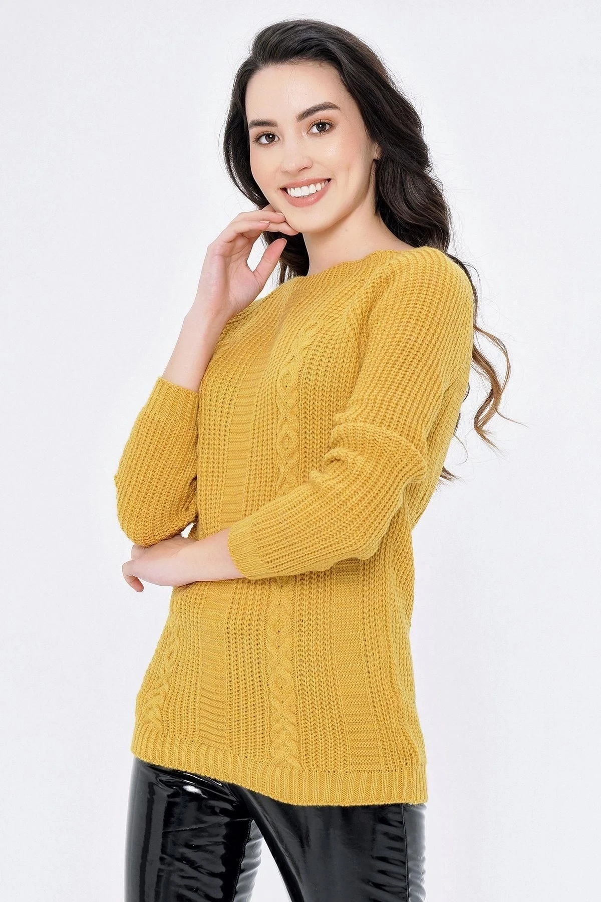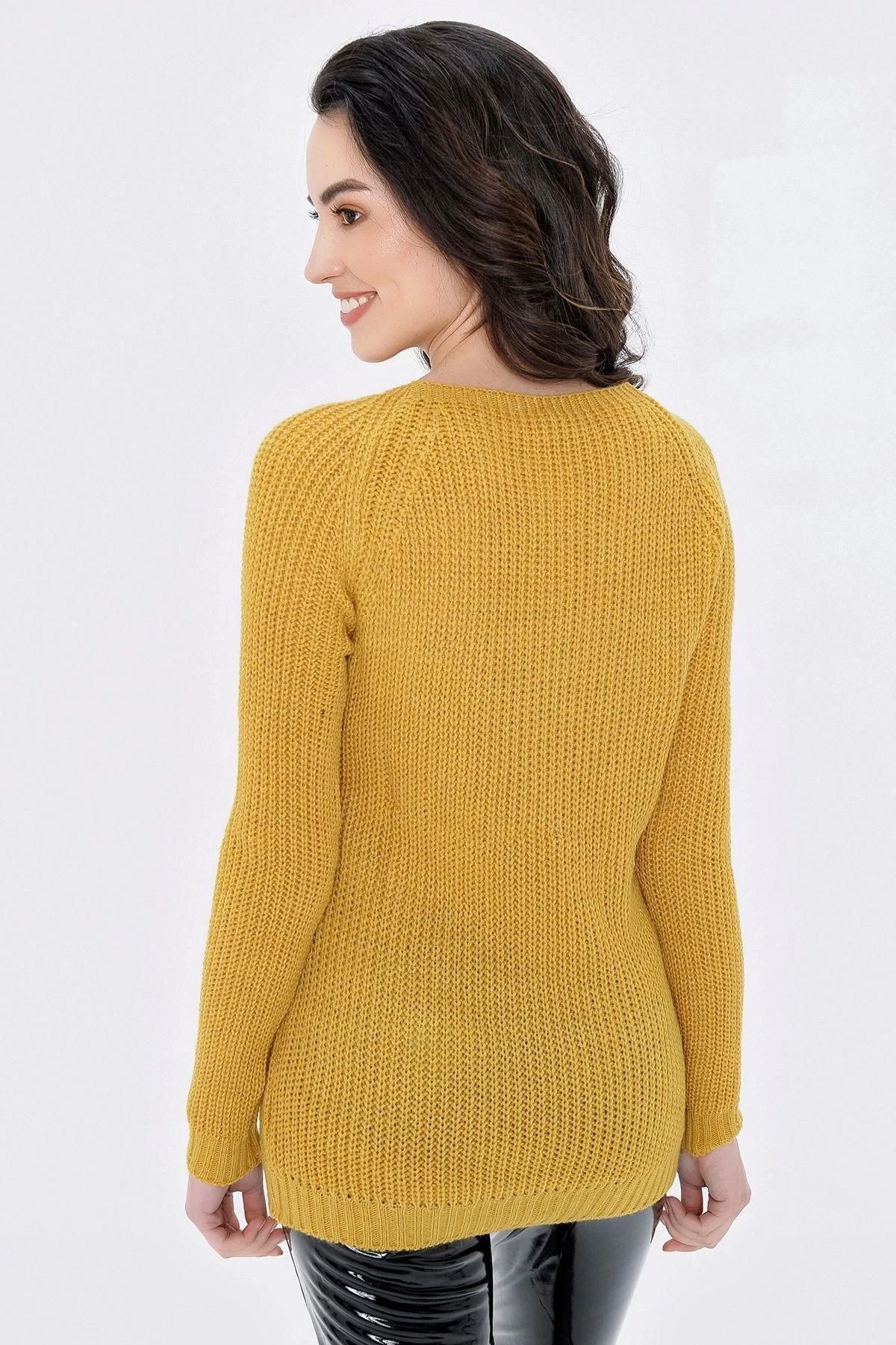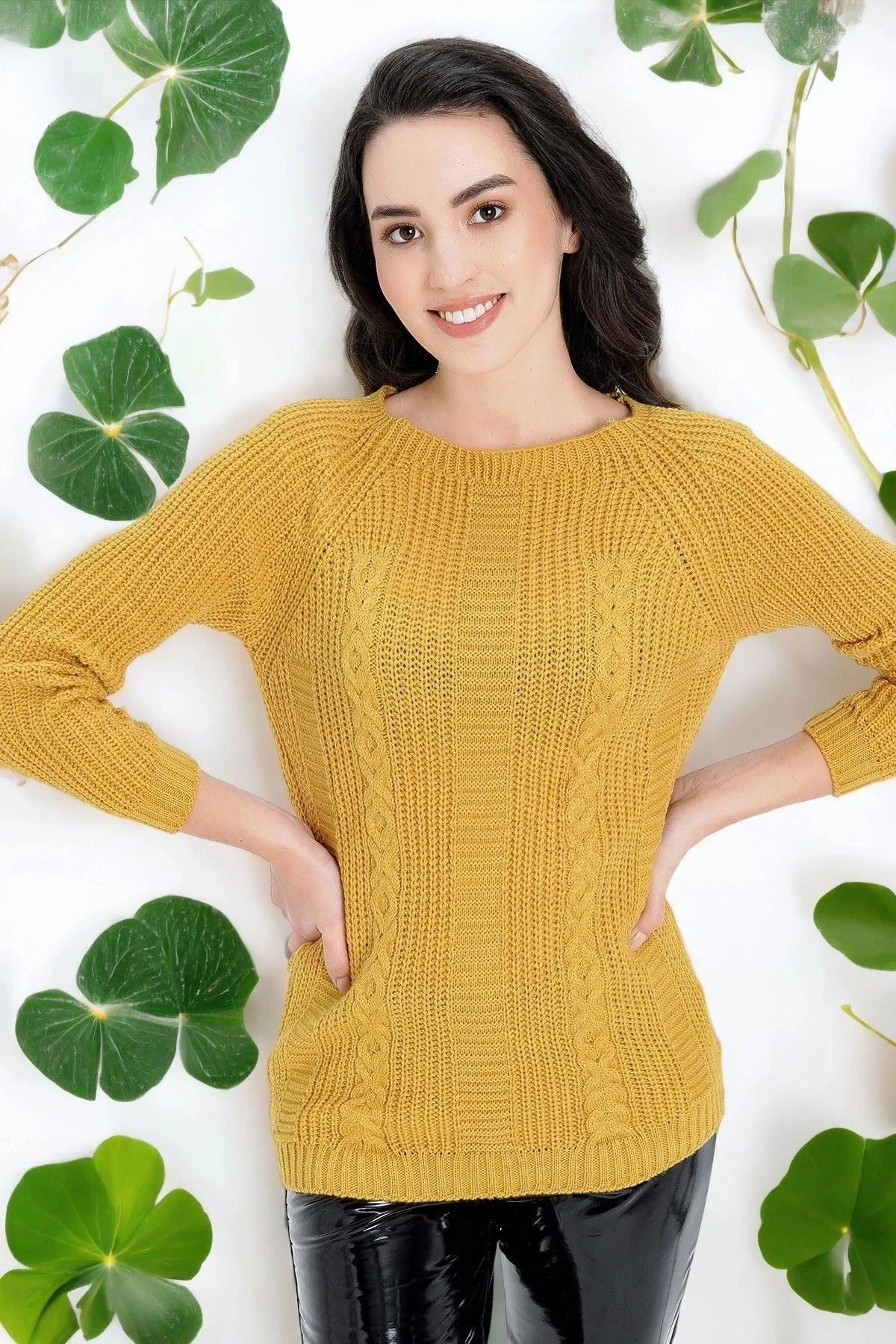 Kadın Hardal Yuvarlak Yaka Basic Regular Kesim Uzun Kol Standart Boy Triko