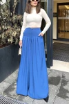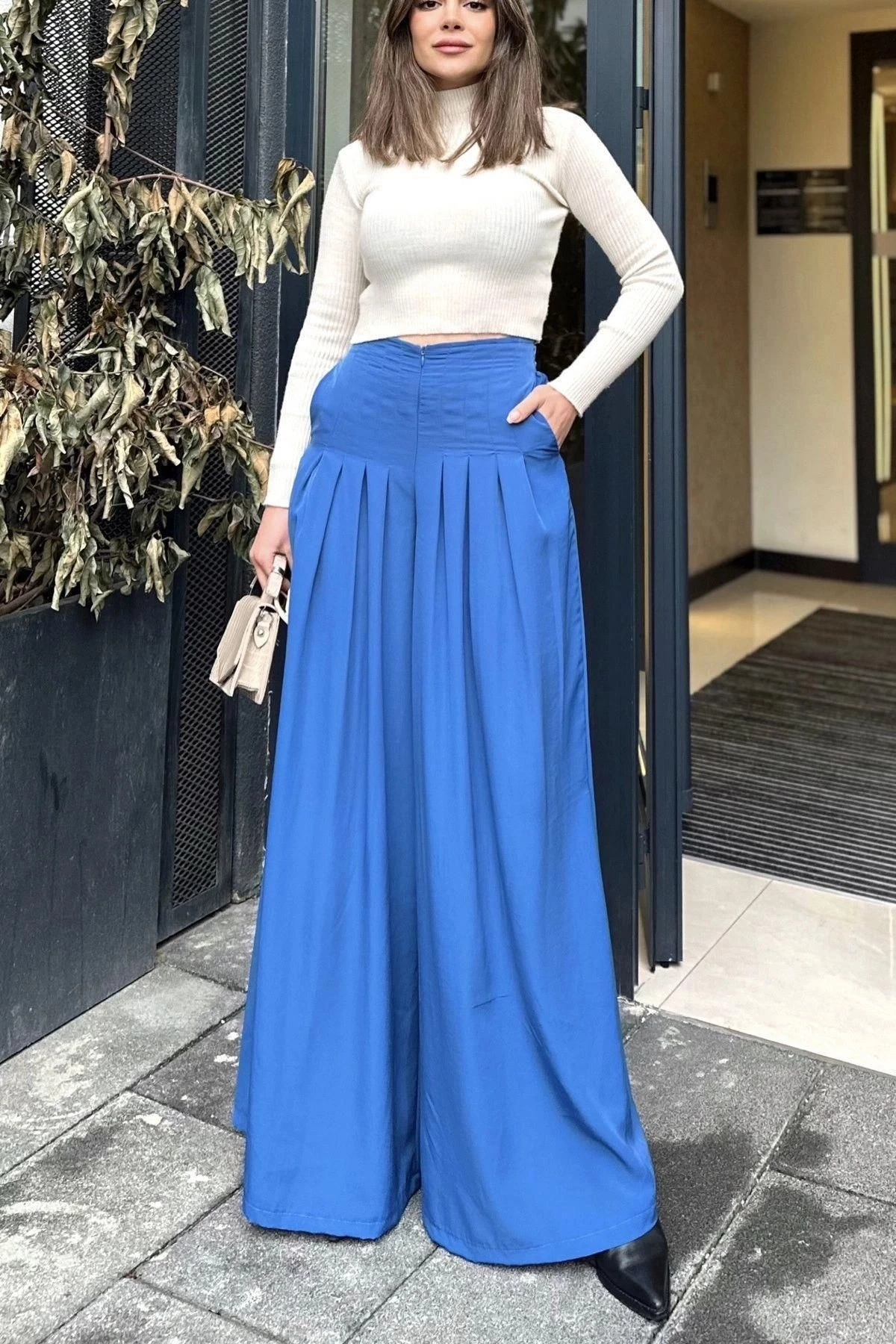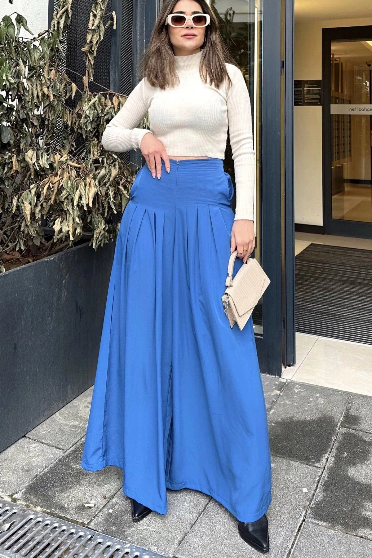 Kadın indigo Fermuar Kapamalı, Cepli, Pileli Bol Paça Etek Pantolon
