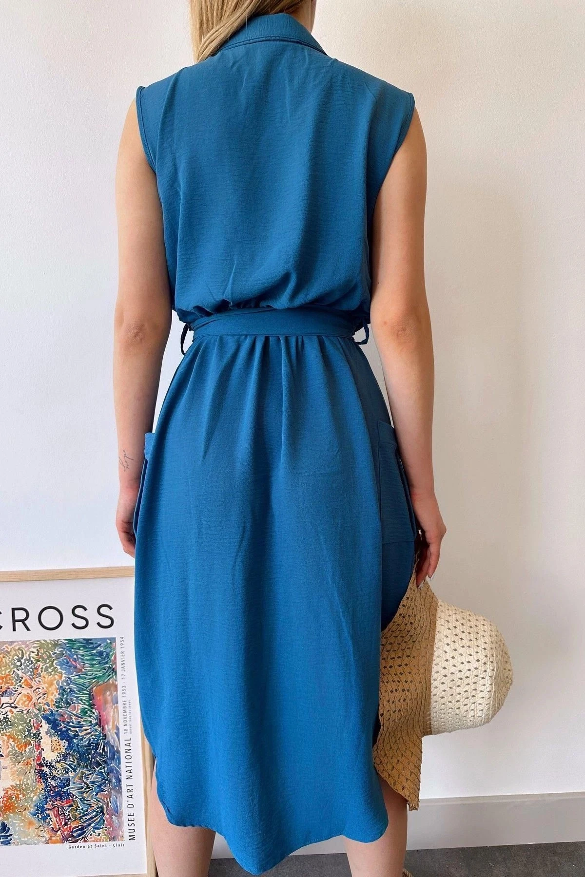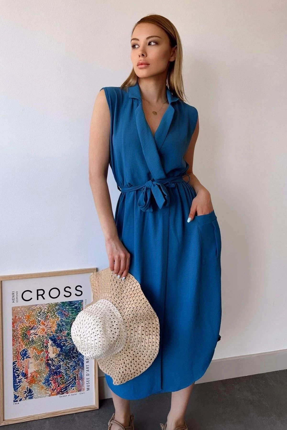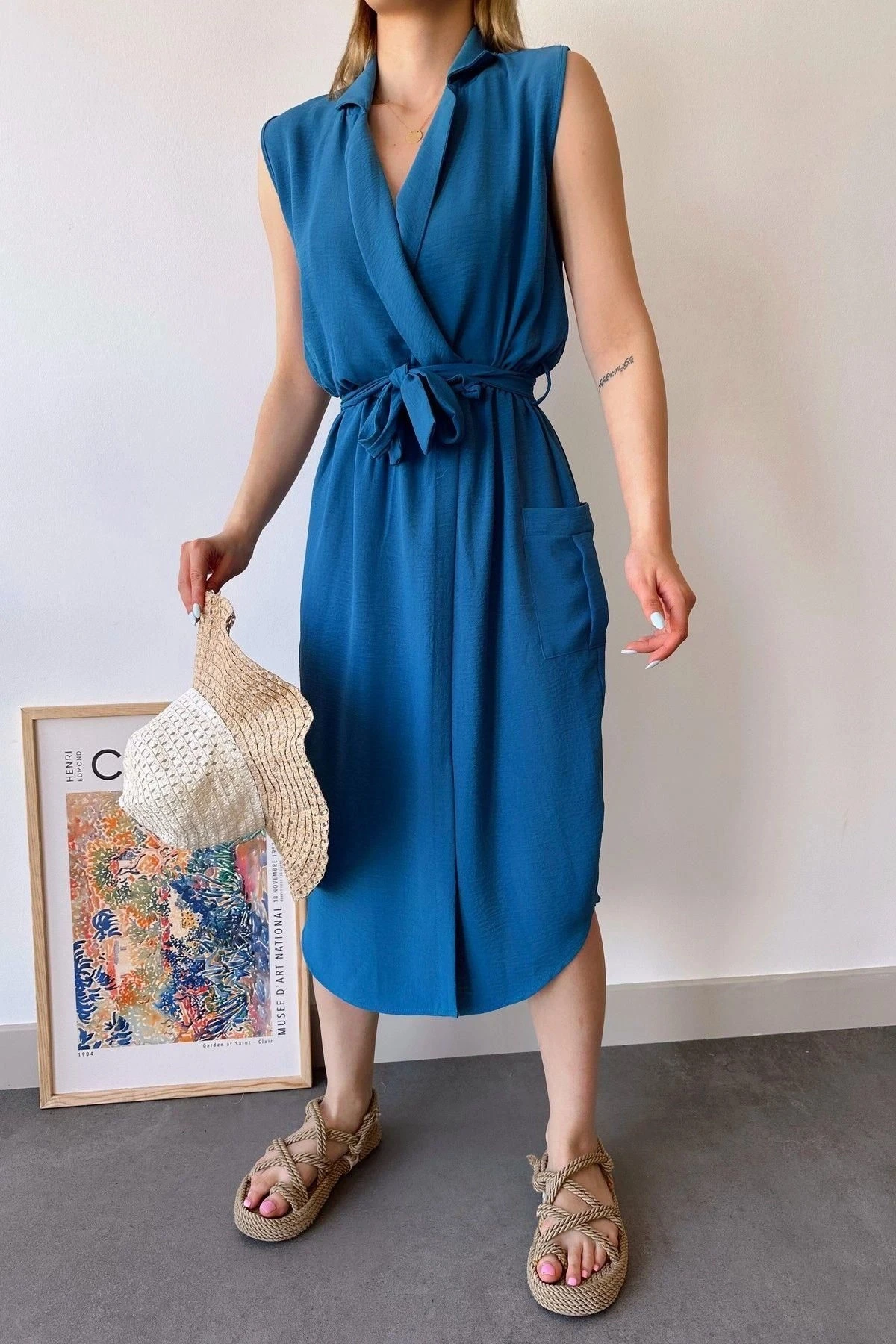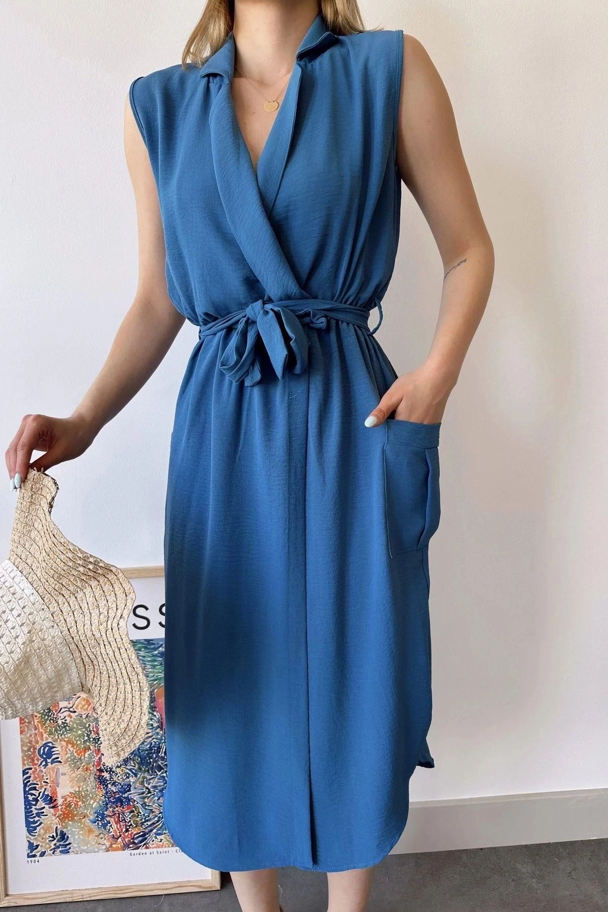 Bu kadın indigo kalın askılı midi elbise, rahatlık ve şıklığı bir araya getiriyor.; Elbisenin kumaşı %60 polyester ve %40 pamuk karışımından oluşur.; Bu karışım, elbiseye dayanıklılık sağlarken aynı zamanda yumuşaklık ve konfor sunar.; Kruvaze yaka tasarımı, elbiseye şık bir hava katar ve dekolte bölgesini zarifçe vurgular.; Düz deseni, sade ve minimalist bir tarz sunar.; İndigo rengi, modern ve şık bir seçenektir.; Relaxed kalıp ve kesimi, elbisenin rahat bir oturuş sağlamasını ve giyen kişiye geniş bir hareket özgürlüğü sunmasını sağlar.; Aerobin kumaşı, hafif ve nefes alabilir bir yapıya sahiptir, böylece elbiseyi uzun süre boyunca rahatça giyebilirsiniz.; Yırtmaç detayı, elbisenin etek bölgesinde bulunur ve hareket kabiliyetinizi artırırken aynı zamanda görsel bir çekicilik sunar.; Kemer detayı, elbisenin bel bölgesinde bulunur ve beli vurgular.; Bu detay, elbisenin şeklini ayarlamak ve size özgü bir uyum sağlamak için kullanılabilir.; Bu indigo kalın askılı kruvaze yaka midi elbise, rahatlık ve şıklığı bir arada arayan kadınlar için mükemmel bir seçenektir.; %60 polyester ve %40 pamuk içeriğiyle, elbise konforlu bir giyim deneyimi sunar.; Düz deseni ve kruvaze yaka tasarımıyla sade ve minimalist bir tarzı temsil eder.; Relaxed kalıp ve kesimi, elbisenin rahat bir oturuş sağlamasını ve geniş hareket özgürlüğü sunmasını sağlar.; Aerobin kumaşıyla hafiflik ve nefes alabilirlik sunar.; Yırtmaç detayı, elbiseye hareket özgürlüğü ve görsel bir çekicilik katar.; Kemer detayı ise beli vurgular ve elbiseye şekil verir.; Bu elbise, özel etkinliklerden günlük kullanıma kadar birçok farklı durumda tarzınızı tamamlamak için idealdir.; Gardırobunuzun vazgeçilmez bir parçası olacak.