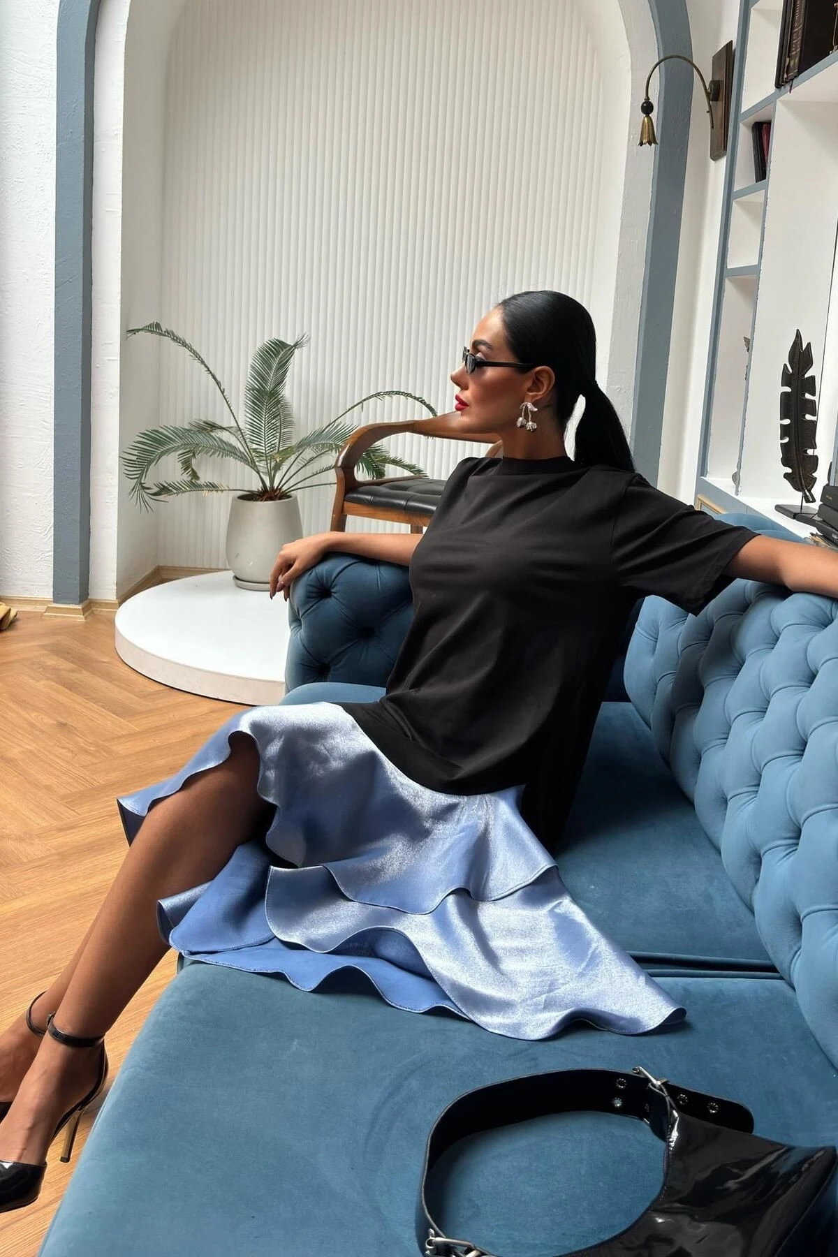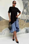 Kadın İndigo Pamuklu Midi Dokuma Elbise