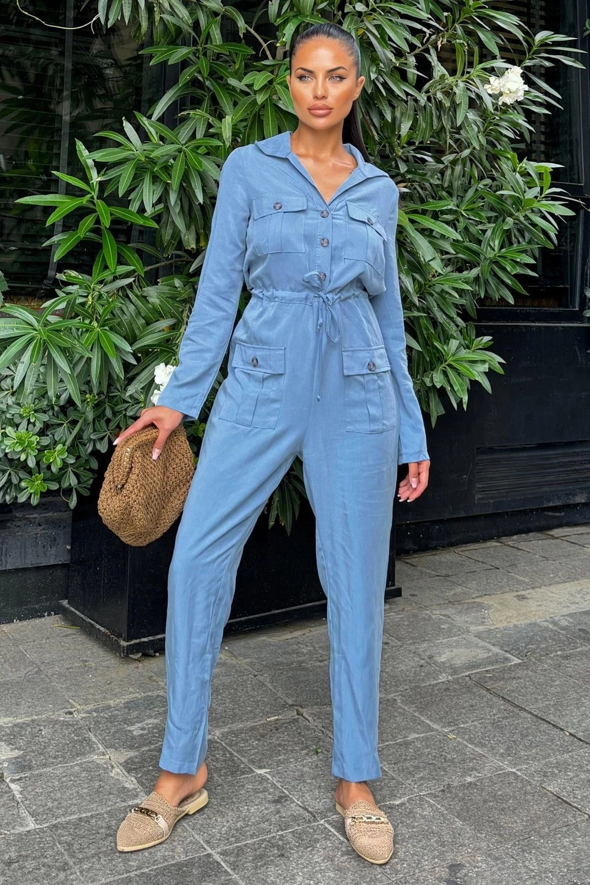 Airobin Safari Tulum, modern ve şık bir görünüm sunan Indigo renginde uzun kollu bir gömlektir.; Bu muhteşem tasarım, size zarif bir stili bir arada sunar.; Tulum, rahatlığı ve şıklığı bir araya getiren benzersiz bir parçadır.; Kumaş içeriği düşünüldüğünde, bu tulum %50 pamuk ve %50 polyesterden üretilmiştir.; Bu kombinasyon, yumuşak ve rahat bir his sunarken dayanıklılığını korur.; Pamuk, nefes alabilirlik özelliği sayesinde tulumunuzun gün boyu ferah kalmasını sağlar.; Polyester ise kırışıklıklara karşı dirençli olup tulumunuzun uzun süre dayanmasına yardımcı olur.; Tulumun tasarımında, şık bir yaka detayı ve işlevsel cepler bulunmaktadır.; Yaka, tulumunuzu tamamlamak için zarif bir detay sunarken, cepler işlevselliği artırır ve küçük eşyalarınızı taşımanızı sağlar.; Ayrıca, tulumun bel kısmında bulunan kemer, vücut hatlarınızı vurgulayarak size daha form bir görünüm kazandırır.; Indigo renk seçimi, zamansız ve şık bir tarz yaratır.; Bu koyu mavi ton, herhangi bir mevsimde ve herhangi bir durumda giyilebilir.; Airobin Safari Tulum ile tarzınızı ifade ederken, şıklığından ödün vermezsiniz.; Bu muhteşem tulum, kusursuz bir uyum ve tarz sunarak gardırobunuzun vazgeçilmez bir parçası olacaktır.; Hem günlük kullanıma hem de özel etkinliklere uygun olup sizin için mükemmel bir seçenek olacaktır.; Kendinizi özel hissetmenizi sağlayacak Airobin Safari Tulum'u bugün deneyimleyin!