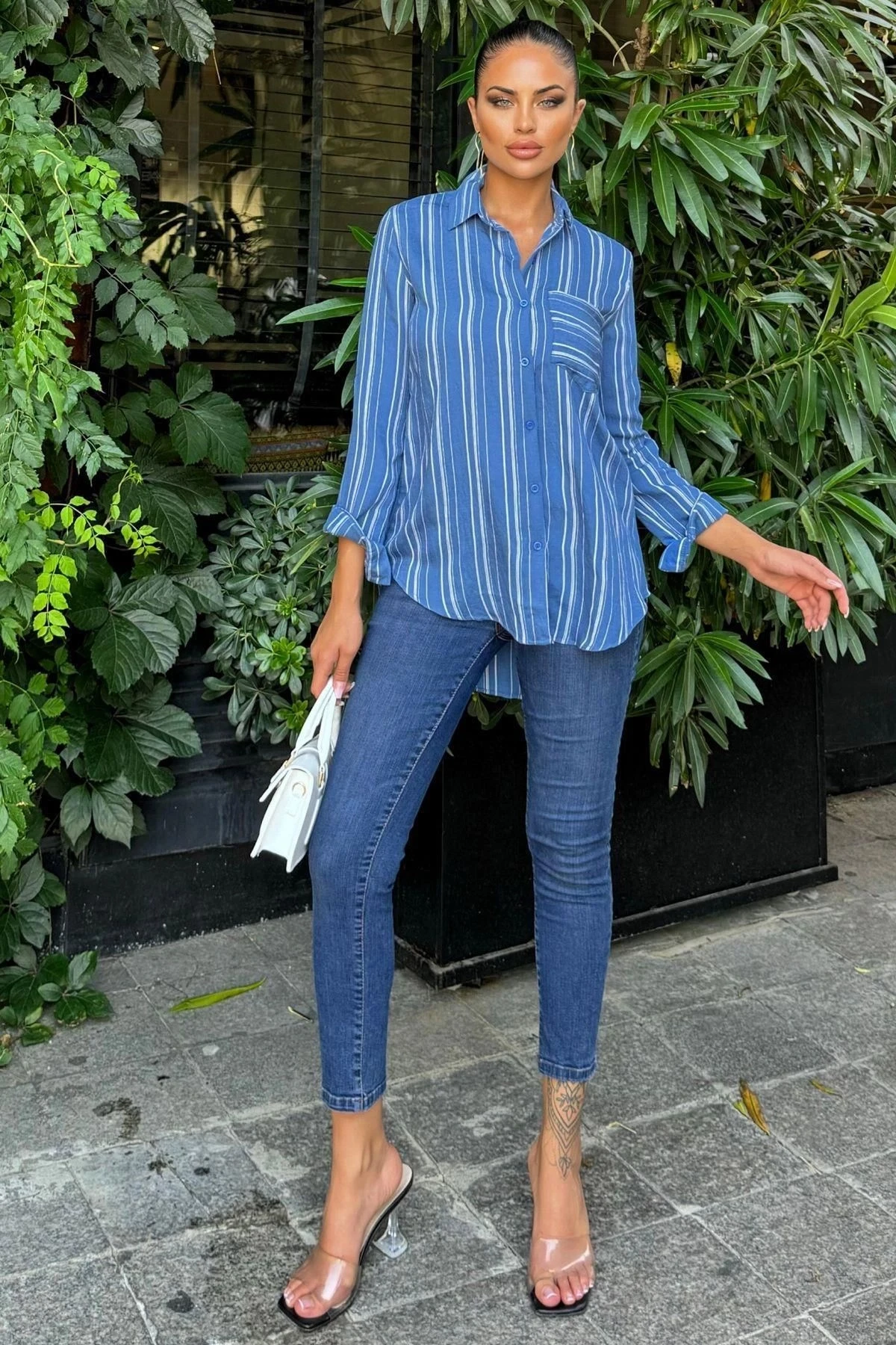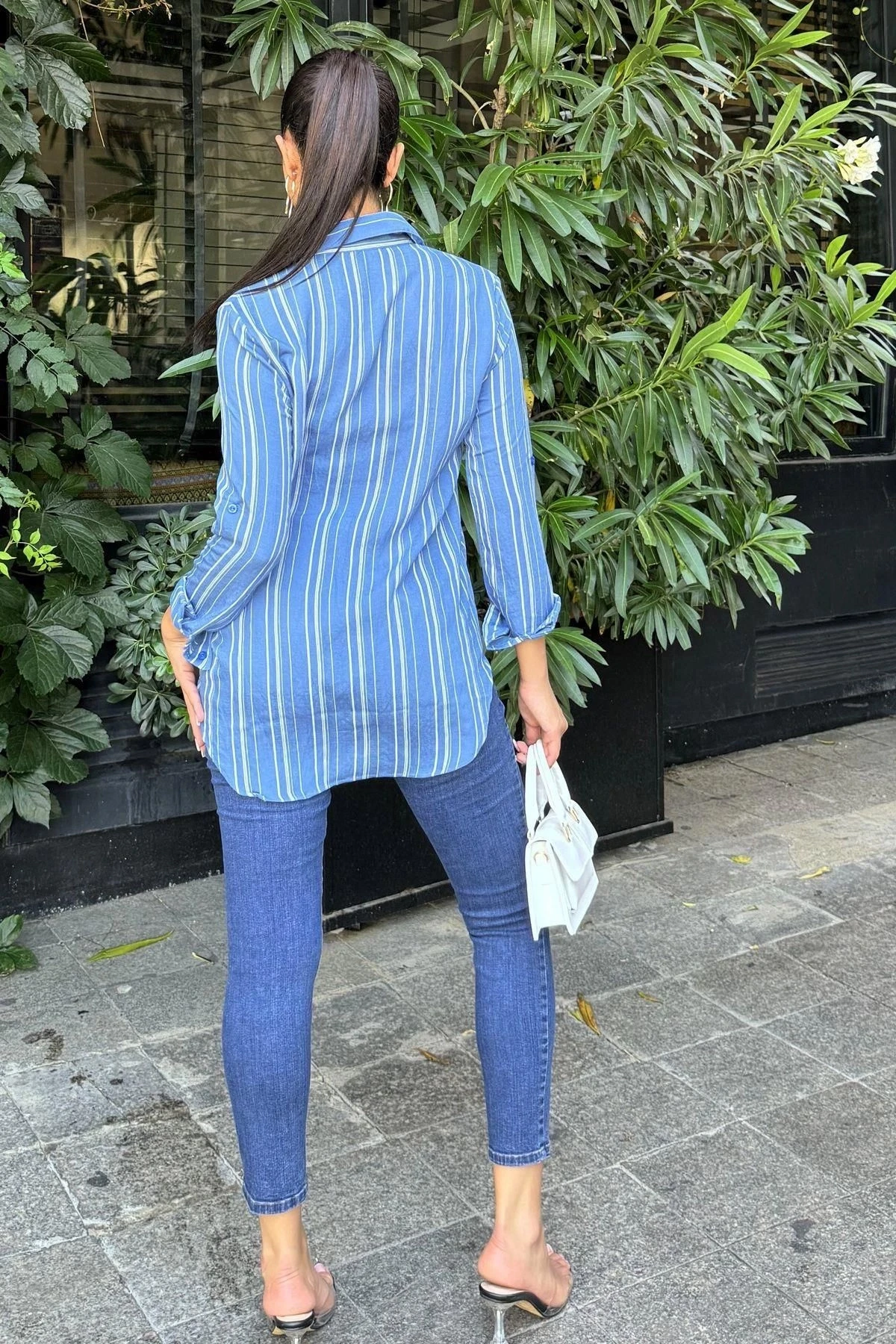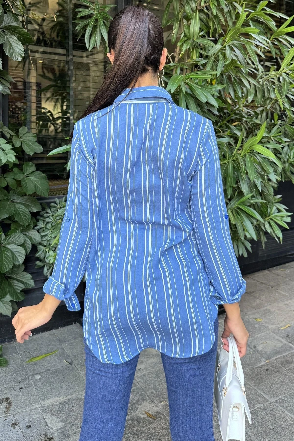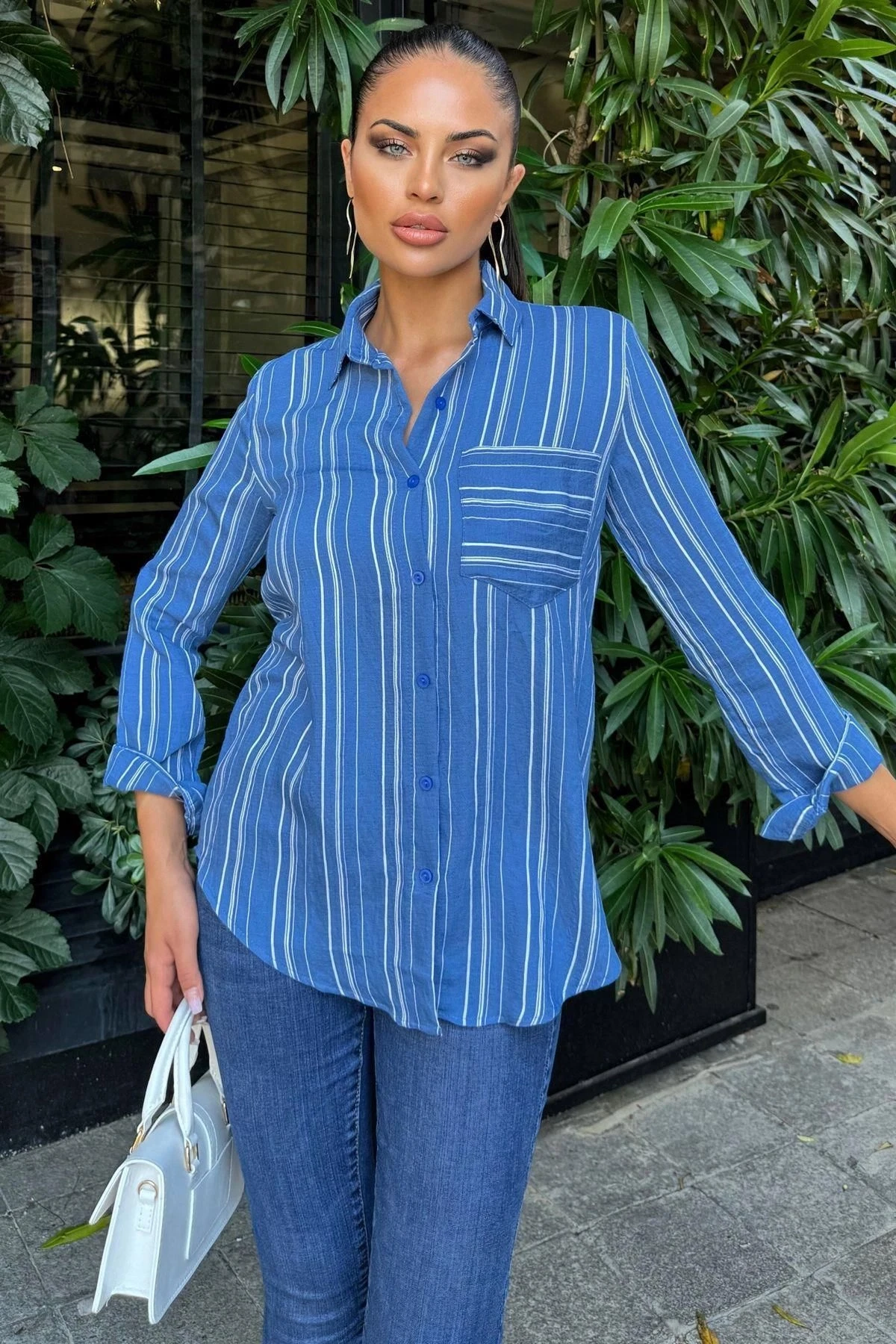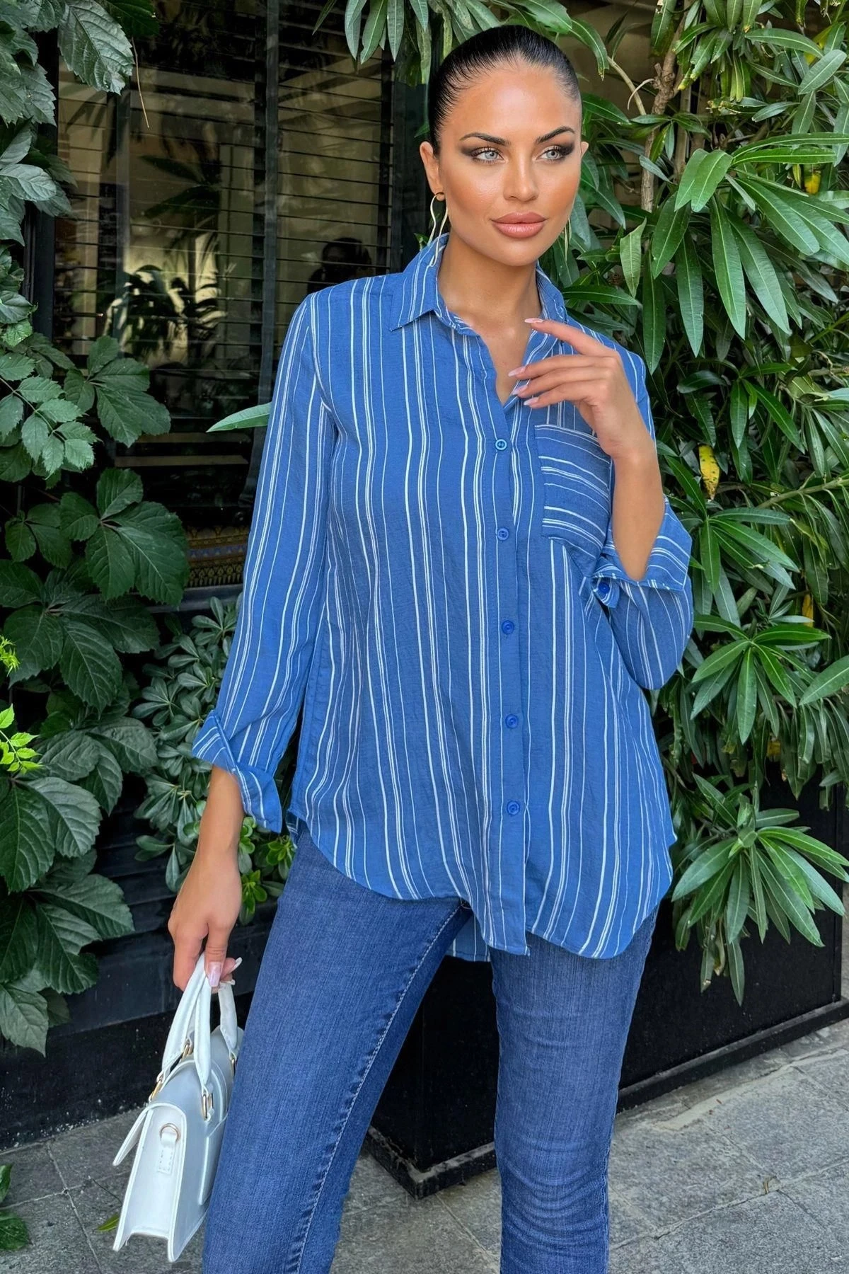 Bu muhteşem İndigo Renk Uzun Kol Özel Kumaş Tek Cep Gömlek, sizin tarzınızı yansıtmanız için mükemmel bir seçenektir.; Zarif dik çizgili tasarımı ve arkası uzun kesimi ile gömlek, sıradan bir temel kesim gömlekten öteye geçer.; Kumaş içeriği %60 Polyester ve %40 Cotton'dan oluşur, bu da size dayanıklılık ve rahatlık sunar.; Polyester, gömleği uzun süre boyunca mükemmel bir formda tutar ve kırışıklıkları azaltırken, pamuk cildinizin nefes almasını sağlar.; Bu kombinasyon, gün boyu konforlu ve stil sahibi olmanızı sağlar.; İndigo renk, zarafet ve sofistikasyonun simgesidir.; Bu derin ve zengin renk, herhangi bir kıyafete şıklık katar.; Gömleğin dik çizgili tasarımı, modern bir görünüm sunarken, tek cep detayı da işlevsellik katıyor.; Arkada uzun kesimi, sıradışı ve özgün bir detaydır.; Bu kesim, hem önden hem de arkadan görünümde fark yaratır ve size hareket özgürlüğü sağlar.; Her adımda tarzınızı ifade edebilirsiniz.; Bu İndigo Renk Uzun Kol Özel Kumaş Tek Cep Gömlek, herhangi bir mekanda kendinizi özel hissetmenizi sağlar.; Hem şık hem de rahat olmanızı sağlayarak, sizin için ideal bir seçimdir.; Stil sahibi olmak isteyenler için bu gömlek, gardırobunuzun vazgeçilmez parçalarından biri olacak.
