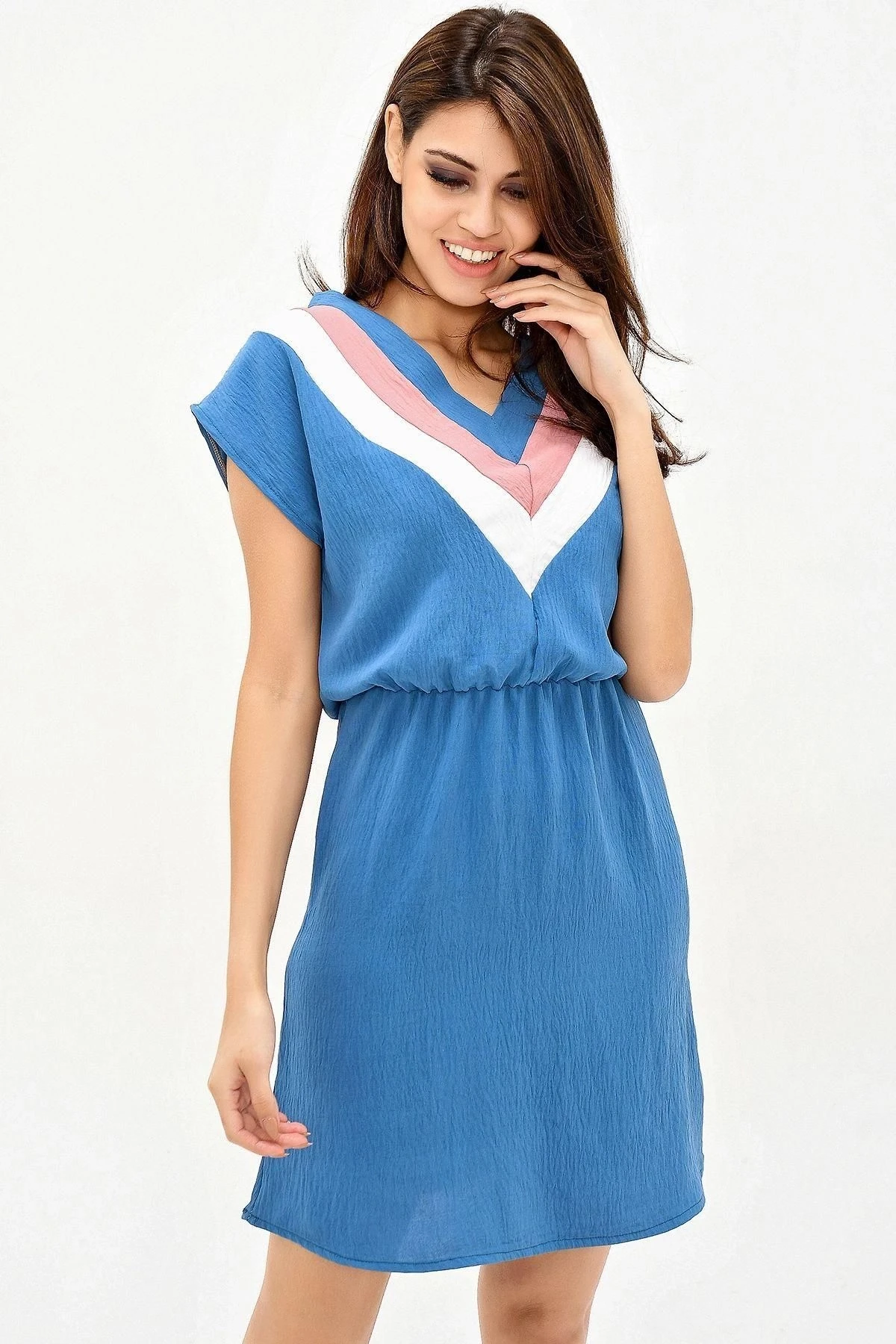 İndigo Renk V Yaka Bloklu Kısa Kollu Dizüstü Aerobin Elbise, şık ve pratik bir tercih sunan bir tasarıma sahiptir.; Kumaş içeriği %60 Polyester ve %40 Cotton'dan oluşan bir karışımdır, bu da hem dayanıklılığı artırırken hem de konforlu bir giyim deneyimi sunar.; Bu elbise, etkileyici indigo renge sahiptir.; Bu renk, sofistike bir görünüm sağlayarak günlük giyimden özel bir etkinliğe kadar birçok farklı ortamda şık görünmenizi sağlar.; V yaka detayı, boyun bölgesine zarif bir vurgu yaparken, bloklu tasarımıyla da dikkat çekici bir görüntü sunar.; Kısa kollu kesimi, rahat bir hareket özgürlüğü sunarken aynı zamanda yaz aylarında serin kalmanızı sağlar.; Beli lastik detaylı ve regular kesim, elbisenin vücudu saran ancak aynı zamanda rahat bir şekilde oturmasını sağlar.; Midi boyu, diz üstü seviyesinde olup ofis ortamında profesyonel bir görünüm sağlarken, günlük hayatta da kullanım kolaylığı sağlar.; Bu elbise, işlevselliği ve şıklığı bir araya getirerek hem ofis ortamında hem de günlük hayatta stil sahibi olmanızı sağlar.; Dayanıklı kumaş yapısı ve özenli tasarımıyla uzun süre kullanabileceğiniz bir seçenektir.; Kısacası, İndigo Renk V Yaka Bloklu Kısa Kollu Dizüstü Aerobin Elbise, tarzınıza özgü bir dokunuş katarken konforu da ön planda tutan bir tercihtir.