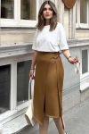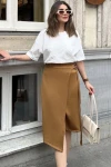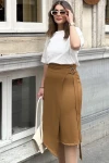 Kadın Kahve Asimetrik Kesim, Toka Ve Yandan Bağlama Detaylı, Scuba Etek