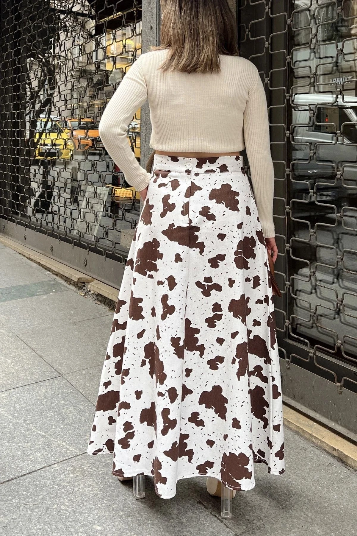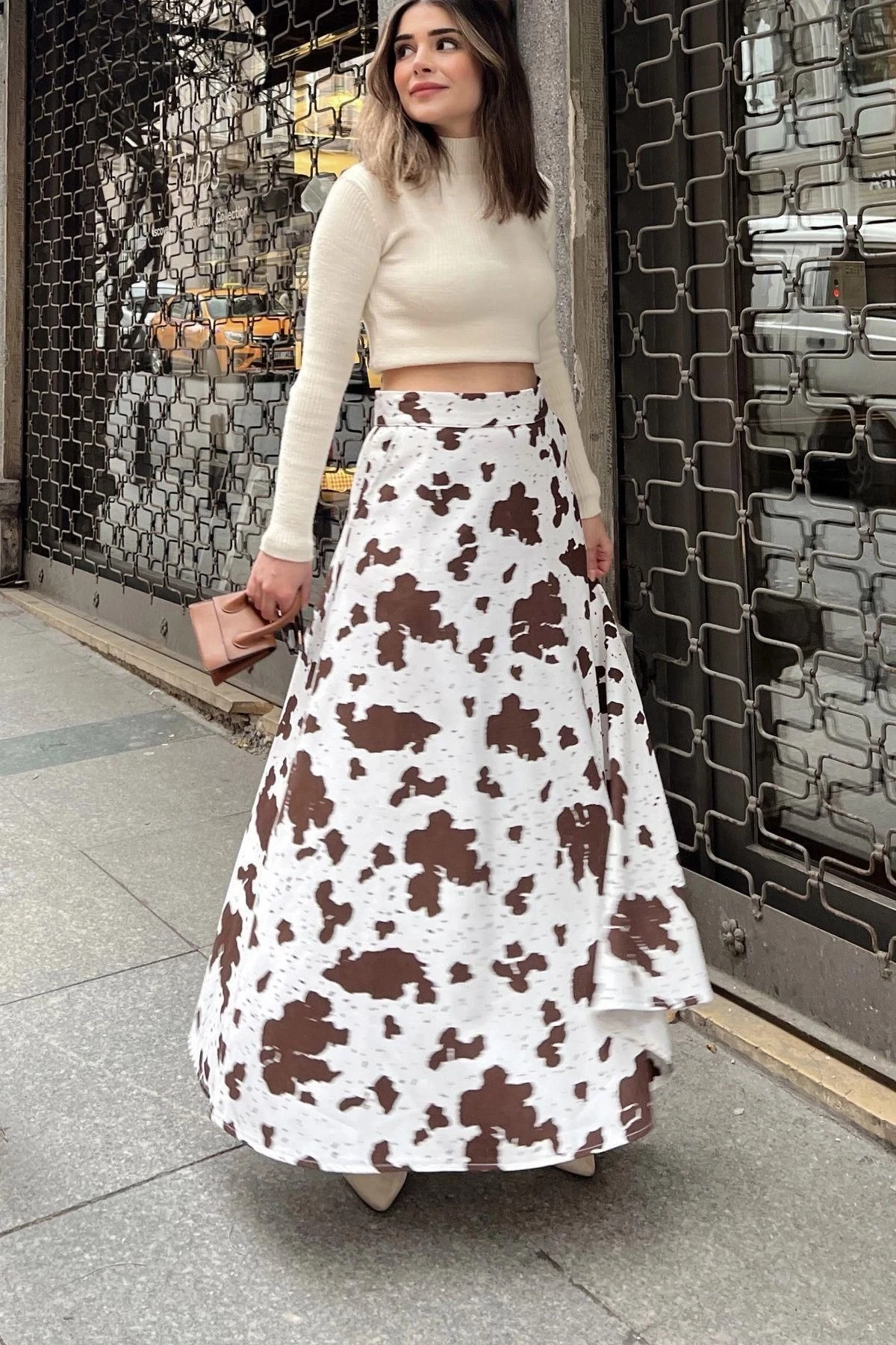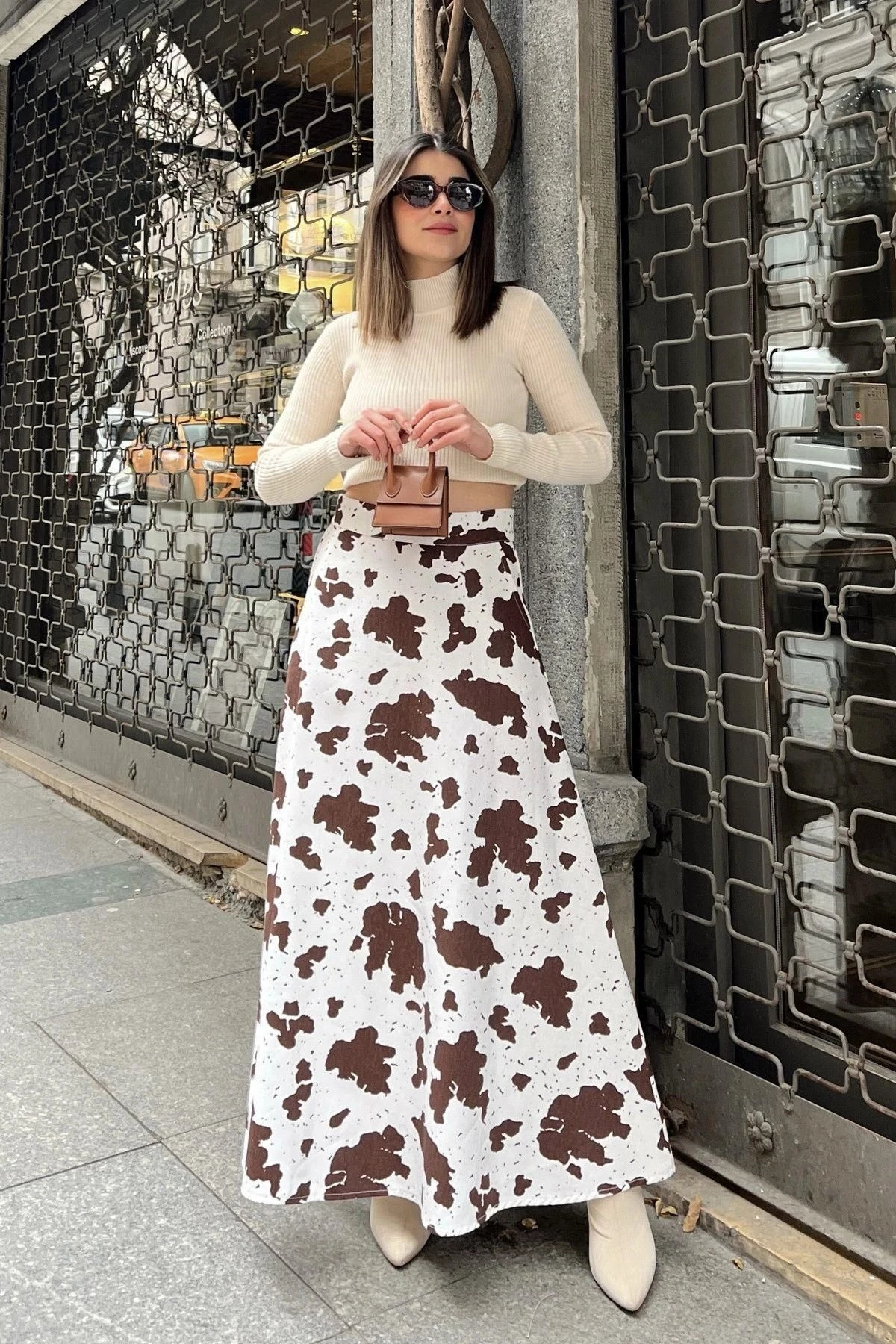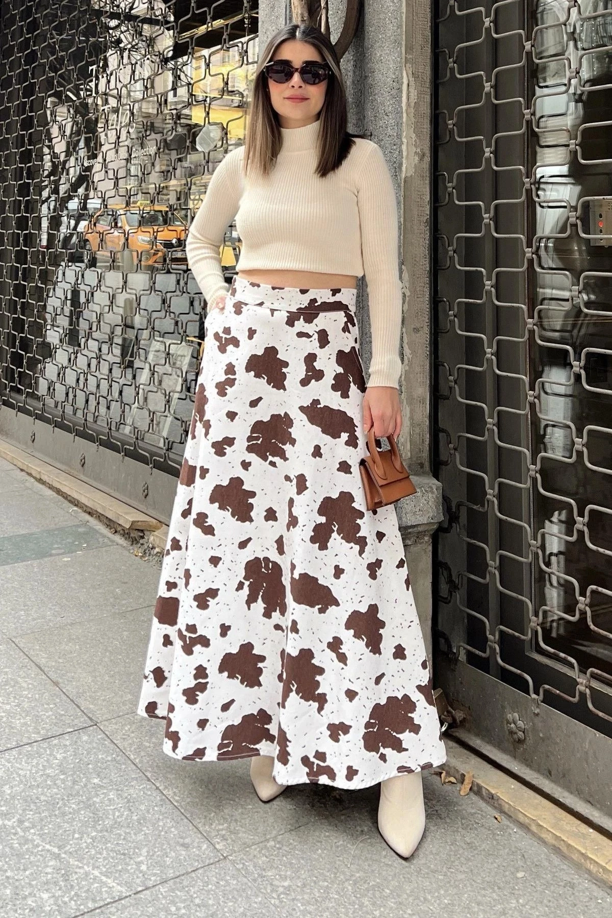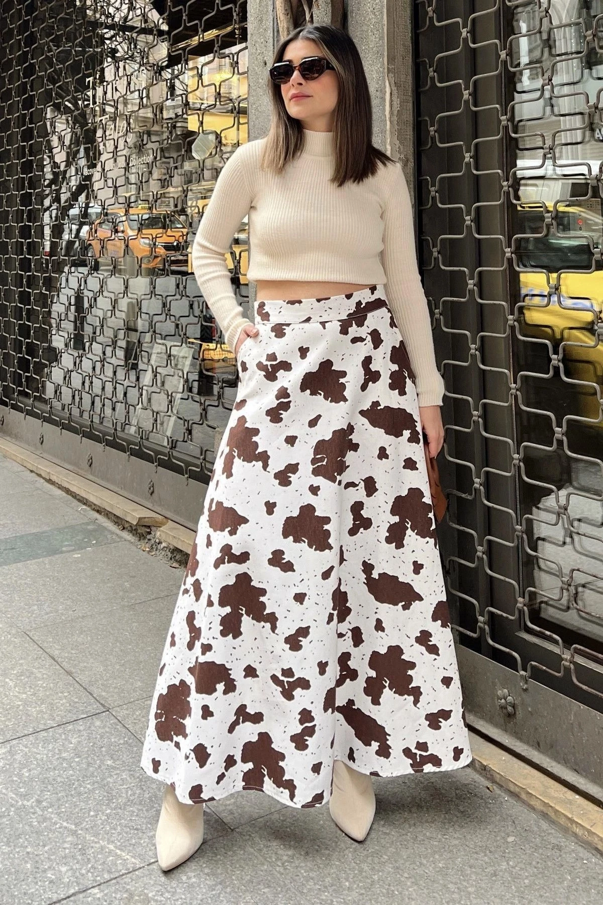 Kadın kahve Beli Lastikli, Cepli, Uzun Boy, Gabardin Kiloş Etek