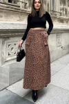Kadın kahve Beli Lastikli, Kargo Cepli, Rahat, Uzun Gabardin Kiloş Etek