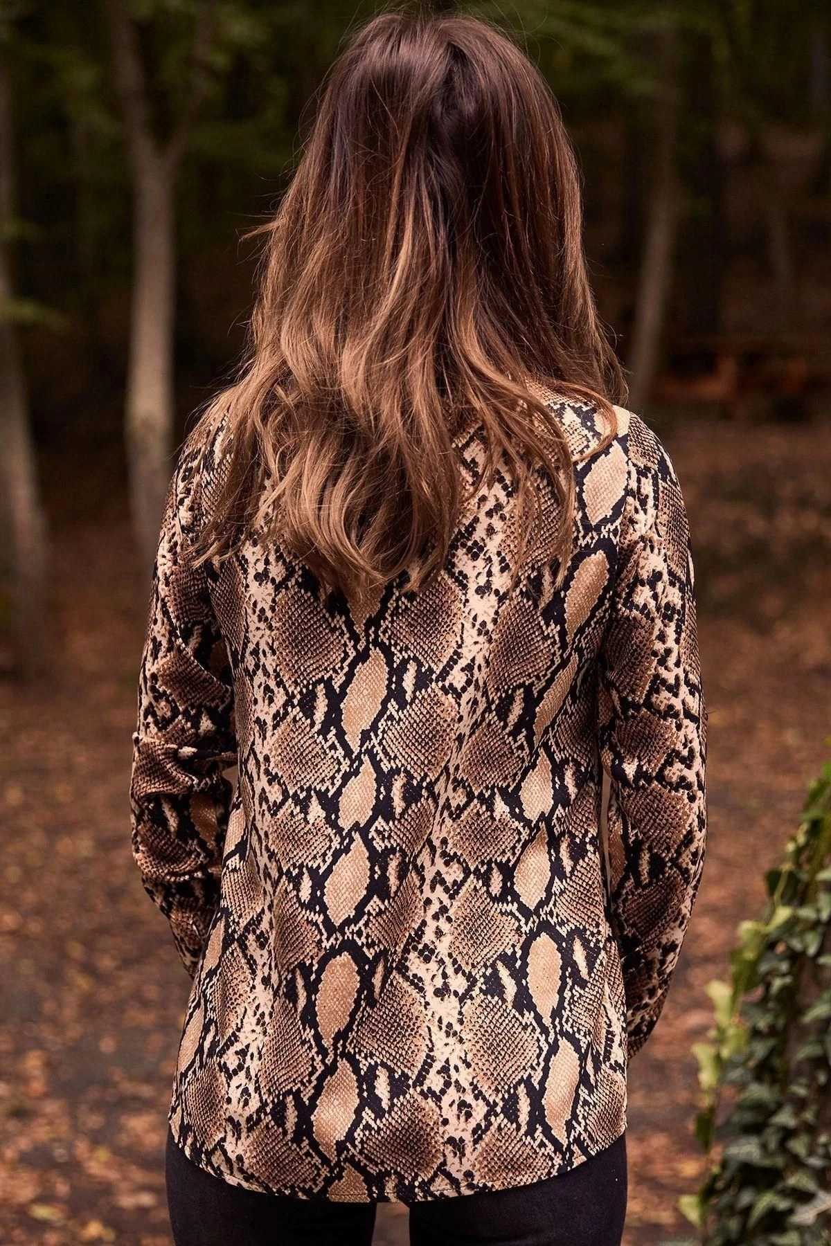 Bu muhteşem kahverengi renkli klasik yaka piton desenli uzun kol gömlek, zarif ve şık bir seçenektir.; Ürünümüz, regular kesimi ve standart boyuyla her vücut tipine uyum sağlar.; Gömleğin kumaşı %100 polyesterden üretilmiştir, bu da kaliteli ve dayanıklı bir malzeme olduğunu gösterir.; Polyester, kolay kırışmayan ve uzun süre dayanıklılığını koruyan bir kumaş türüdür.; Bu nedenle, gömleğimiz uzun süre kullanıma uygundur ve şeklini kolayca korur.; Kahverengi renk seçimi, gömleğe sofistike bir hava katarken, piton desenli tasarımı ile modern bir tarz sunar.; Piton deseni, doğanın zarif bir yansımasıdır ve giyiminize sıra dışı bir dokunuş katar.; Klasik yaka tasarımı, zamansız bir şıklık sunar ve farklı kombinasyonlara kolaylıkla uyum sağlar.; Gömleği iş görüşmeleri, özel etkinlikler veya günlük kullanım için rahatlıkla tercih edebilirsiniz.; Bu harika gömlek, özenle tasarlanmış ve kaliteli malzemelerle üretilmiştir.; İster özel bir hediye olarak düşünün, ister gardırobunuzdaki eksik parçaları tamamlamak için tercih edin, bu gömlek her durumda size şıklık ve konfor sağlayacaktır.
