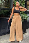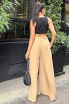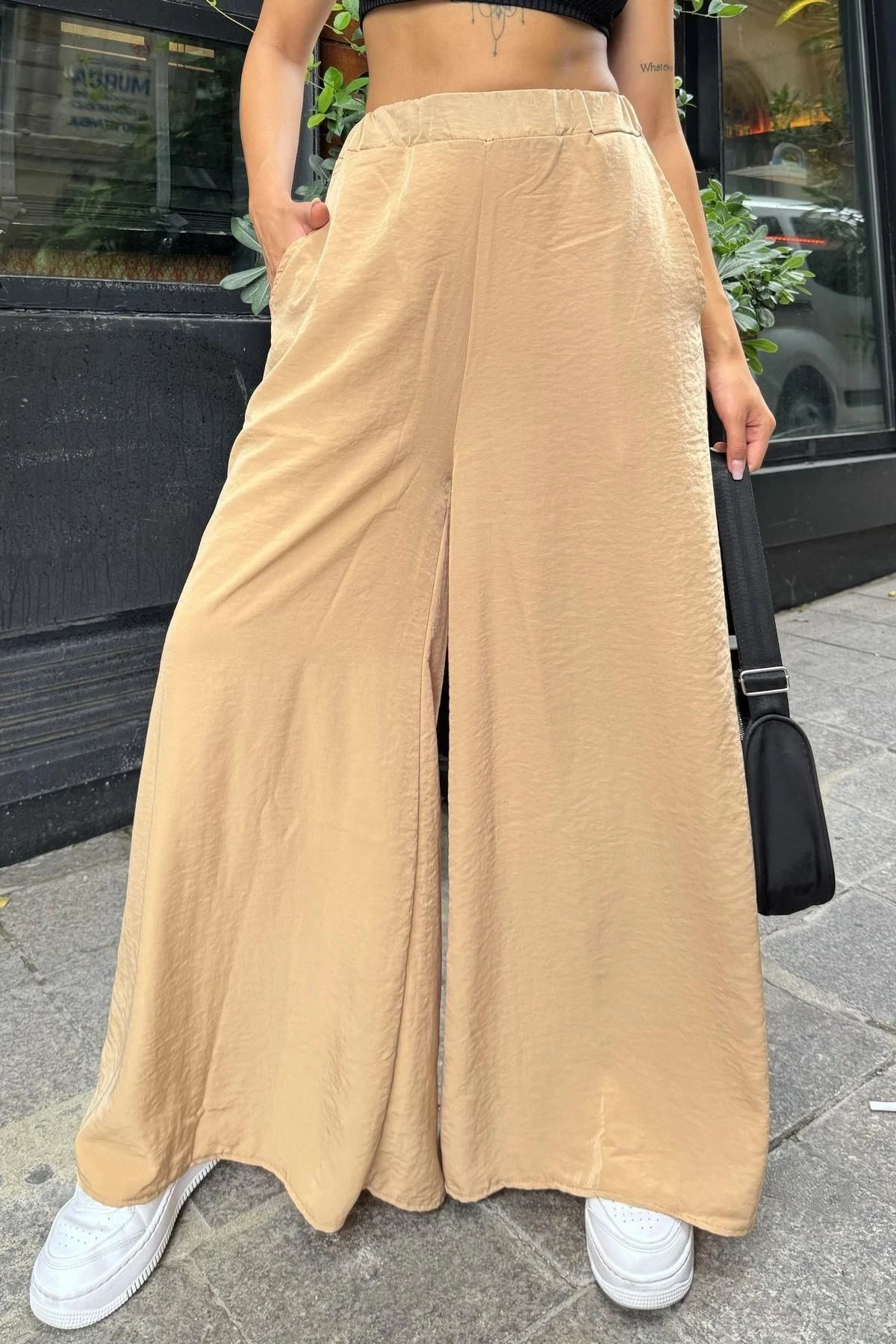 Kadın Karamel Beli Lastikli, Cepli, Bol Paça Özel Kumaş, Rahat Kalıp Pantolon - Tesettüre Uygun