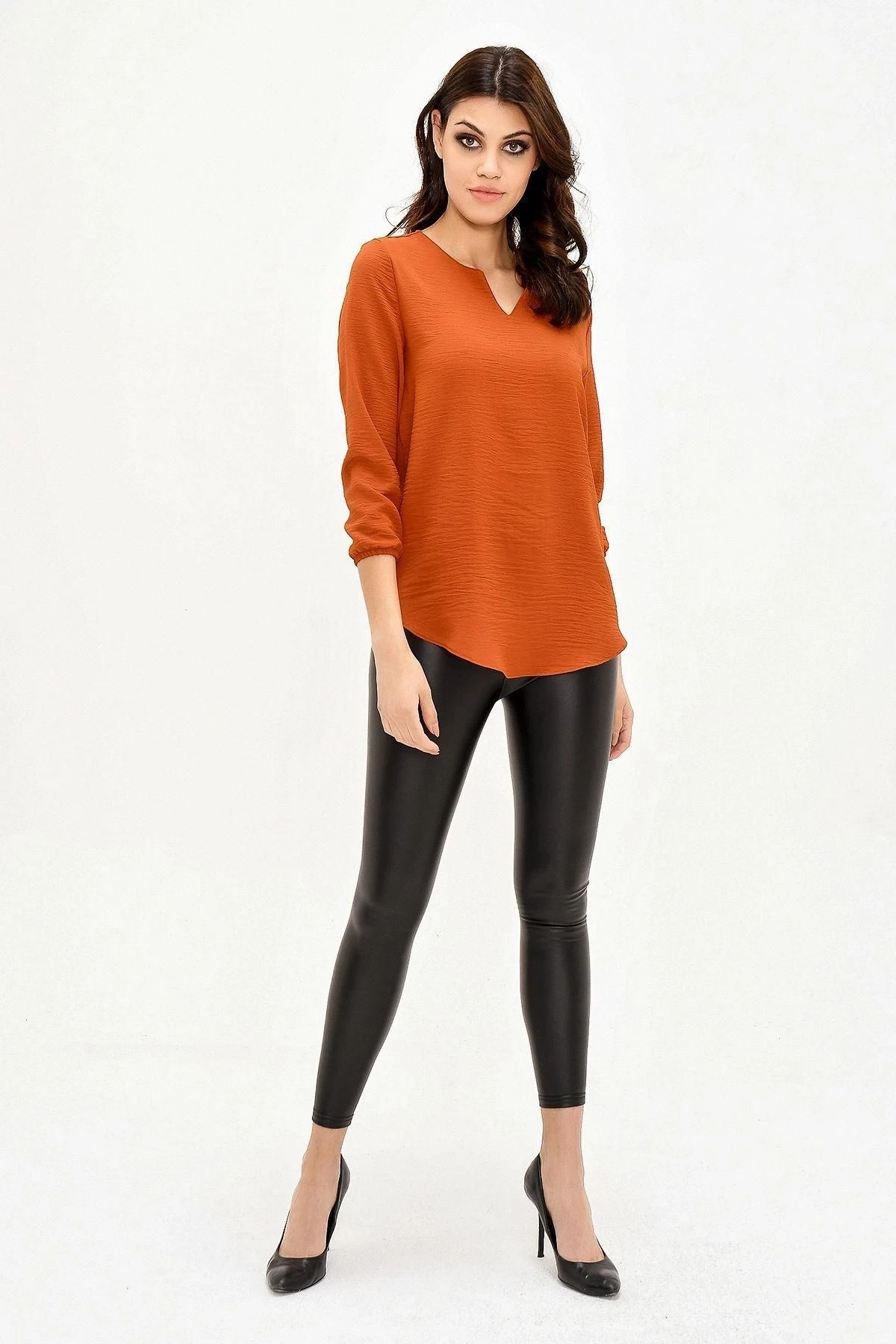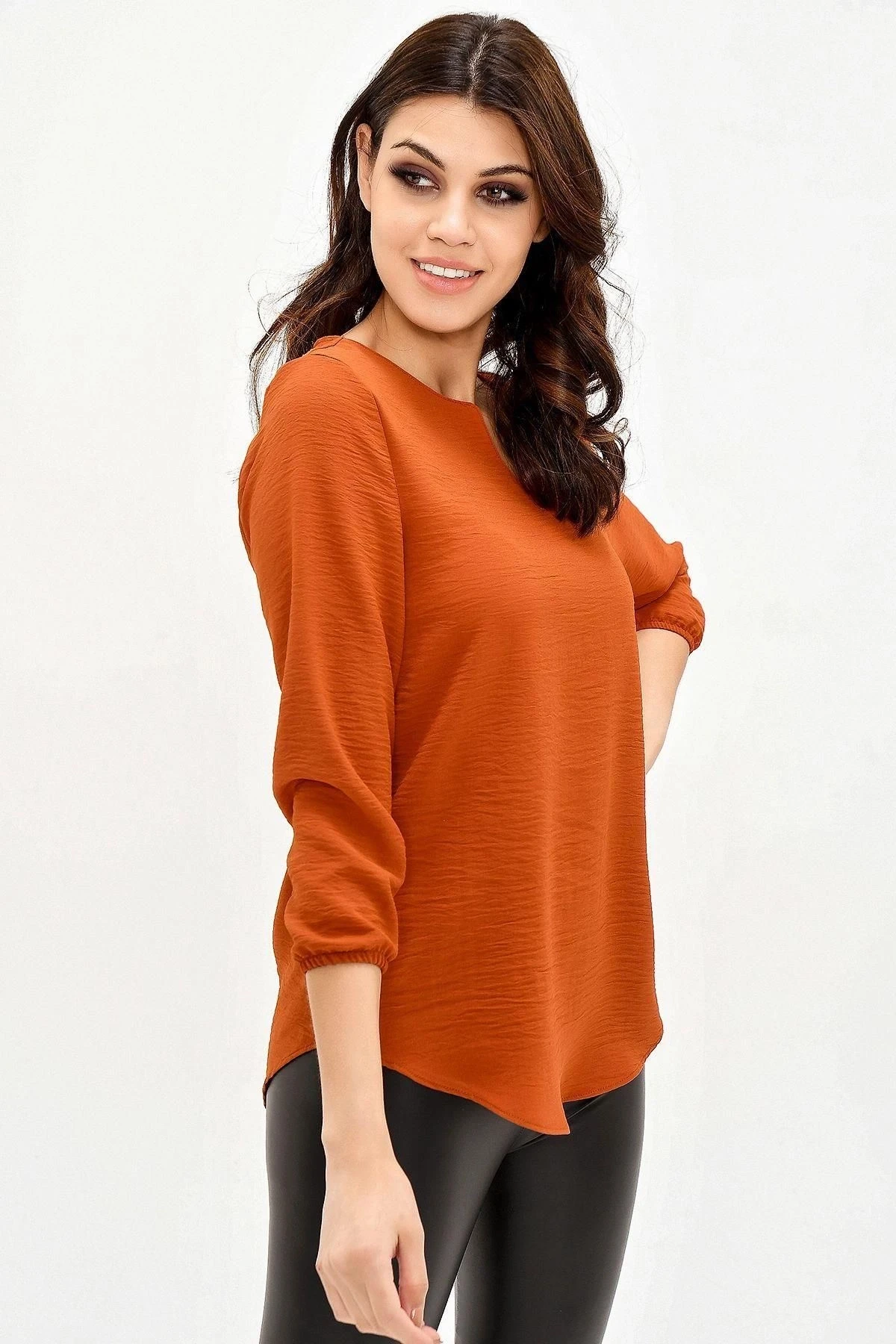 Kadın Kiremit Kaliteli Truvakar Kol Basic Bluz (Düz Kesim, Standart Boy)