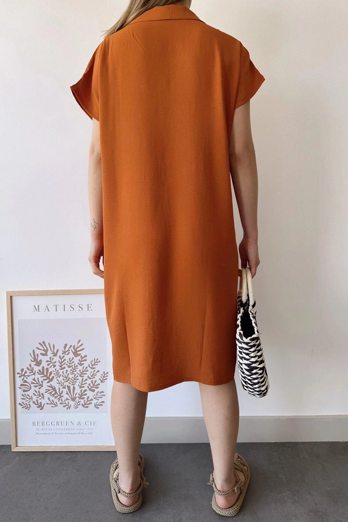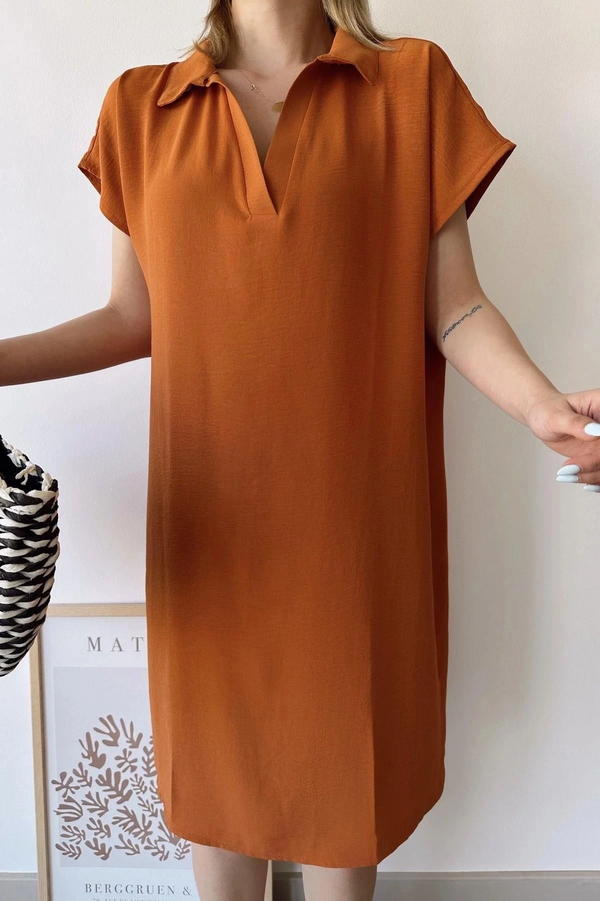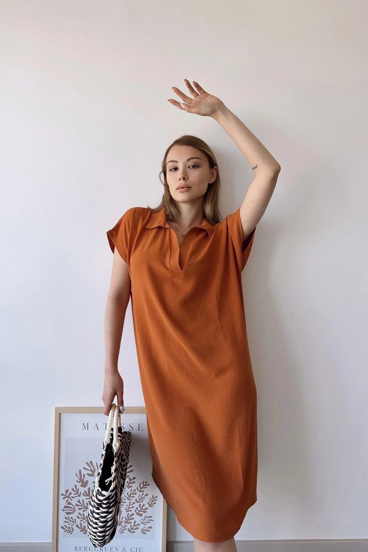 Bu kadın kiremit kısa kollu polo yaka midi elbise, rahatlık ve şıklığı bir arada sunuyor.; Elbisenin kumaşı %60 polyester ve %40 pamuk karışımından oluşur.; Bu karışım, elbisenin dayanıklılığını artırırken aynı zamanda yumuşaklık ve konfor sunar.; Polo yaka tasarımı, elbiseye spor ve şık bir hava katar.; Dokulu deseni, elbiseye görsel bir çekicilik ve dokunsal bir zenginlik kazandırır.; Kiremit rengi, canlı ve enerjik bir seçenektir.; Basic kalıp ve kesimi, elbisenin rahat bir oturuş sağlamasını ve giyen kişiye geniş bir hareket özgürlüğü sunmasını sağlar.; Aerobin kumaşı, hafif ve nefes alabilir bir yapıya sahiptir, böylece elbiseyi uzun süre boyunca rahatça giyebilirsiniz.; Bu kiremit kısa kollu polo yaka midi elbise, rahatlık ve şıklığı bir arada arayan kadınlar için mükemmel bir seçimdir.; %60 polyester ve %40 pamuk içeriğiyle, elbise konforlu bir giyim deneyimi sunar.; Dokulu deseni ve kiremit rengiyle görsel bir çekicilik sağlar.; Polo yaka tasarımı, elbiseye spor ve şık bir hava katar.; Basic kalıp ve kesimi, rahat bir oturuş sağlar ve geniş hareket özgürlüğü sunar.; Aerobin kumaşıyla hafiflik ve nefes alabilirlik sunar.; Bu elbise, günlük kullanımdan özel etkinliklere kadar birçok farklı durumda tarzınızı tamamlamak için idealdir.; Gardırobunuzun vazgeçilmez bir parçası olacak.
