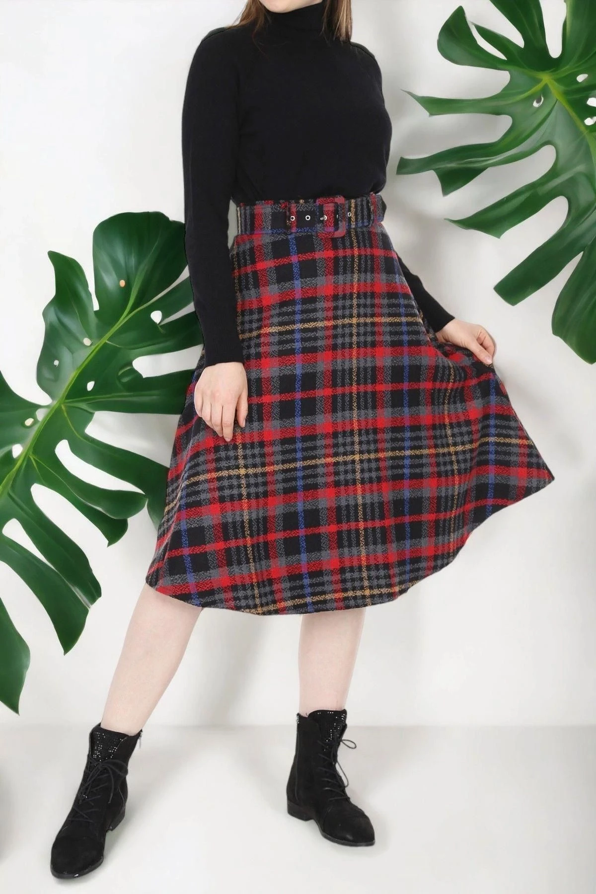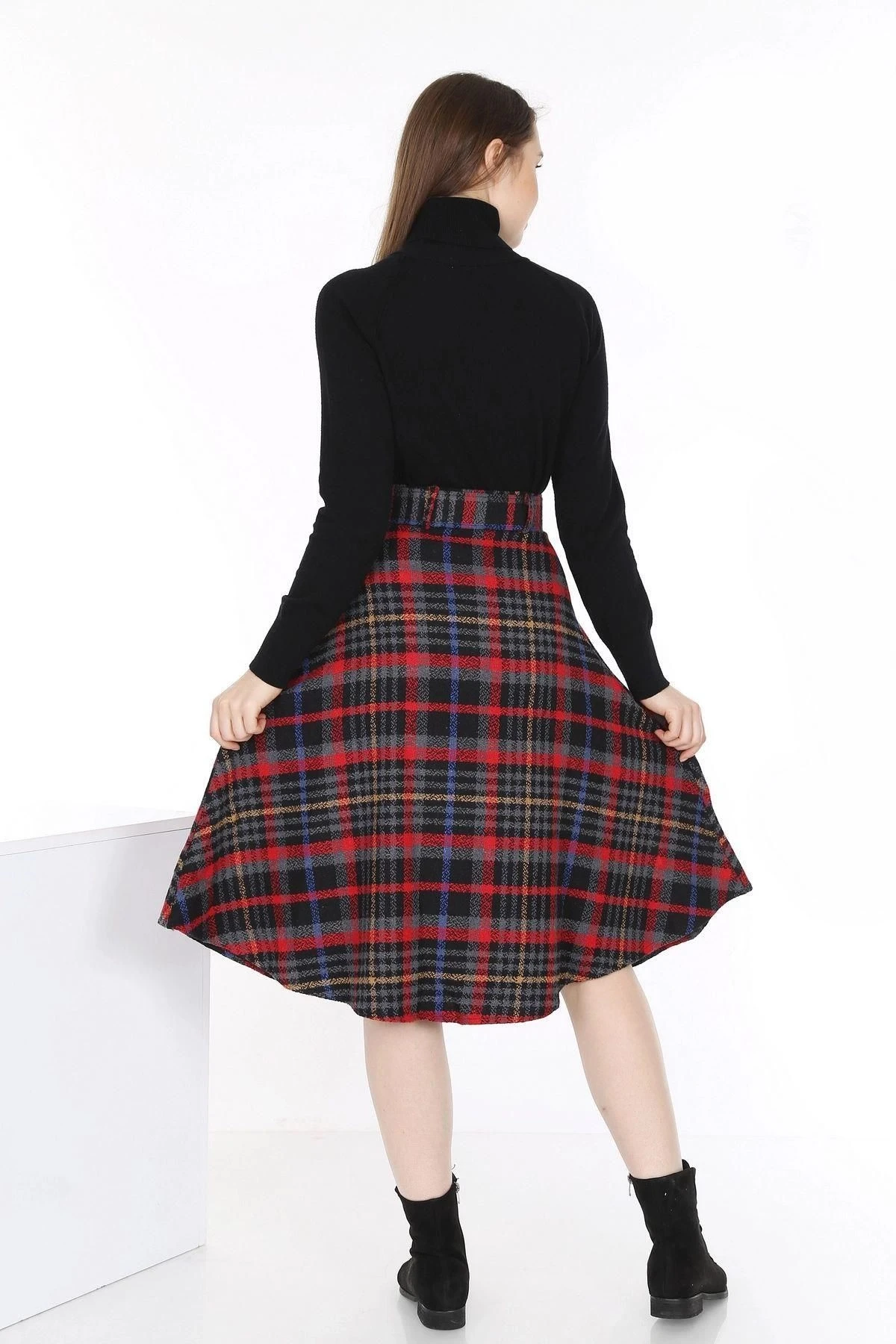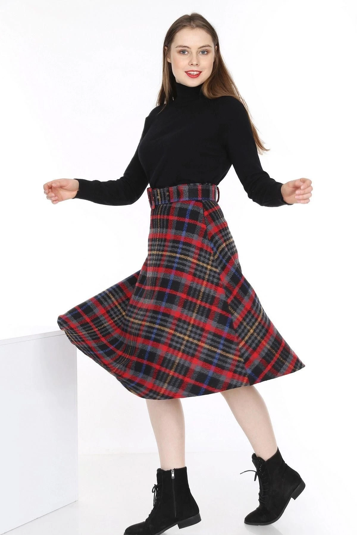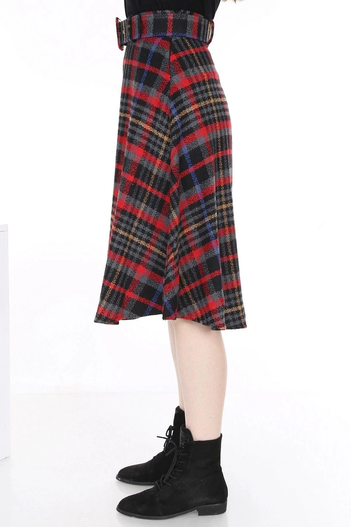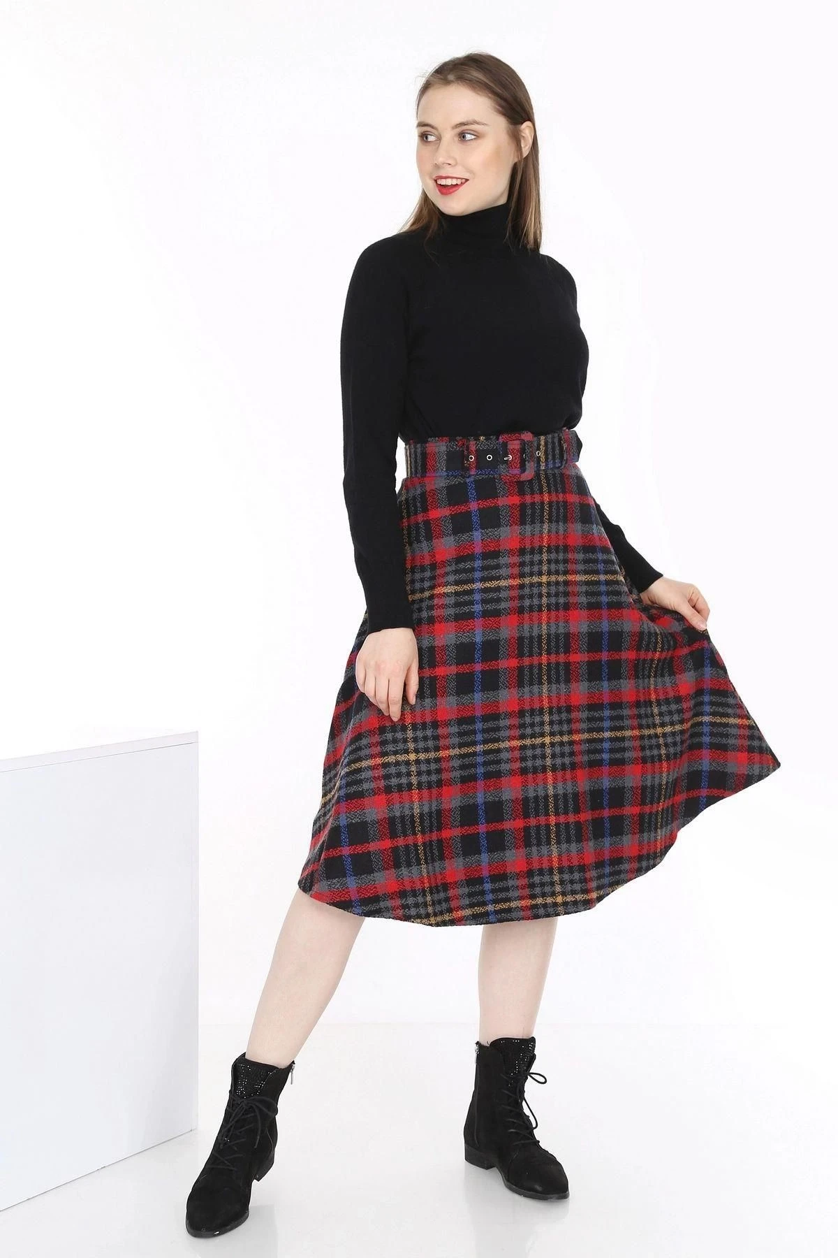 Bu kırmızı renkteki ekose desenli kaşe etek, zarif bir görünüm sunmak için tasarlandı.; Kaliteli kumaşı, %60 polyester ve %40 pamuktan oluşur, bu da dayanıklılık ve rahatlık sağlar.; Eteğin düz kesimi, klasik ve şık bir tarza sahip olmasını sağlarken, midi boyu da feminen bir çizgi yakalamak için idealdir.; Eteğin kırmızı rengi, cesur ve dikkat çekici bir seçimdir.; Kırmızı, enerji ve tutku simgesidir, giyen kişinin kendine güvenini yansıtmasına yardımcı olur.; Ekose deseni ise zamansız bir klasiktir ve eteğe şık bir dokunuş katar.; Kaliteli kumaş, eteğin uzun ömürlü olmasını sağlar ve kolay bakım sağlar.; %60 polyester ve %40 pamuk kombinasyonu, rahatlık ve dayanıklılık sunar.; Bu da eteği günlük kullanıma uygun hale getirirken, özel bir etkinlik veya iş toplantısı gibi daha resmi durumlarda da şık bir seçenek sunar.; Eteğin düz kesimi, klasik bir tarza sahip olmasını sağlar.; Basit ve zarif çizgileriyle vücut hatlarını takip eder ve her vücut tipine uyum sağlar.; Aynı zamanda midi boyuyla diz hizasında sonlanır, bu da eteği feminen bir çekicilikle tamamlar.; Midi boy, zarif ve sofistike bir görünüm sağlar.; Etek, kemer detayıyla da dikkat çeker.; Kemer, eteğin belini vurgulayarak daha şekilli bir siluet oluşturur.; Ayrıca kumaşın rengiyle uyumlu bir şekilde tasarlanmıştır ve eteğe şık bir aksesuar olarak eklenmiştir.; Bu kırmızı renkteki ekose desenli kaşe etek, şıklığı ve rahatlığı bir araya getiren bir parçadır.; Kaliteli kumaşı, zarif tasarımı ve detaylarıyla herhangi bir gardırobun vazgeçilmez bir parçası olabilir.; Hem günlük kullanıma hem de özel durumlara uygun bir seçenek sunar.