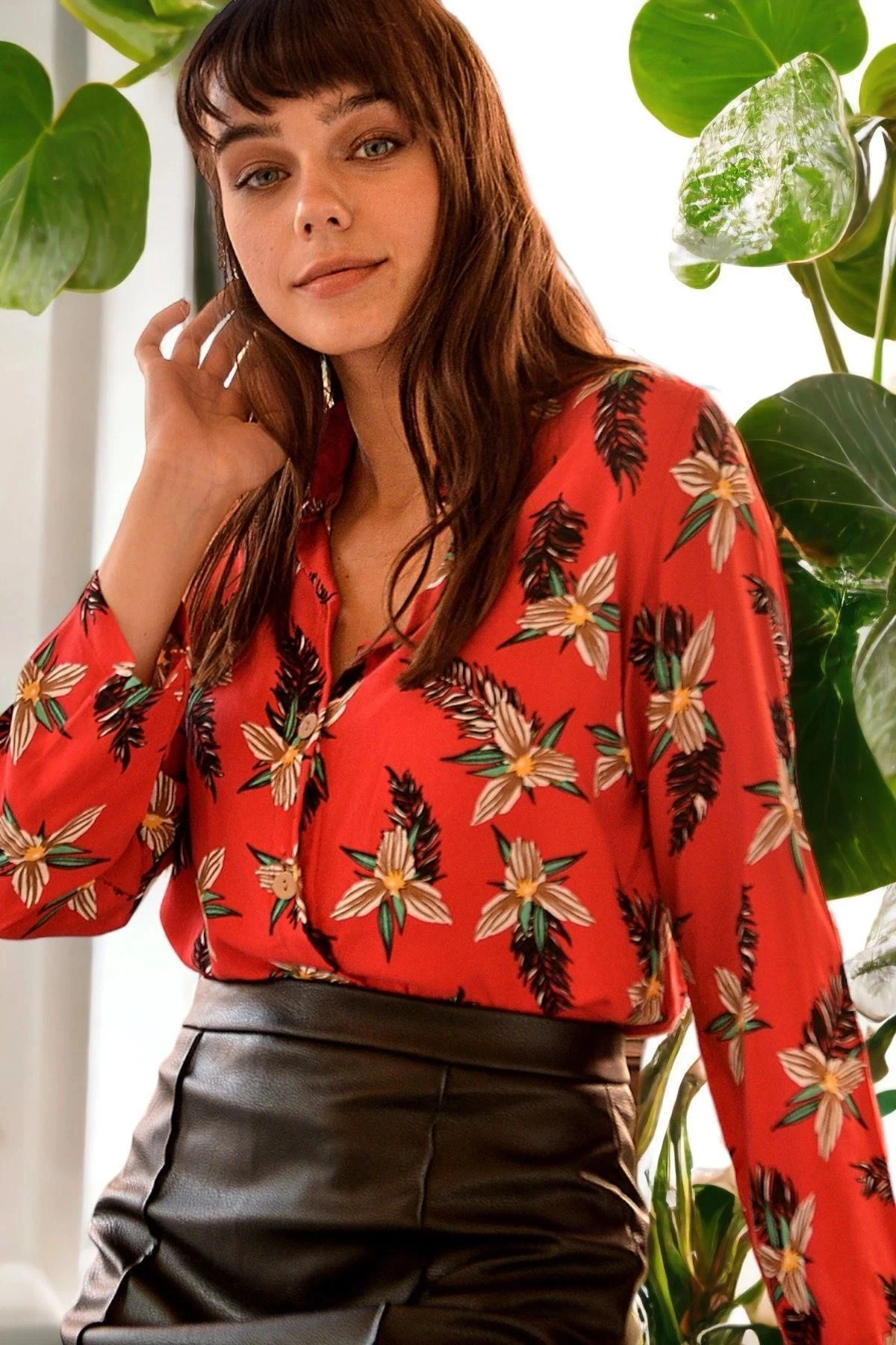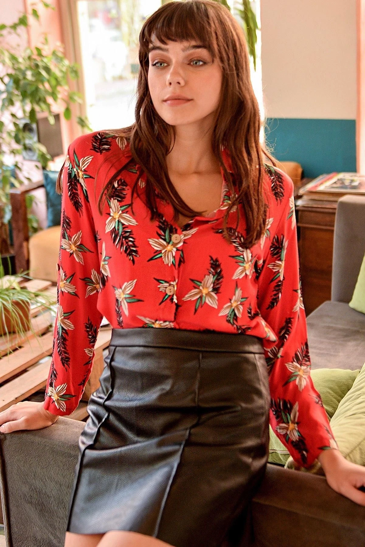 Bu gömlek, klasik yaka tasarımıyla şık ve zarif bir görünüm sunuyor. ; Kırmızı renkli kumaşı, çiçek desenleriyle hareketlendirilmiştir, bu da gömleğe canlılık katmaktadır. ; Uzun kollu kesimi, hem rahatlık sağlar hem de daha sofistike bir görünüm sunar. ; Standart boyutlarıyla geniş bir uyum sağlar. ; Bu gömleğin kumaş içeriği %100 polyesterdir. ; Polyester, dayanıklı ve esnek bir malzeme olduğu için uzun süreli kullanıma uygundur. ; Kırmızı renk, enerjik ve dikkat çekici bir seçimdir. ; Gömleğin çiçek desenleri, zarafeti ve doğal güzelliği temsil eder. ; Bu kombinasyon, herhangi bir olay veya etkinlik için mükemmel bir seçimdir. ; İster resmi bir toplantıya katılın, ister arkadaşlarınızla bir akşam yemeği planlayın, bu gömlek size şık ve stil sahibi bir görünüm kazandıracaktır. ; Standart boyu, çoğu bedene uyum sağlar ve genel bir kesimi vardır, bu da rahat bir giyim deneyimi sunar. ; Gömleği gardırobunuza eklemek, stilinizi ve kişisel tarzınızı ifade etmek için harika bir yoldur. ; Bu kırmızı renkli çiçek desenli gömlek, kaliteli kumaşı, şık tasarımı ve rahat kesimiyle sizin için mükemmel bir seçenektir. ; İster özel bir gününüzde şık bir görünüm yakalamak isteyin, ister günlük hayatta tarzınızı ifade etmek isteyin, bu gömlek her durumda size eşlik etmeye hazırdır.;