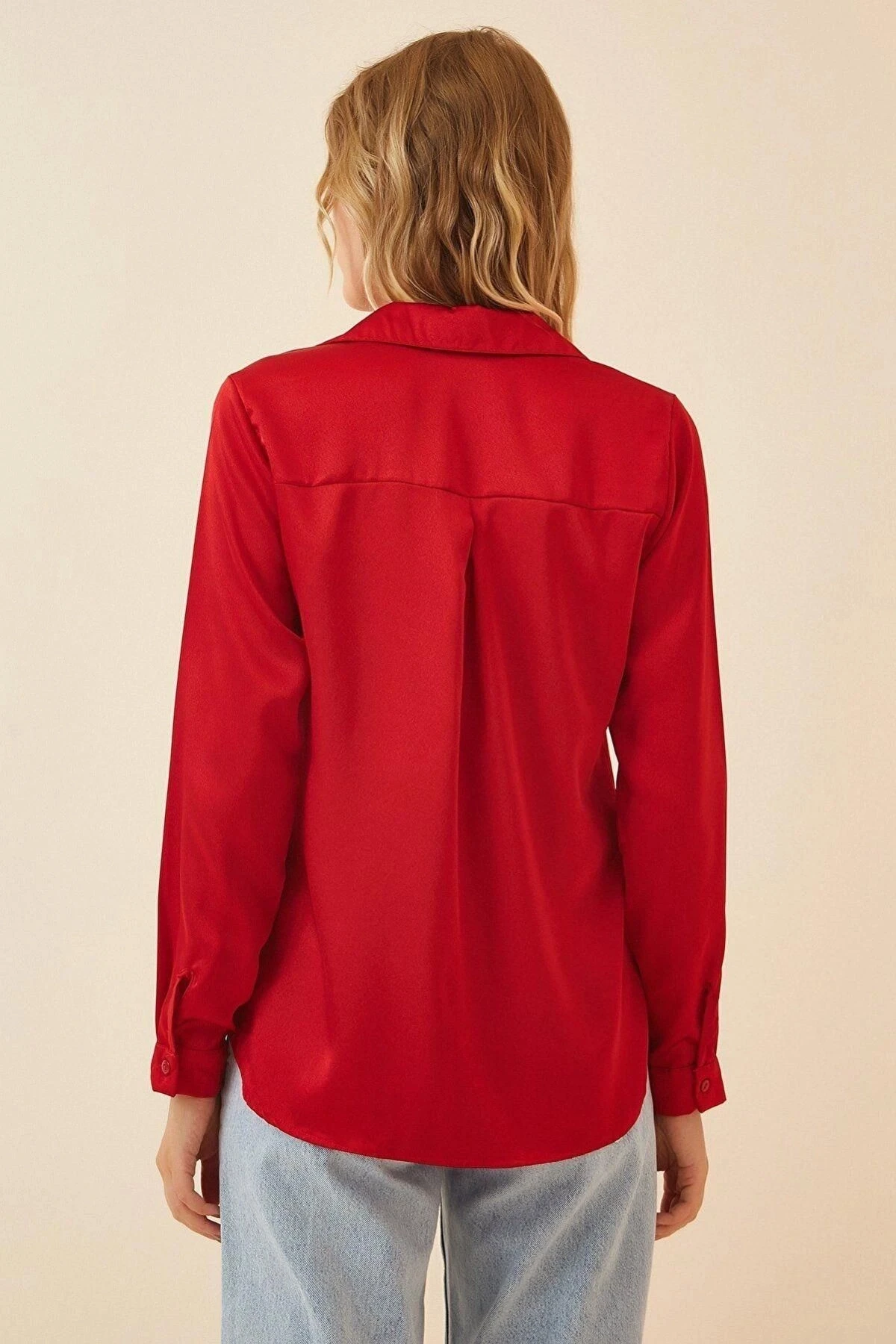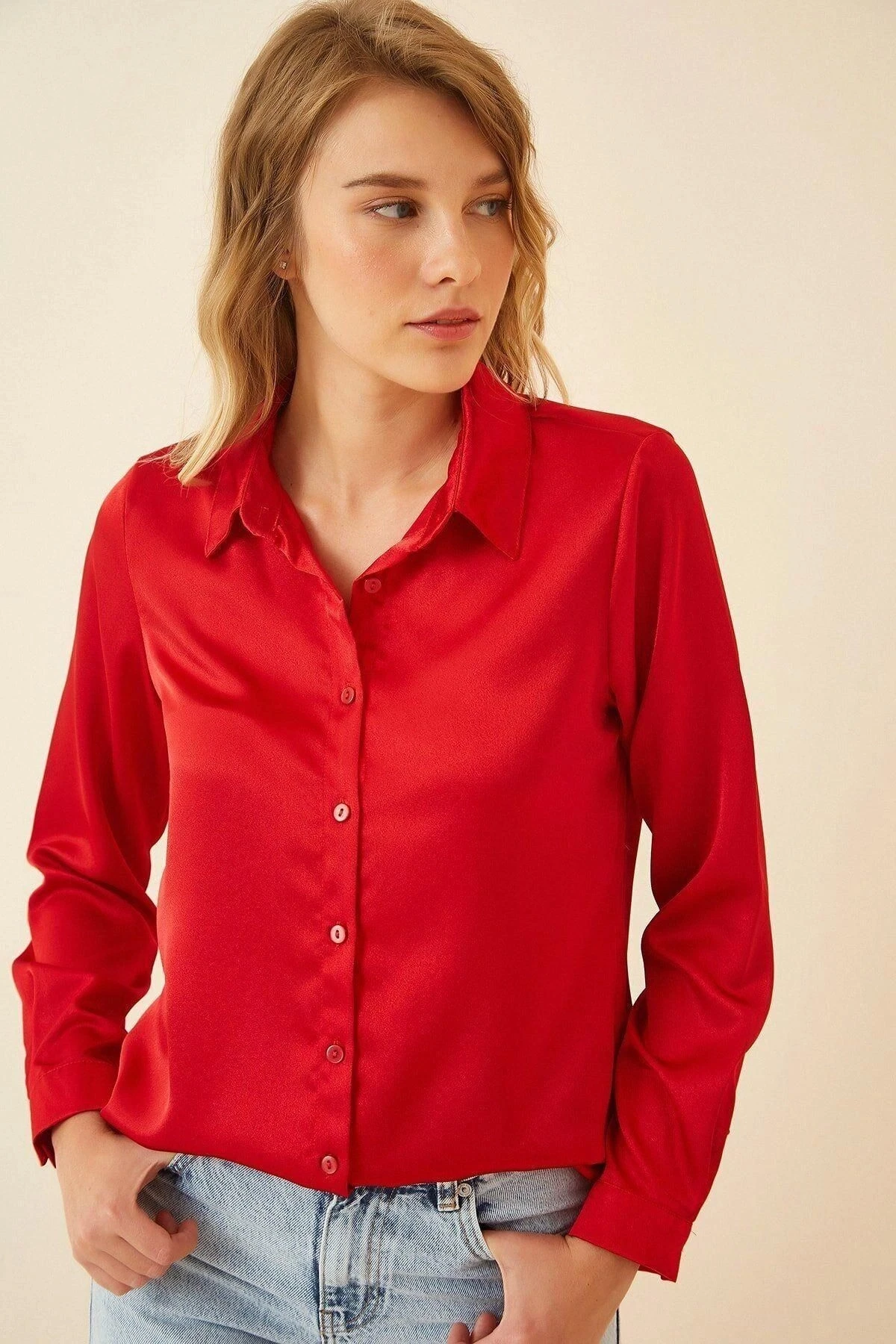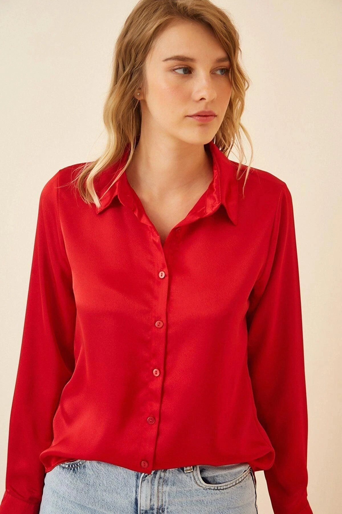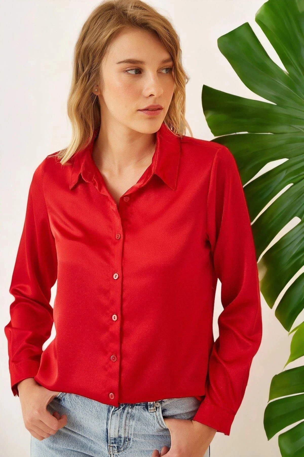 Bu kırmızı renkli klasik yaka uzun kollu gömlek, saten kalitesindeki kumaşıyla şıklık ve konforu bir araya getiriyor.; Basic tasarımıyla her zaman şık görünmenizi sağlar.; Kumaş içeriği %60 polyester ve %40 pamuk olarak karışımdan oluşmaktadır.; Bu gömleğin kumaşı, yüksek kaliteli polyester ve pamuk karışımıyla üretilmiştir.; Bu sayede hem dayanıklılık sağlar, hem de nefes alabilirlik özelliği sunar.; Polyesterin dayanıklılığı, gömleğin uzun ömürlü olmasını sağlarken, pamuğun doğal dokusu cildinize hoş bir his verir.; Kırmızı renk, gömleğin enerjik ve çarpıcı bir görünüm kazanmasını sağlar.; Bu canlı renk, stilinizi vurgulayarak dikkat çekmenizi sağlar.; Klasik yaka tasarımı, herhangi bir durumda şıklığınızı tamamlar ve tarzınıza sofistike bir dokunuş katar.; Uzun kollu yapısı, serin havalarda ekstra koruma sağlarken, düz kesim ve standart boyu sayesinde her bedene uyum sağlar.; Bu gömlek, hem günlük giyimde rahatlıkla kullanabileceğiniz bir seçenek sunar, hem de daha resmi veya özel etkinliklerde şık bir tercih olabilir.; Bu saten kalitesindeki kumaş, pürüzsüz ve lüks bir görünüm sunarken, düz kesimi ise minimalist bir tarzı destekler.; Gömleği istediğiniz gibi kombinleyebilir, pantolonlar veya eteklerle farklı tarzlara kolaylıkla uyum sağlayabilirsiniz.; Kırmızı Renk Klasik Yaka Uzun Kol, Basic Saten Kaliteli Kumaş, Düz Kesim Standart Boy Gömlek, hem stil hem de konfor arayanlar için mükemmel bir seçenektir.; Herhangi bir gardıropta yerini alabilecek bu gömlek, şıklığı ve kaliteyi bir araya getirerek sizin tarzınızı yansıtmanızı sağlar.