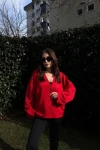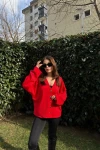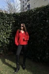Kadın Kırmızı Scuba Kumaş, Silver Dügme Detaylı, Salaş Ceket Bluz