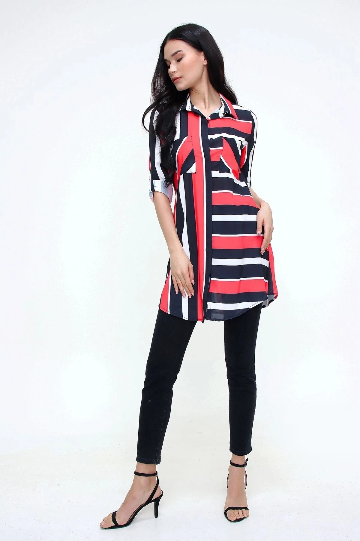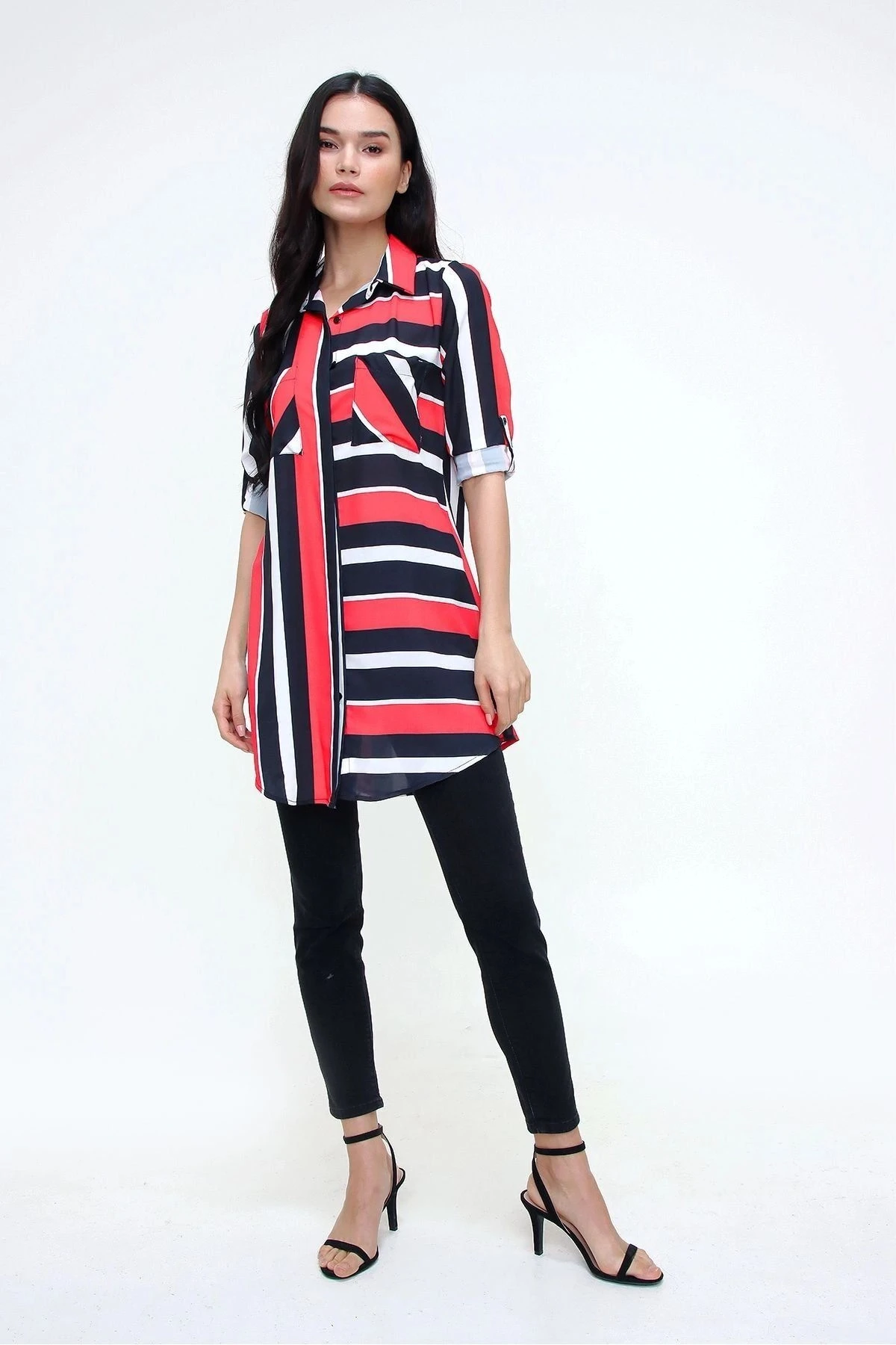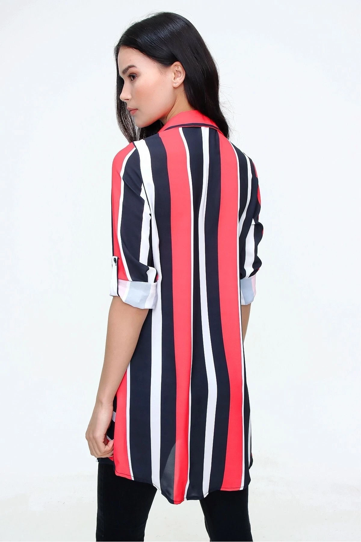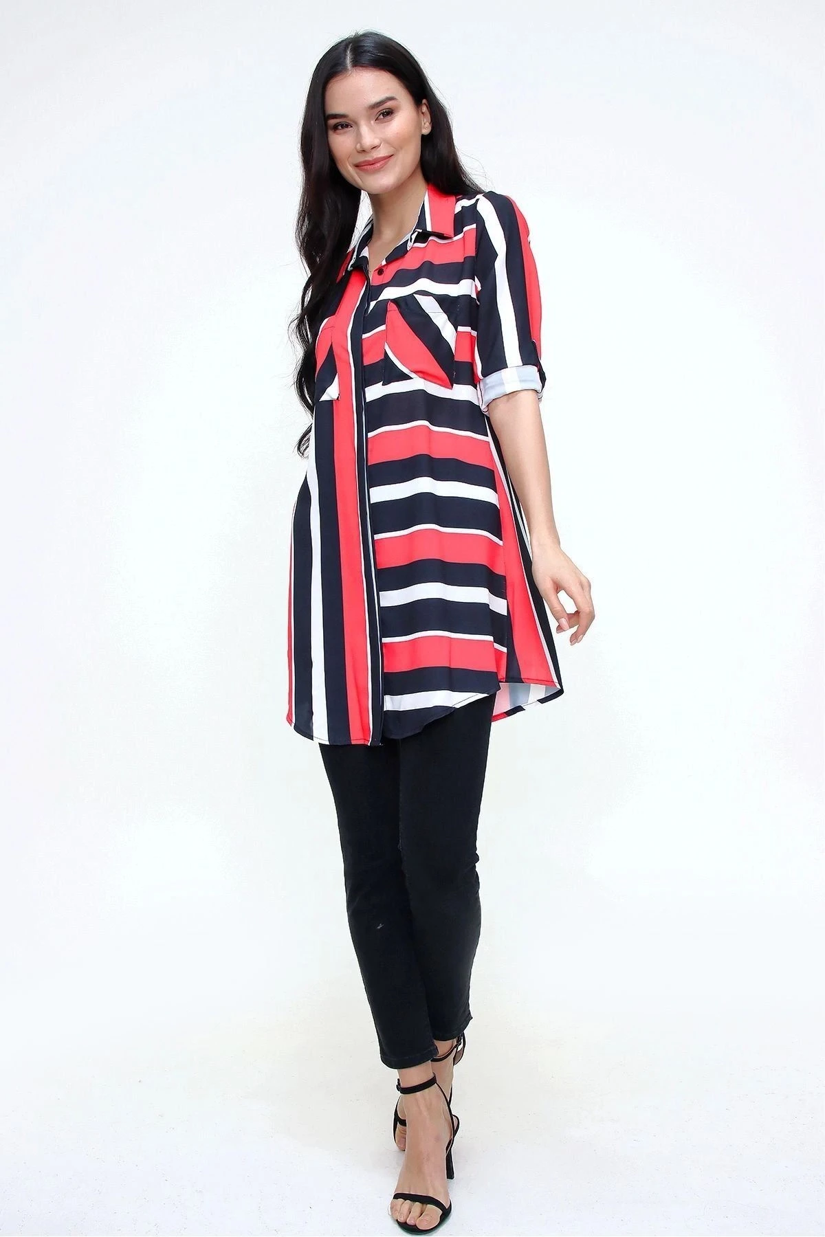 Bu ürün, kırmızı siyah renkte bir klasik yaka uzun kollu gömlek tuniktir.; Çizgili deseni ve cep detaylarıyla dikkat çeken bu gömlek tunik, kaliteli kumaşından dolayı son derece rahat bir kesime sahiptir.; Tesettüre uygun bir şekilde tasarlanmıştır.; Gömlek tuniğin kumaşı %100 polyesterden üretilmiştir.; Polyester, dayanıklılığı ve esnekliğiyle bilinen bir malzemedir.; Bu kumaş, uzun süreli kullanım için idealdir ve yıpranmaya karşı dayanıklıdır.; Aynı zamanda hafif ve yumuşaktır, böylece gün boyu konfor sağlar.; Kırmızı siyah renk kombinasyonu, gömlek tuniğe canlı ve şık bir görünüm kazandırır.; Çizgili desen, gömleğin üzerindeki çizgilerle modern ve zarif bir tarz yaratır.; Bu gömlek tunikteki cep detayları, kullanışlılığı artırır ve stilinizi tamamlar.; Gömlek tuniğin klasik yaka tasarımı, zarif bir görünüm sunarken tesettür giyim tarzına uygunluğunu da sağlar.; Uzun kollu kesimi, kollarınızı sıcak tutar ve şıklığınızı tamamlar.; Maksi boyu, tuniği hem gündelik hem de özel günlerde rahatlıkla kullanabileceğiniz çok yönlü bir parça haline getirir.; Bu gömlek tunik, kaliteli kumaşı, çekici renk kalıbı ve şık tasarımıyla gardırobunuzun vazgeçilmez bir parçası olacak.; Hem şıklığı hem de rahatlığı bir arada sunan bu gömlek tunikle tarzınızı özgürce ifade edebilirsiniz.