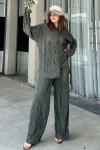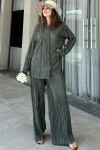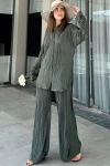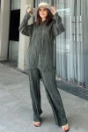 Kadın Koyu Yeşil Uzun Tunik Gömlek & Beli Lastikli, Bol Paça Pantolon - Salaş Bürümcük Takım