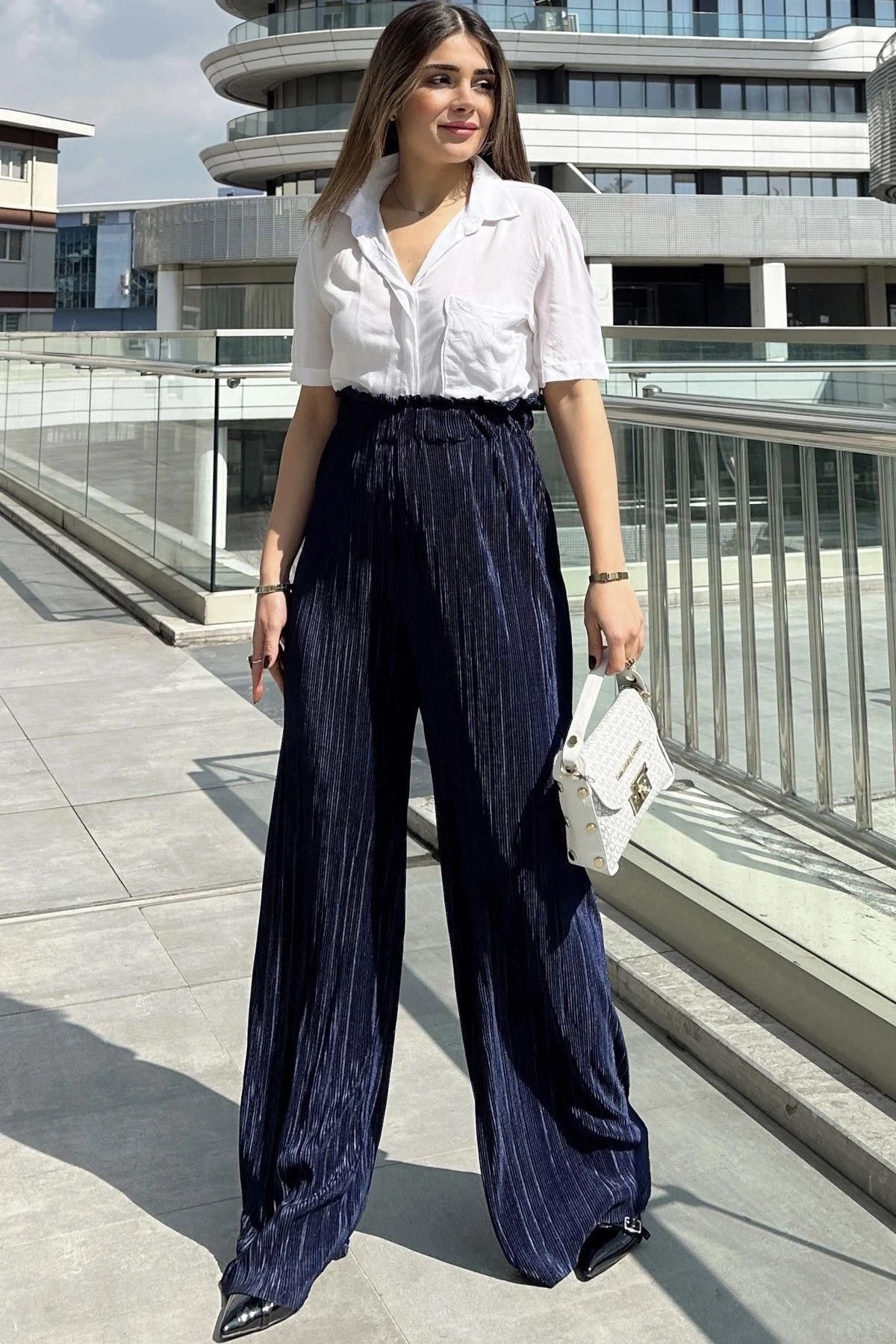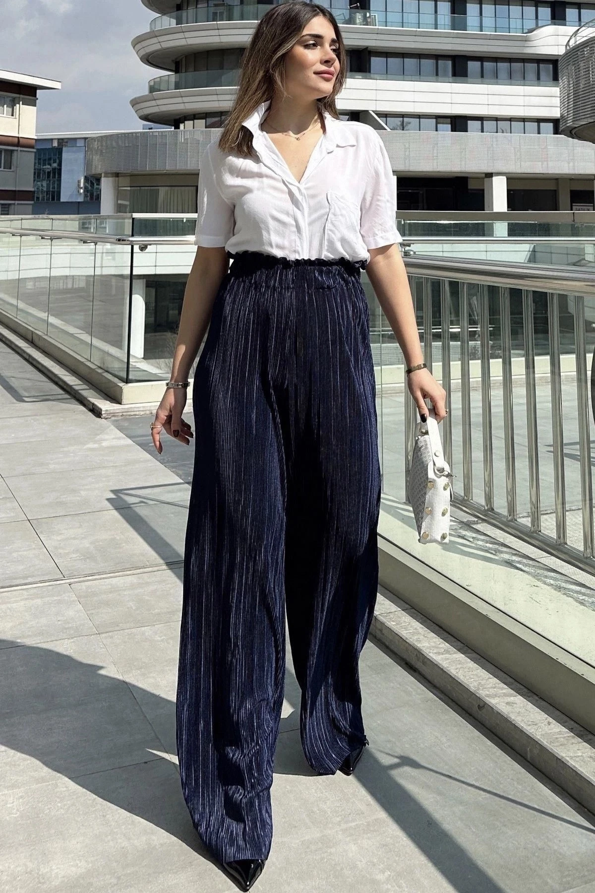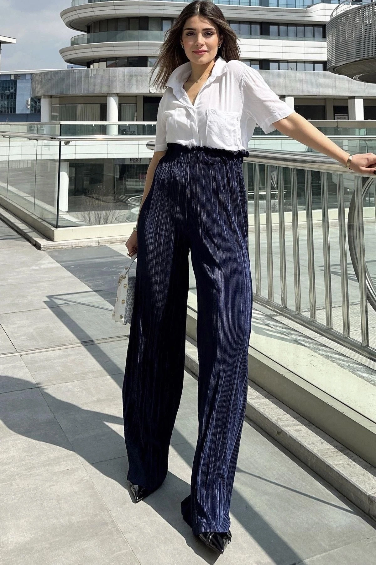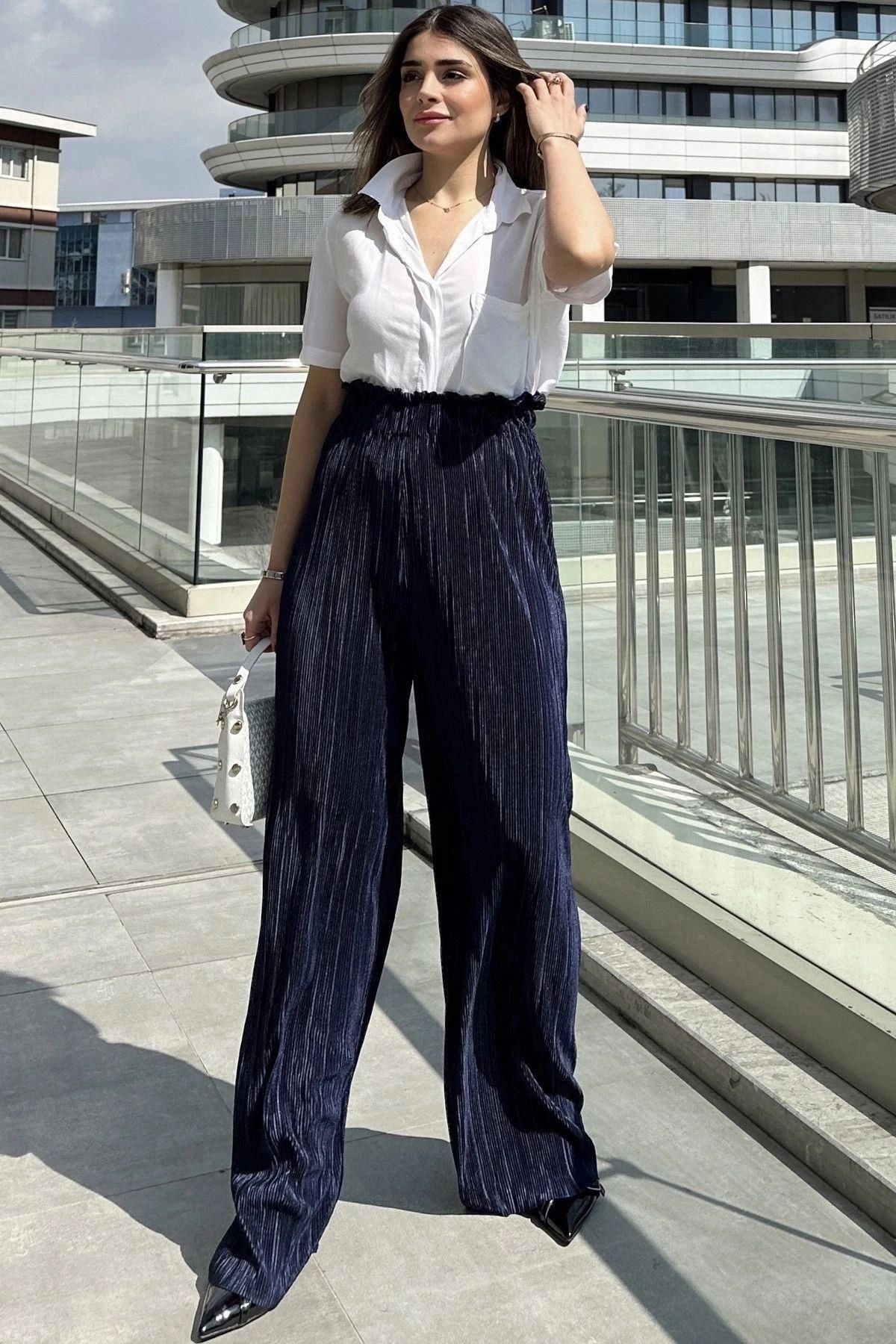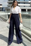 Kadın Laci Beli Lastikli, Yüksel Bel, Salaş Kesim, Bol Paça Bürümcük Pantolon