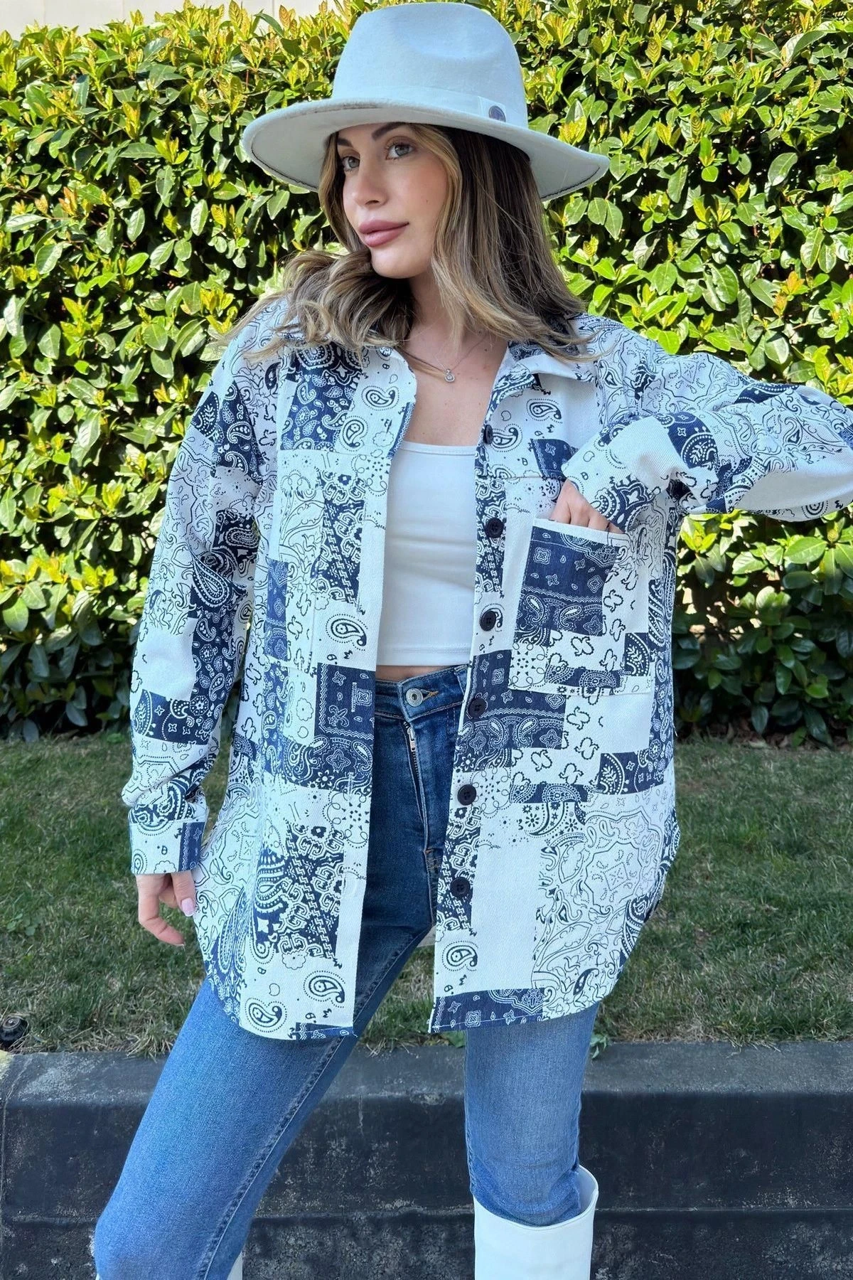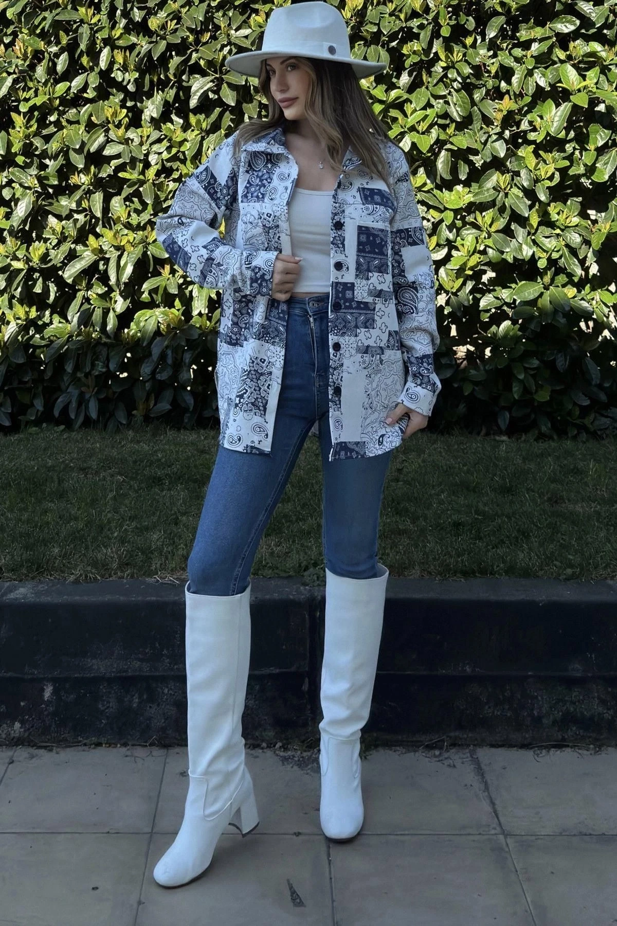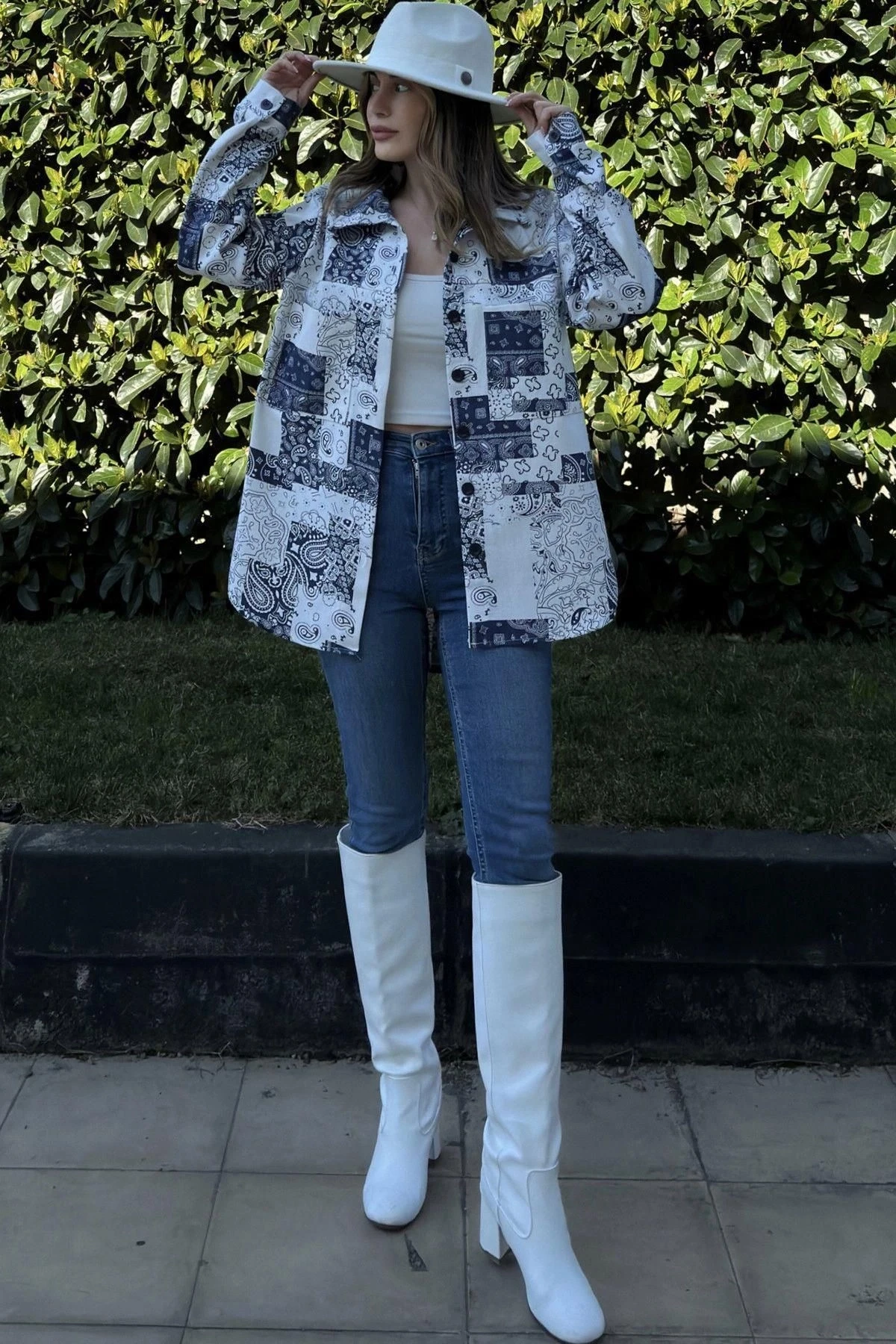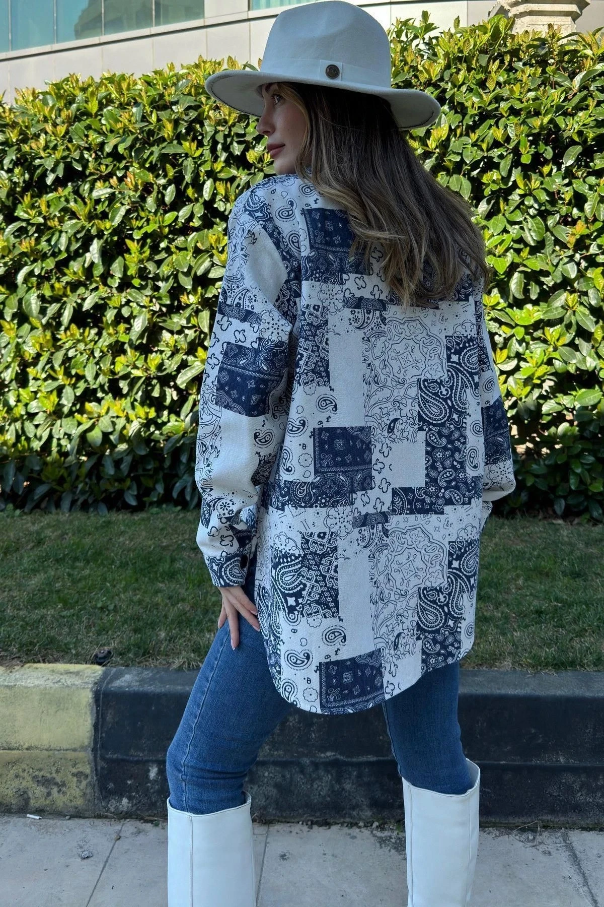 Kadın Laci Desenli Gabardin Kumaş, Eteği Oval Kesim, Cepli, Oversize Gömlek