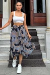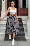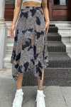 Kadın Laci & Ekru Desenli, Asimetrik Kesim, Hareketli, Rahat Moda Etek