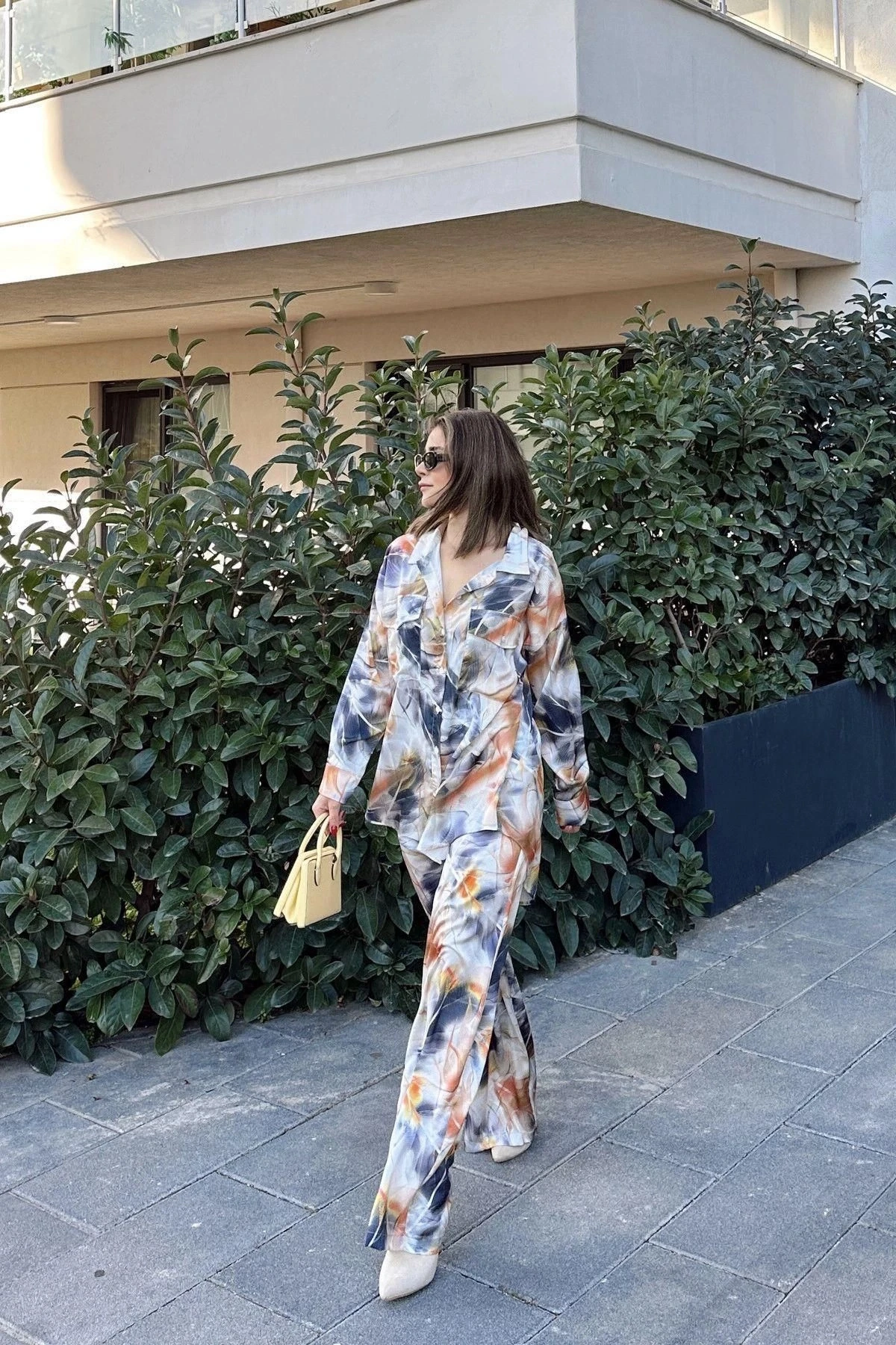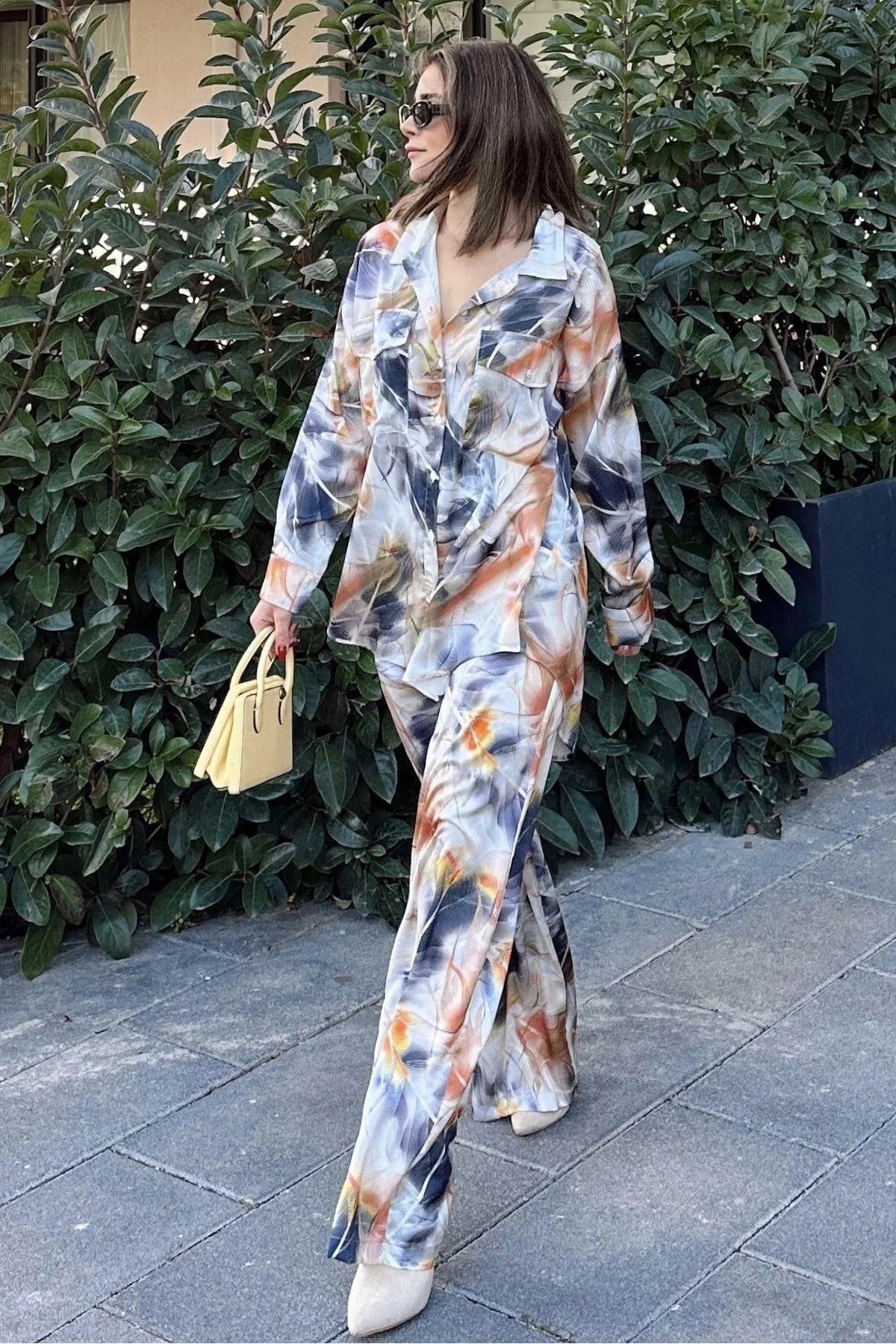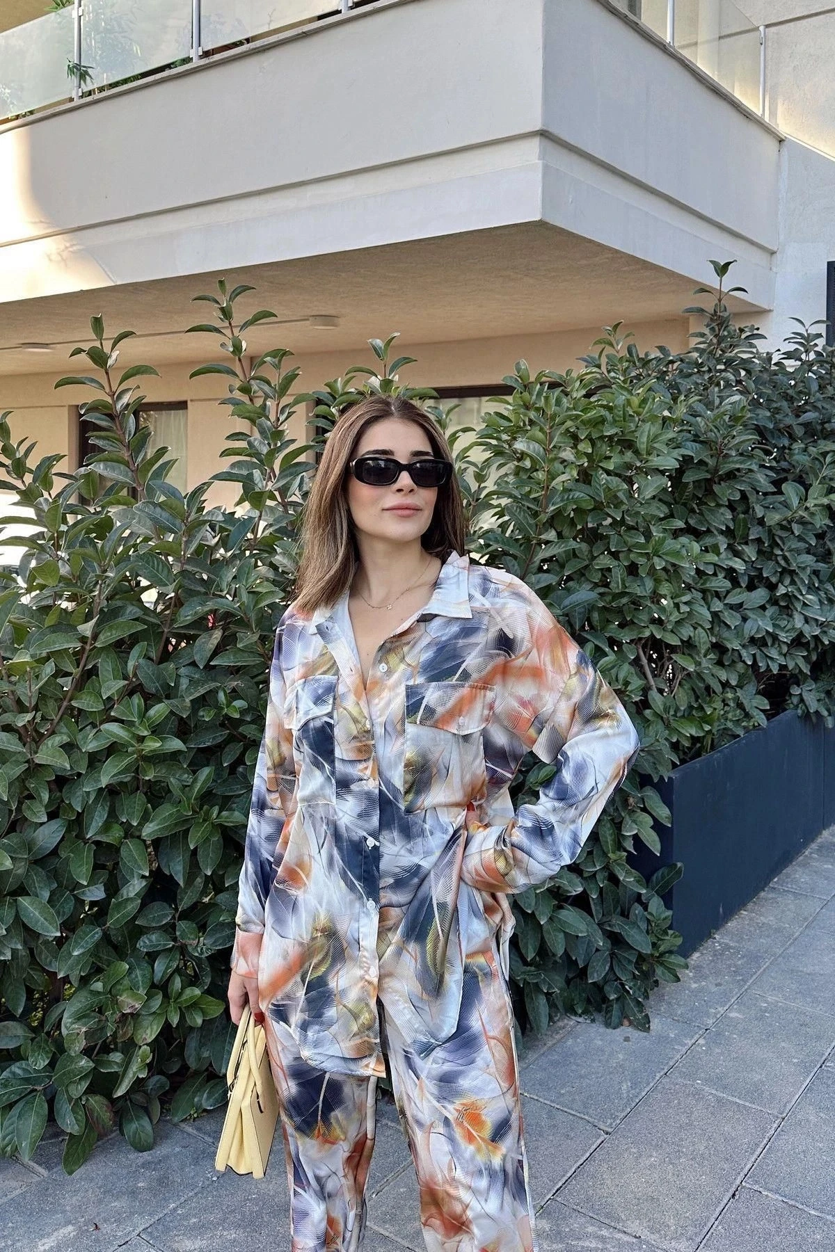 Kadın Laci & Kiremit Çift Cepli Gömlek & Bol Paça Pantolon - Salaş Alt & Üst Takım