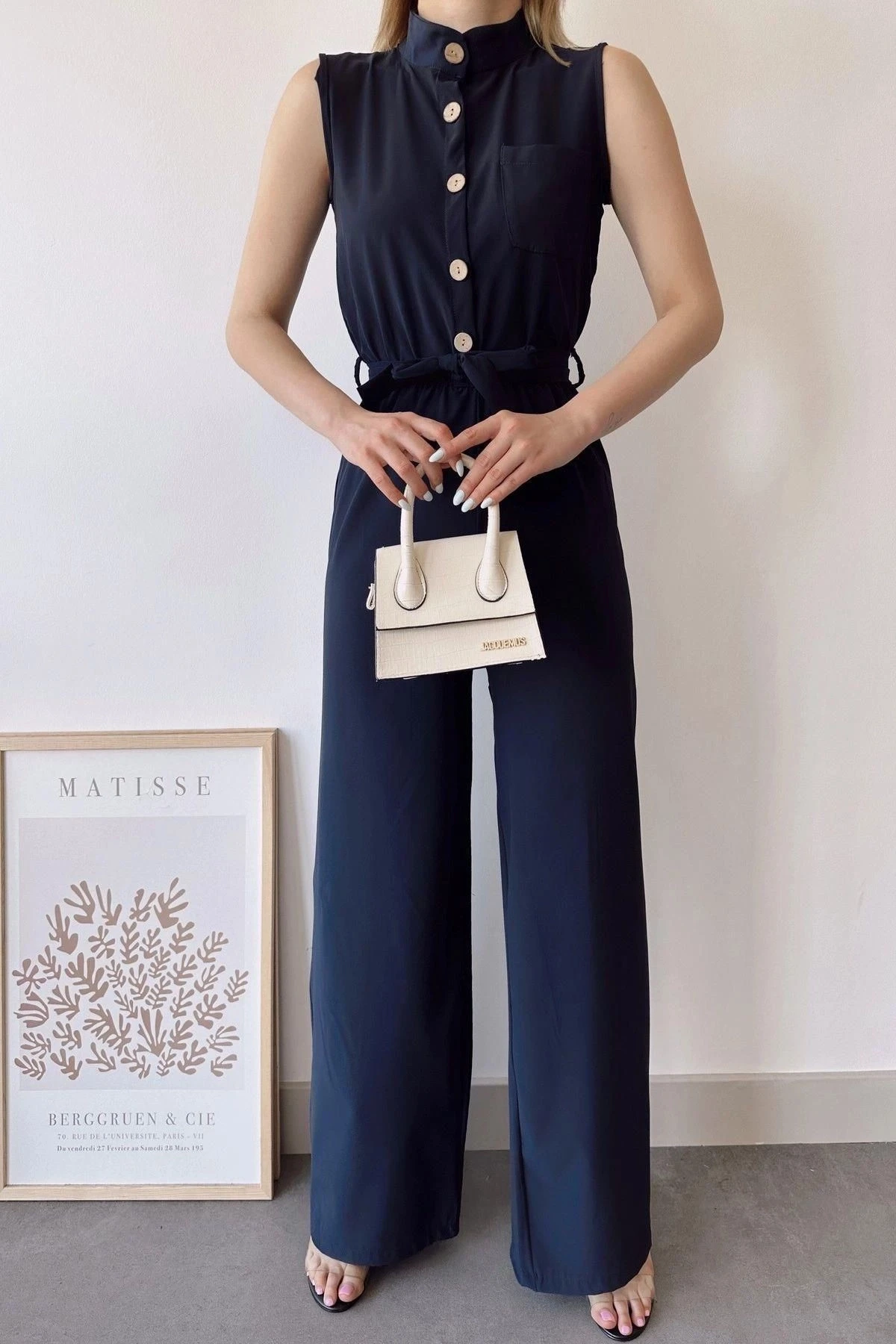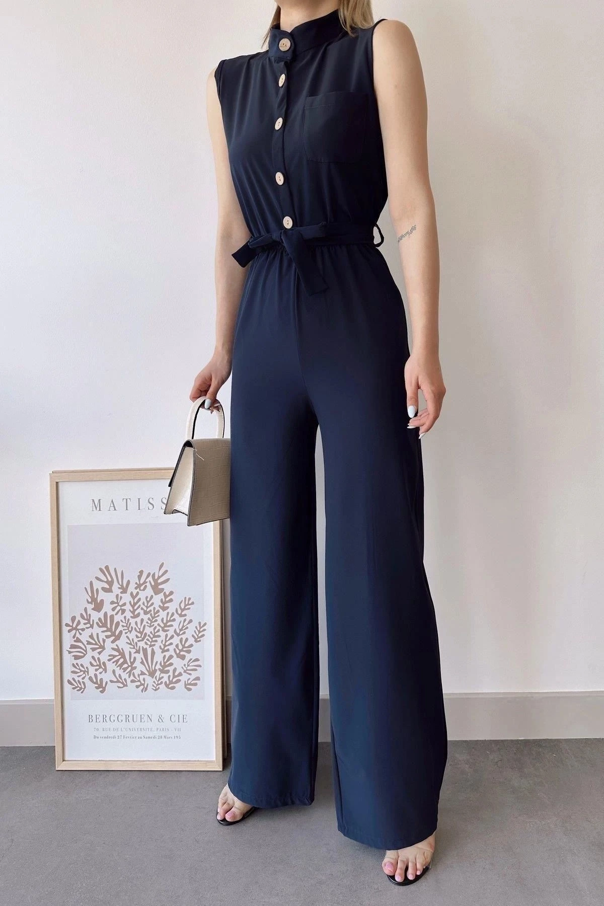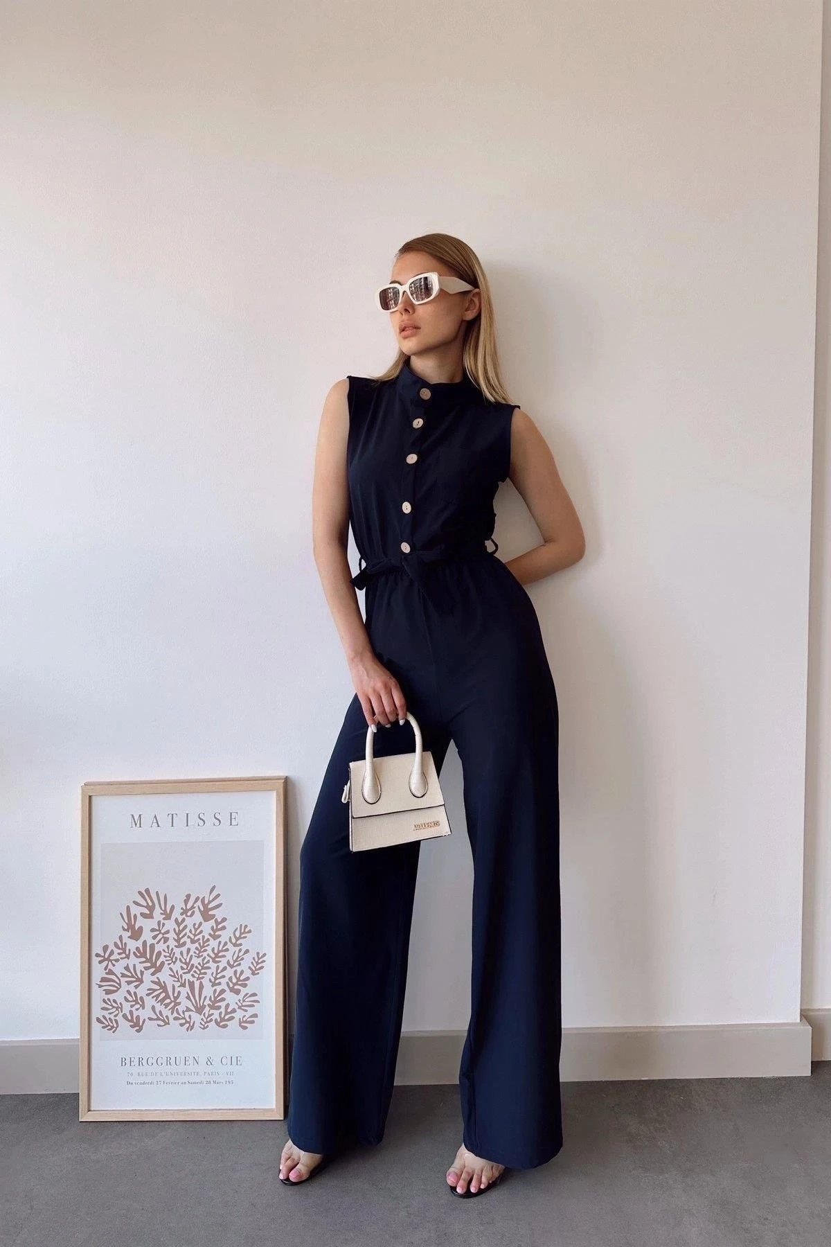 Bu kadın laci kolsuz dik yaka kuşaklı uzun tulum, şıklığı ve rahatlığı bir arada sunuyor.; Tulumun kumaşı %95 polyester ve %5 elastan içeriğe sahiptir.; Bu karışım, tulumun esnekliğini ve rahatlığını artırırken aynı zamanda dayanıklılığını da sağlar.; Dik yaka tasarımı, tulumun modern ve şık bir görünüm kazanmasını sağlar.; Düz deseni, sade ve minimalist bir tarz sunar.; Laci rengi, sofistike ve zarif bir seçenektir.; Tek cepli detay, tulumun şıklığını tamamlar ve kullanışlı bir özelliğe sahiptir.; Standart kalıp ve kesimi, tulumun vücuda hoş bir şekilde oturmasını ve hareket özgürlüğü sağlar.; Aerobin kumaşı, hafif ve nefes alabilir bir yapıya sahiptir, böylece tulumu rahatlıkla giyebilirsiniz.; Kuşak detayı, tulumun bel bölgesinde bulunur ve beli vurgular.; Bu detay, tulumun şeklini ayarlamak ve size özgü bir uyum sağlamak için kullanılabilir.; Bu laci kolsuz dik yaka kuşaklı uzun tulum, şıklık ve rahatlık arayan kadınlar için mükemmel bir seçimdir.; %95 polyester ve %5 elastan içeriğiyle, tulum esneklik ve rahatlık sunar.; Düz deseni ve laci rengiyle sade ve zarif bir görünüm sağlar.; Dik yaka tasarımı, modern ve şık bir hava katar.; Tek cepli detay, tulumu şık ve kullanışlı kılar.; Standart kalıp ve kesimi, tulumun vücuda hoş bir şekilde oturmasını ve hareket özgürlüğü sağlar.; Aerobin kumaşıyla hafiflik ve nefes alabilirlik sunar.; Kuşak detayı, tulumun bel bölgesini vurgular ve size özgü bir uyum sağlar.; Bu tulum, özel etkinliklerden günlük kullanıma kadar birçok farklı durumda tarzınızı tamamlamak için idealdir.; Gardırobunuzun vazgeçilmez bir parçası olacak.
