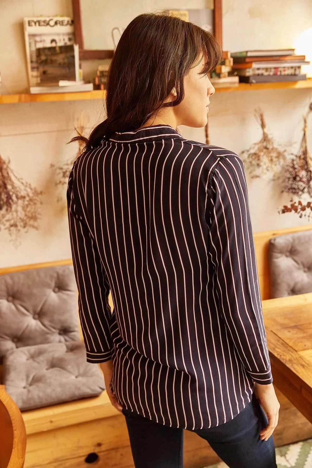 Bu Lacivert Renk Klasik Yaka Çizgili Uzun Kol Gömlek, şıklığı ve rahatlığı bir araya getiren bir seçenektir.; Gömleğin kumaşı %100 Polyester'den yapılmıştır, bu da hem dayanıklılığı hem de yumuşak dokusuyla konforlu bir giyim deneyimi sunar.; Renk seçimi olarak lacivert tercih edilmiştir.; Lacivert, klasik ve şık bir görünüm sağlayan zamanı geçmeyen bir renktir.; Hem formel hem de günlük durumlarda rahatlıkla kullanılabilir.; Çizgili tasarımı, gömleğe hareketlilik ve karakter katarak sıradışı bir görünüm sunar.; Bu gömlek, standart boyutta ve regular kesime sahiptir.; Bu kesim, çoğu bedene uyum sağlar ve rahat bir oturuş sunar.; Uzun kollu tasarımı, serin havalarda ekstra koruma sağlarken, klasik yaka detayı da tarzınızı tamamlamanıza yardımcı olur.; Gömleğin %100 Polyester kumaş içeriği, dayanıklı ve kırışıklıklara karşı dirençli olmasını sağlar.; Bu özellik, ürünün uzun süreli kullanımına olanak tanır ve pratik bir şekilde bakımını sağlar.; Ayrıca, Polyester'in nefes alabilme özelliği sayesinde, terlemeyi en aza indirir ve gün boyu ferah kalmanızı sağlar.; Bu Lacivert Renk Klasik Yaka Çizgili Uzun Kol Gömlek, zarif ve modern bir stil sunarak gardırobunuzun vazgeçilmez bir parçası olacak.; İster özel bir etkinlikte, ister günlük hayatta kullanın, şıklığınızı tamamlayacak ve sizi öne çıkaracak bir seçimdir.