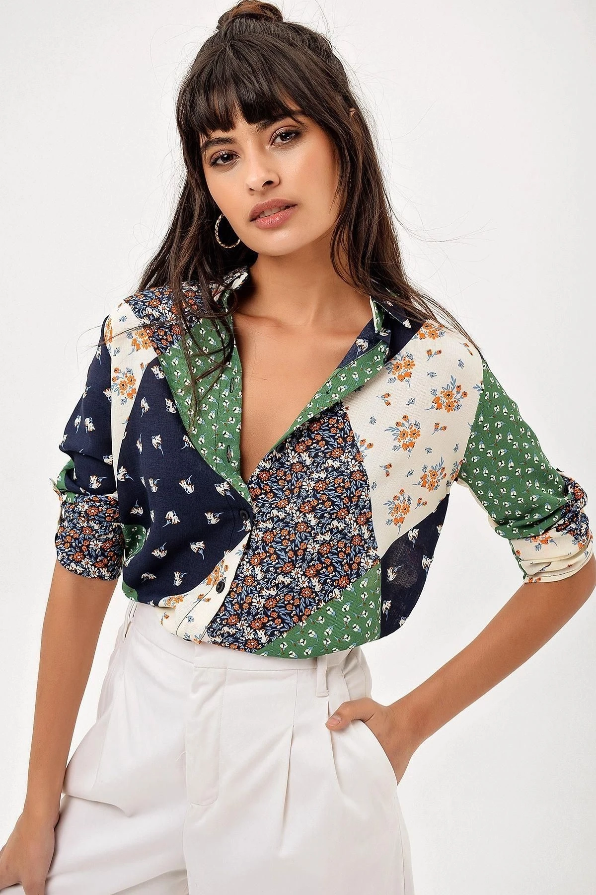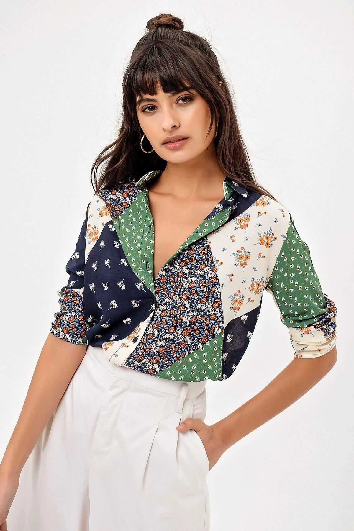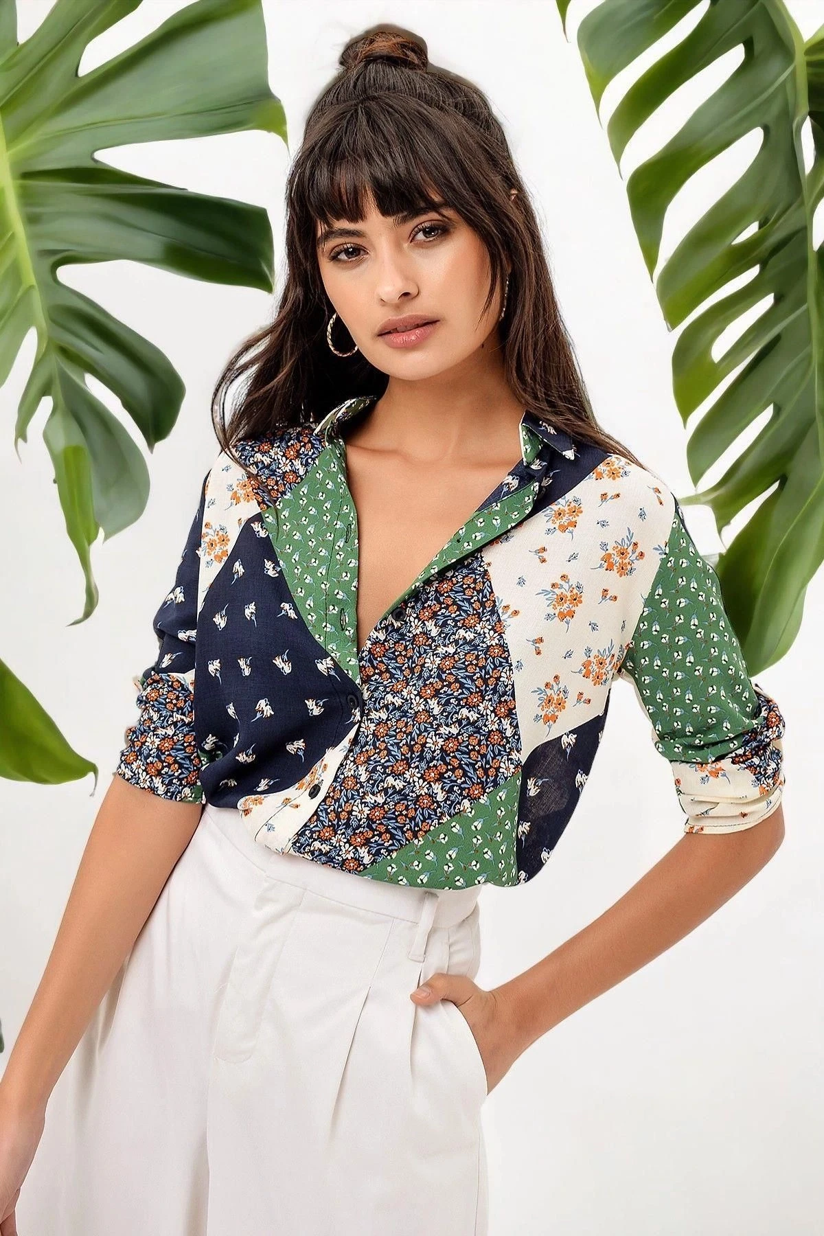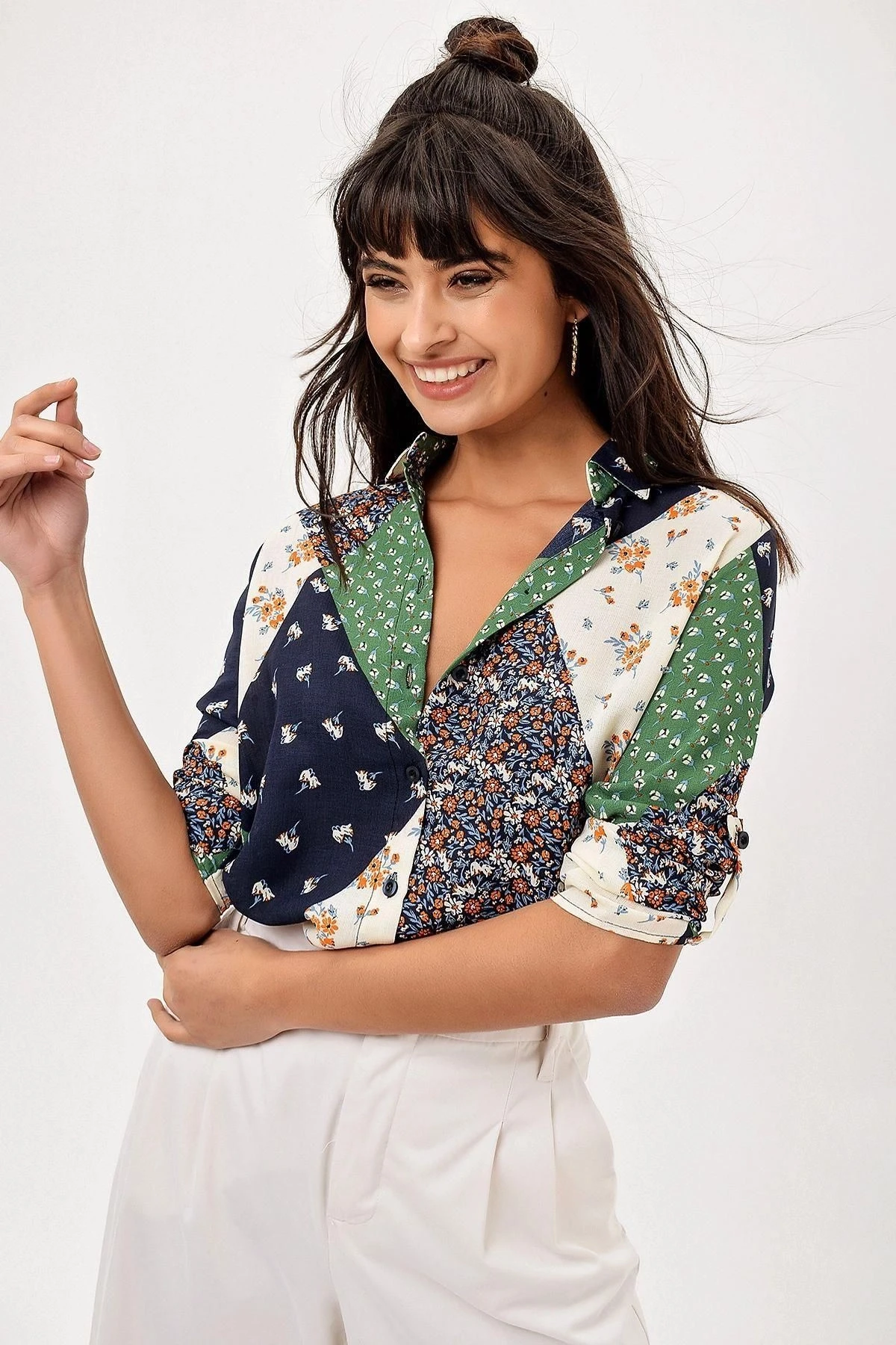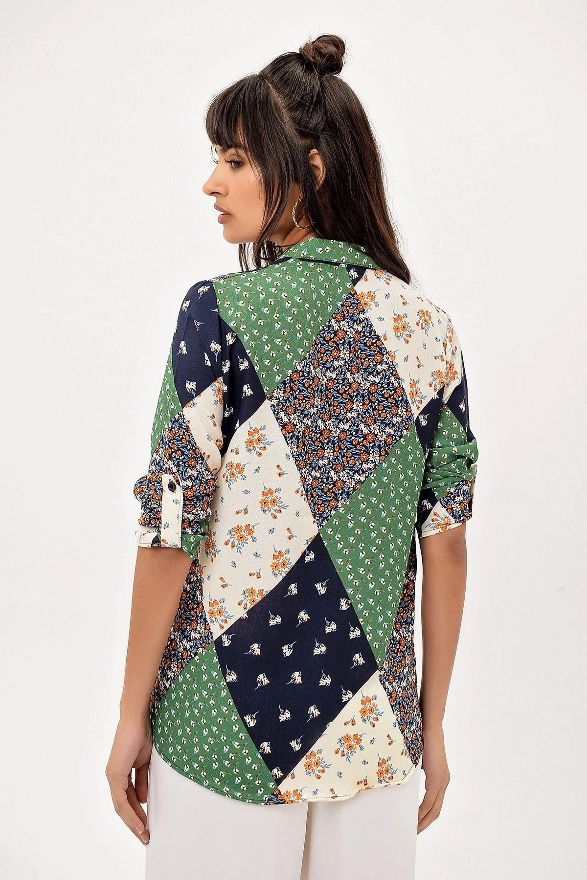 Bu patchwork desenli gömlek, klasik yaka ve uzun kollu kesimi ile şık bir görünüm sunar.; Gömleğin rengi lacivert olup, zamansız bir şıklık katmaktadır.; Patchwork deseni ise çeşitli renklerin birleşimiyle oluşturulmuş, özgün bir tasarıma sahiptir.; Ürünün kumaşı %100 polyesterden yapılmıştır, bu da gömleği dayanıklı ve rahat bir hale getirir.; Polyester kumaş, yıpranmaya karşı dirençli olup uzun süreli kullanıma uygundur.; Ayrıca kumaşın hafif ve nefes alabilir özellikleri sayesinde, gün boyu konforlu bir şekilde giyebilirsiniz.; Patchwork deseni, gömleğe dinamik bir görünüm kazandırırken aynı zamanda şık ve modern bir tarz yaratır.; Renklerin uyumlu bir şekilde bir araya gelmesiyle dikkat çeken desen, görsel olarak çarpıcı bir etki yaratır.; Bu gömlek, sıradanın dışına çıkmak isteyenler için mükemmel bir seçimdir.; Regular kesimi sayesinde, gömlek vücuda rahat bir şekilde oturur ve hareket özgürlüğü sunar.; Standart boyuyla da her bedene uyum sağlar.; Hem günlük hayatta hem de özel etkinliklerde kullanabileceğiniz çok yönlü bir parçadır.; Bu lacivert renkli, patchwork desenli gömlek ile tarzınızı tamamlayabilir, özgün bir görünüm elde edebilirsiniz.; Kaliteli kumaşı ve şık tasarımıyla hem rahatlığı hem de stilinizi ön plana çıkarır.; Kendinizi özel hissetmenizi sağlayacak bu gömlek, gardırobunuzun vazgeçilmez parçalarından biri olacak.