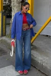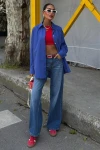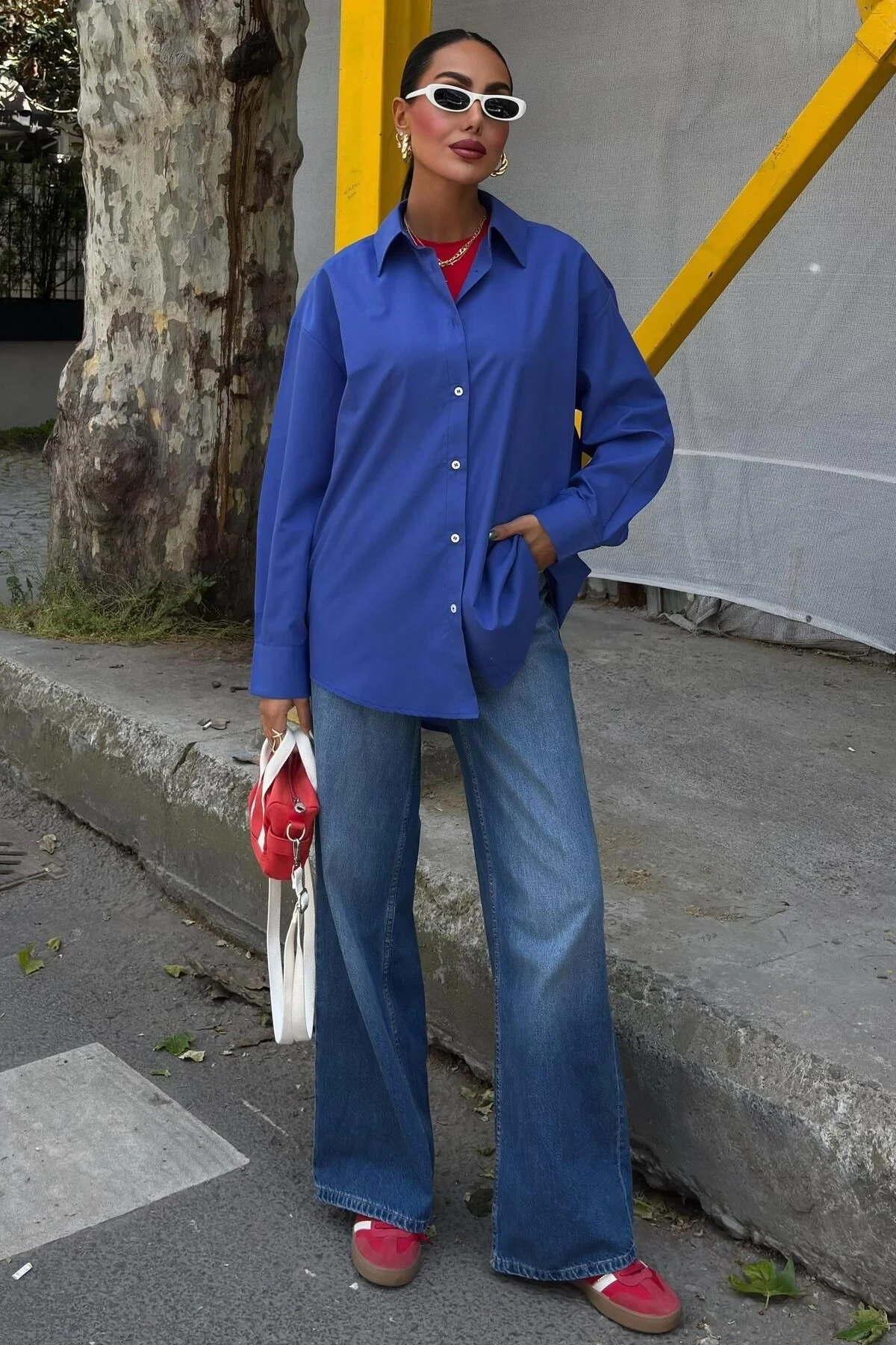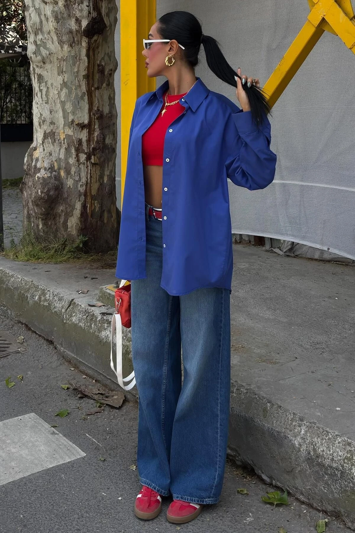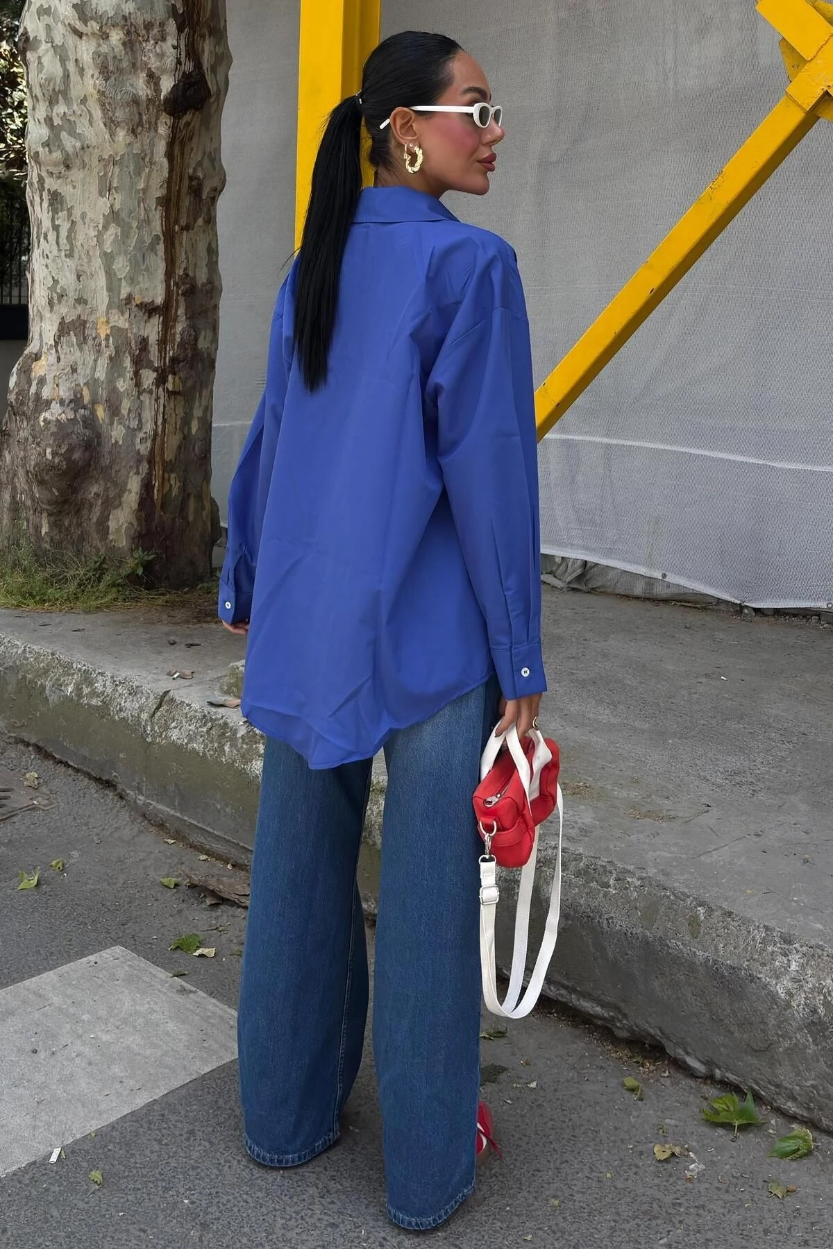Kadın Lacivert Poplin Oversize Uzun Gömlek