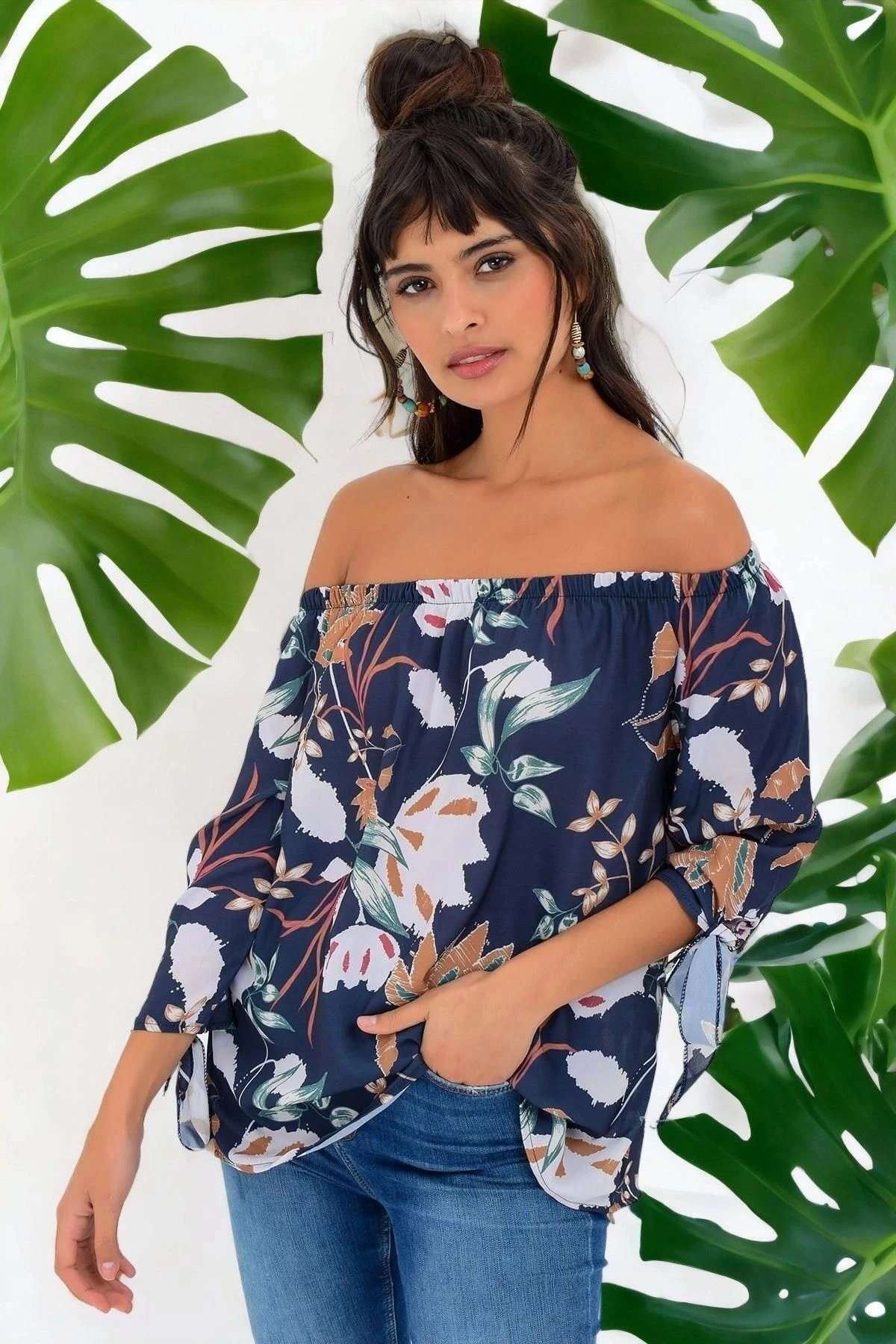 Bu şık ve göz alıcı lacivert renkteki straplez yaka bluz, gardırobunuzun vazgeçilmez parçalarından biri olacak.; Truvakar kol detayları ve çiçek desenli tasarımıyla dikkat çeken bu bluz, zarif bir görünüm sunuyor.; Oversize kesimine ek olarak kolları bağlamalı olması, tarzınıza modern bir dokunuş katıyor.; Bu bluz, yüksek kaliteli polyester kumaştan üretilmiştir, böylece dayanıklı ve uzun ömürlü bir kullanım sağlar.; %100 Polyester içeriği, yumuşak ve konforlu bir dokunuş sunarken, kolay bakım özelliğiyle de dikkat çekiyor.; Lacivert renk, zamanın ötesindeki şıklığıyla bilinir ve her mevsime uyum sağlar.; Bu bluz, herhangi bir renkle mükemmel bir şekilde uyum sağlayacak ve stilinizi tamamlayacak.; Straplez yaka, feminen ve zarif bir görünüm sunarken, truvakar kol detayları bluza dinamik bir hava katıyor.; Çiçek desenli tasarımı, feminen ve romantik bir etki yaratırken, bluza zarif bir dokunuş katar.; Bu bluz, oversize kesimiyle rahat bir giyim deneyimi sunar ve vücudunuza hoş bir şekilde oturur.; Standart boyu, çeşitli bedenlerde mükemmel bir şekilde uyum sağlar.; Bu harika bluz, hem özel etkinliklerde hem de günlük giyimde rahatlıkla tercih edebileceğiniz çok yönlü bir parçadır.; Herhangi bir kombinasyonla mükemmel bir uyum sağlayarak şıklığınızı ve tarzınızı tamamlar.; Bu sezonun trendlerini yakalamak ve gardırobunuza şıklık katmak için bu bluzu tercih edebilirsiniz.; Yüksek kaliteli kumaşı ve etkileyici tasarımıyla her zaman öne çıkmanızı sağlar.