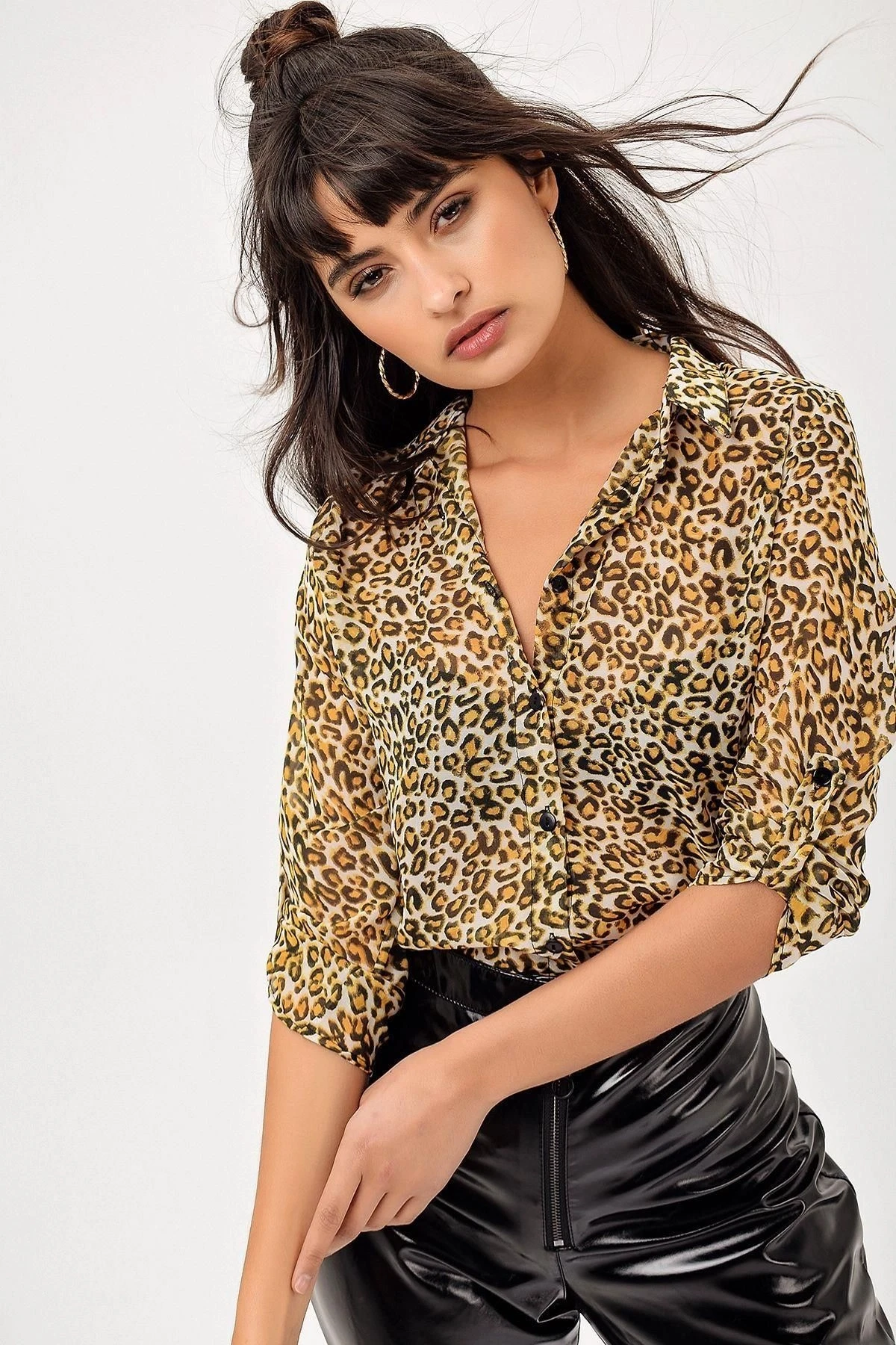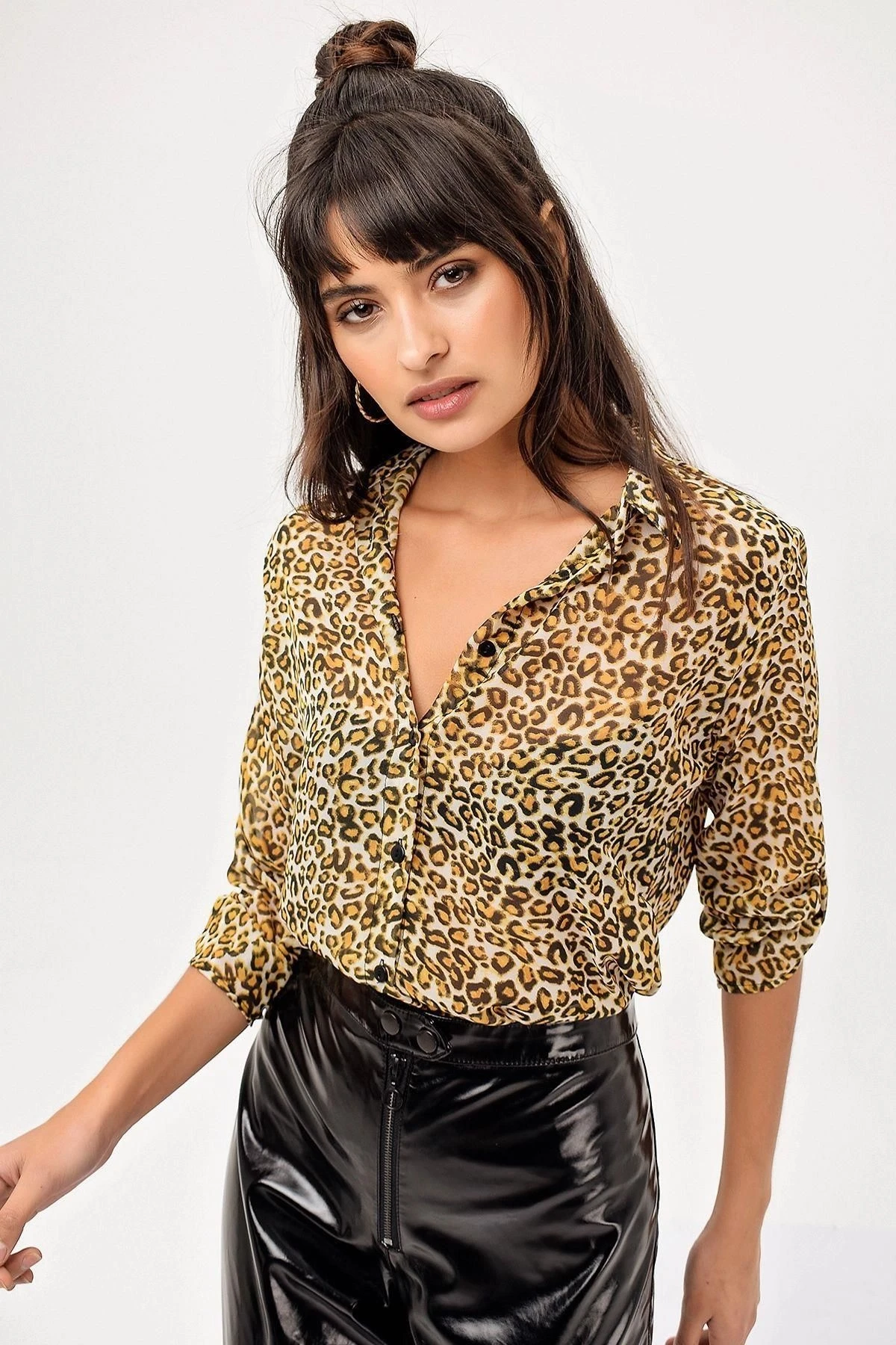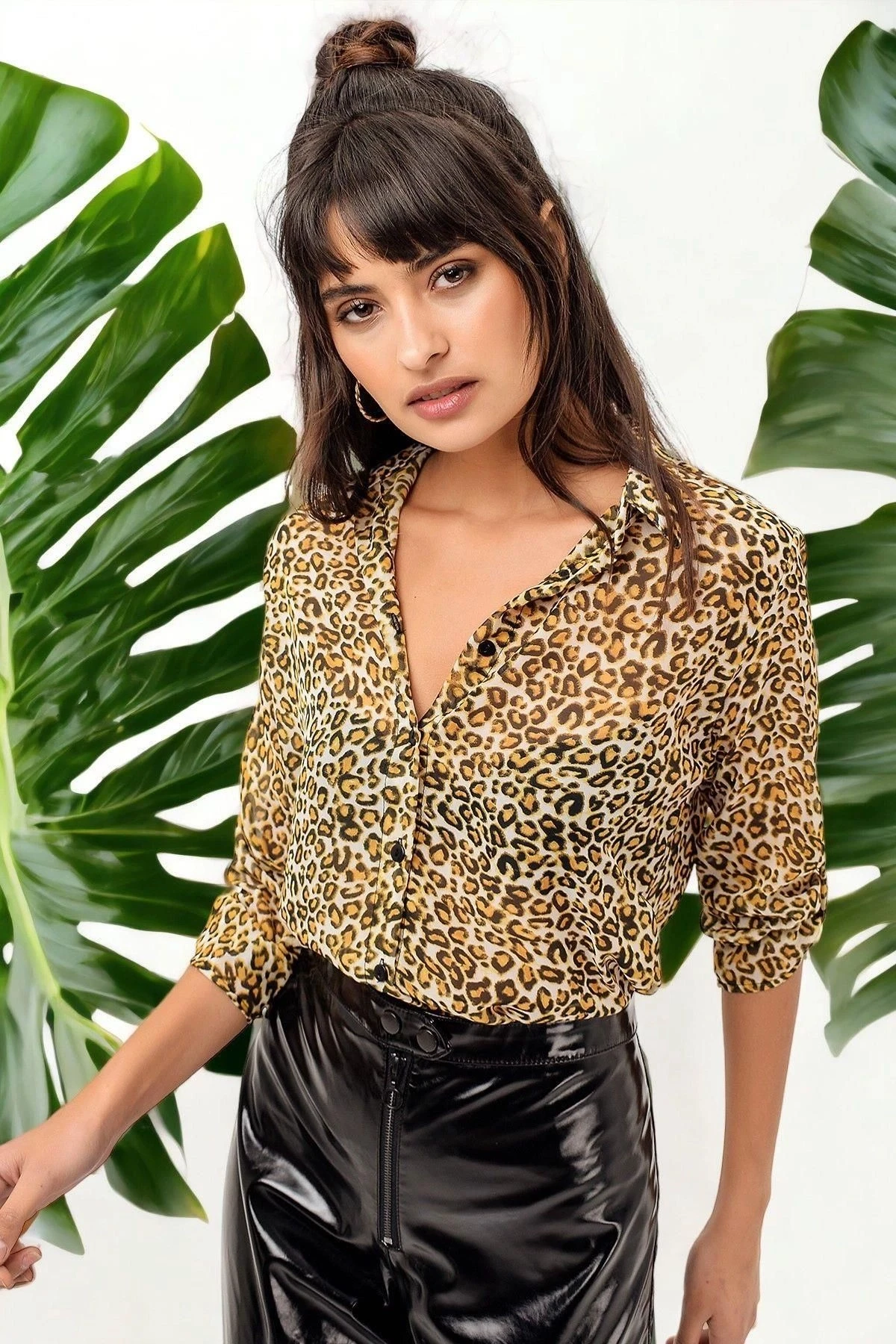 Leopar Desen Kadın Gömlek