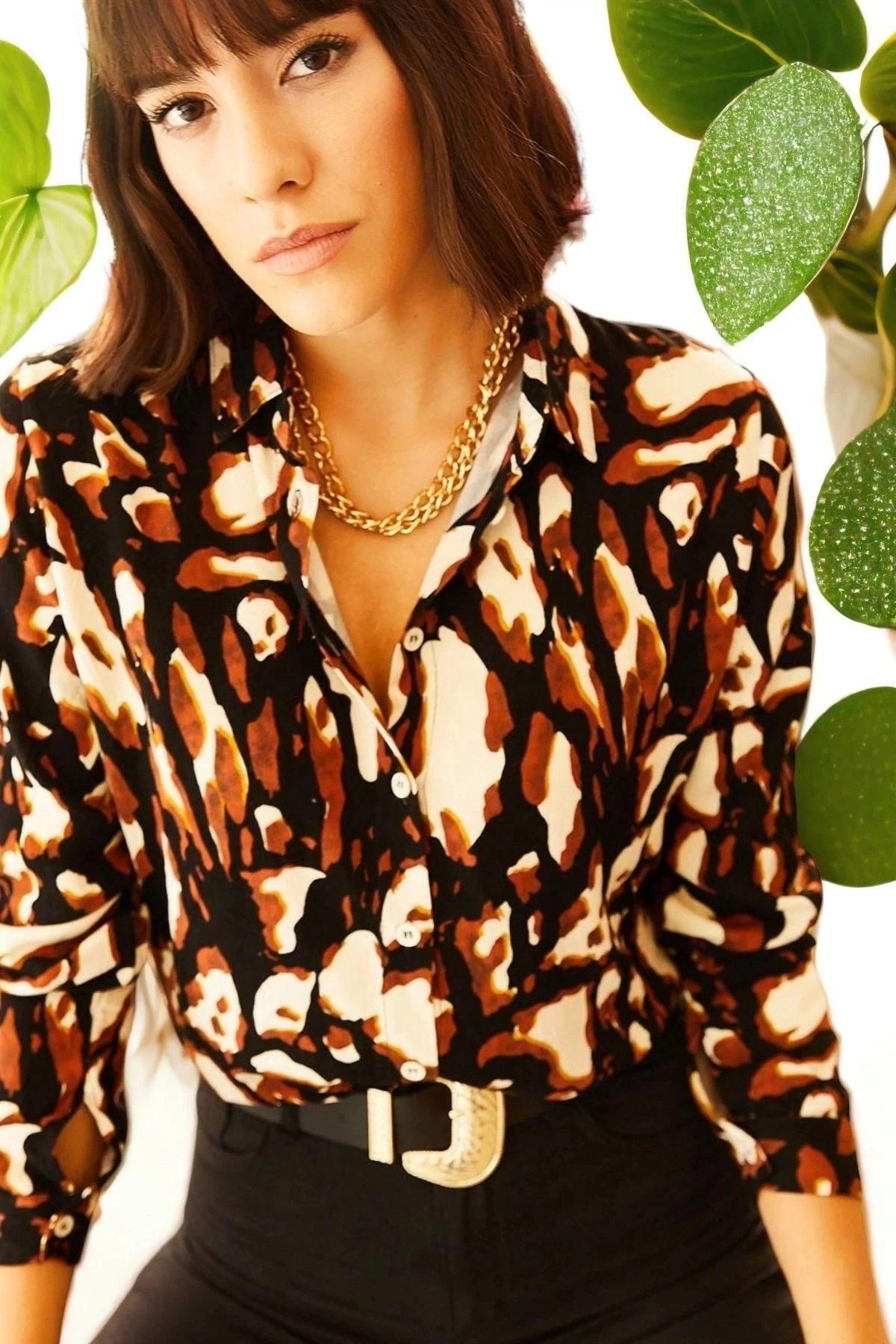 Yeni moda desenli klasik yaka uzun kol standart boy gömlek ile stilinize bir dokunuş katın! Bu gömlek, etkileyici leopar deseniyle dikkat çekiyor.; Zarif ve modern tasarımıyla öne çıkan bu ürün, hem şık hem de rahat bir kullanım sunuyor.; Gömleğin kumaş içeriği %100 polyesterden oluşuyor, bu da hem dayanıklılığını artırıyor hem de kolay bakım sağlıyor.; Polyester kumaş, kırışıklıklara karşı dirençlidir ve ütü gerektirmez.; Aynı zamanda nefes alabilir özelliği sayesinde gün boyu ferahlık sağlar.; Leopar deseni, moda dünyasında her zaman ilgi çeken bir tasarımdır.; Bu gömlek, cesur ve çarpıcı bir renk kalıbıyla birleştirilmiştir, bu da size dikkat çekici bir görünüm kazandırır.; Gömleğin bu etkileyici deseni, herhangi bir kıyafeti tamamlayarak tarzınızı güçlendirir.; Klasik yaka tasarımı, her zaman şıklığı ve zarafeti temsil eder.; Bu standart boy gömlek, her vücut şekline uyum sağlamak için tasarlanmıştır ve herhangi bir durumda giyilebilir.; İster iş ortamında şık bir görünüm elde etmek isteyin, ister arkadaşlarınızla bir araya gelirken rahat bir stil tercih edin, bu gömlek size çok yönlü bir seçenek sunar.; Leopar desenli klasik yaka uzun kol standart boy gömlek, tarzınıza ve gardırobunuza şıklık katacak bir seçenektir.; Hem şık hem de rahat olmasının yanı sıra dayanıklı kumaş yapısıyla da uzun süre kullanabilirsiniz.; Bu gömlek, modern ve trend bir görünüm elde etmek isteyenler için mükemmel bir seçimdir.