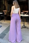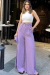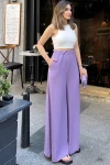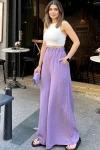 Kadın Lila Beli Lastikli, Cepli, Bol Paça Özel Kumaş, Rahat Kalıp Pantolon - Tesettüre Uygun