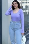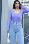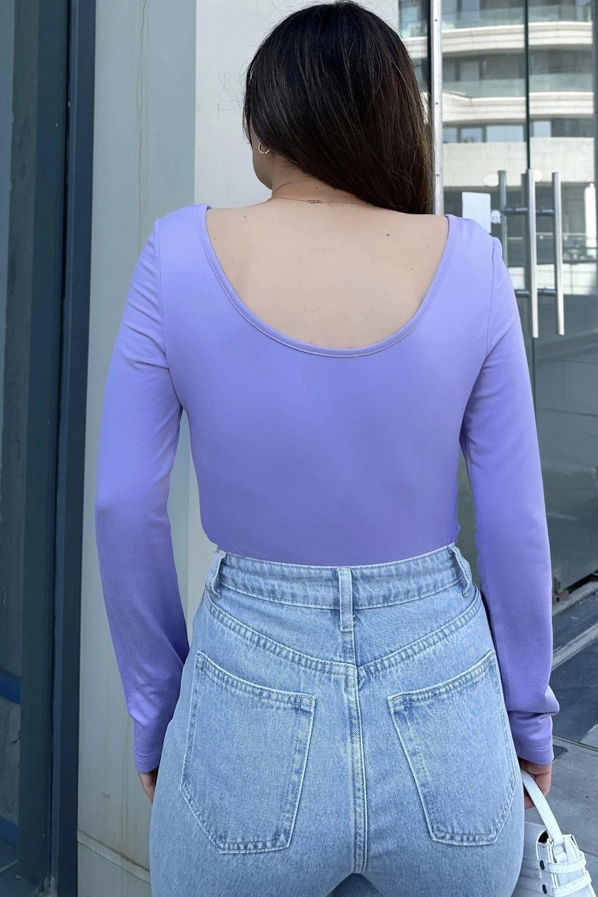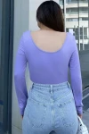 Kadın Lila Önü Ve Arkası Derin Dekolte Yaka, Regular Kesim, Terletmez, Pamuklu Penye Bluz