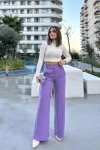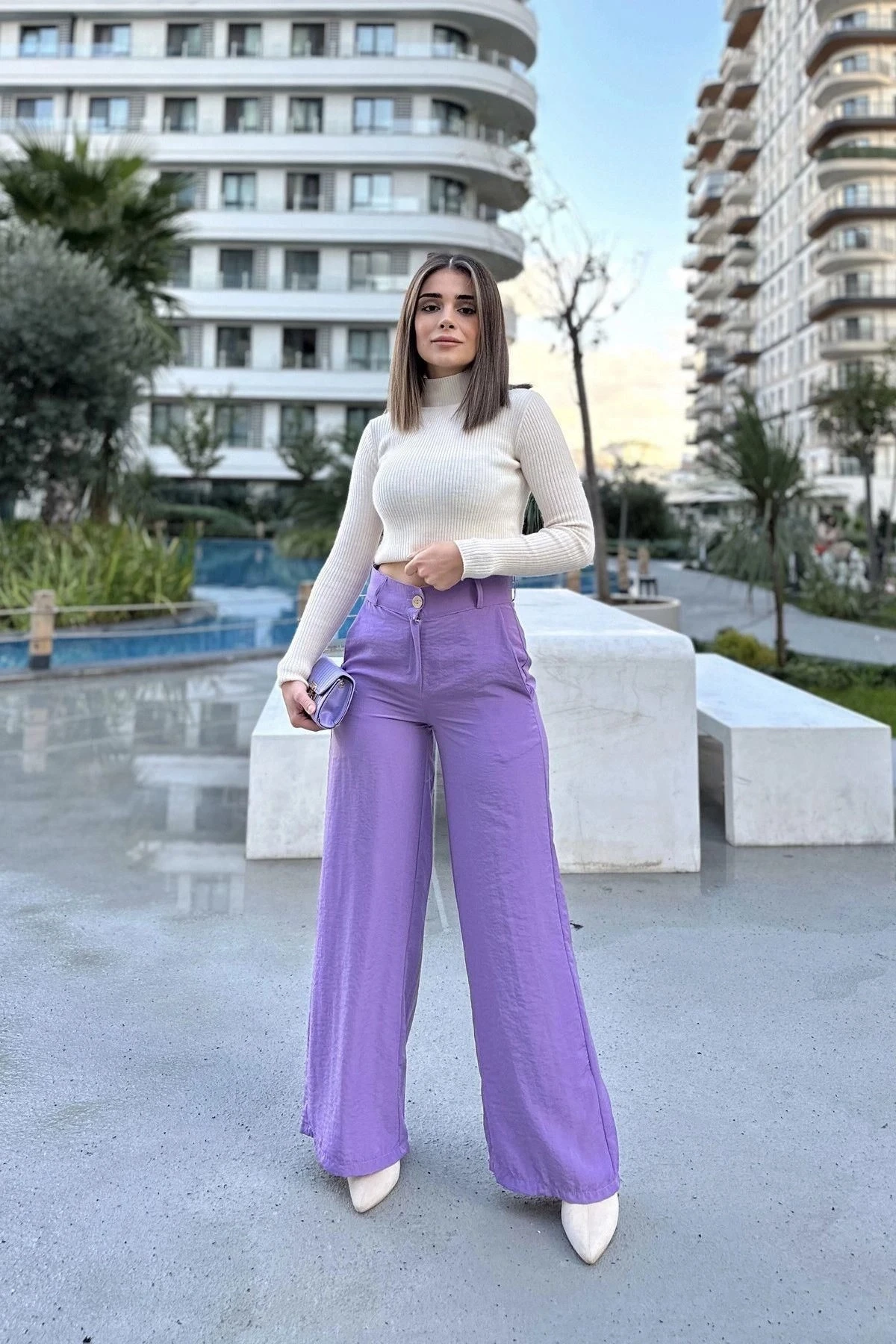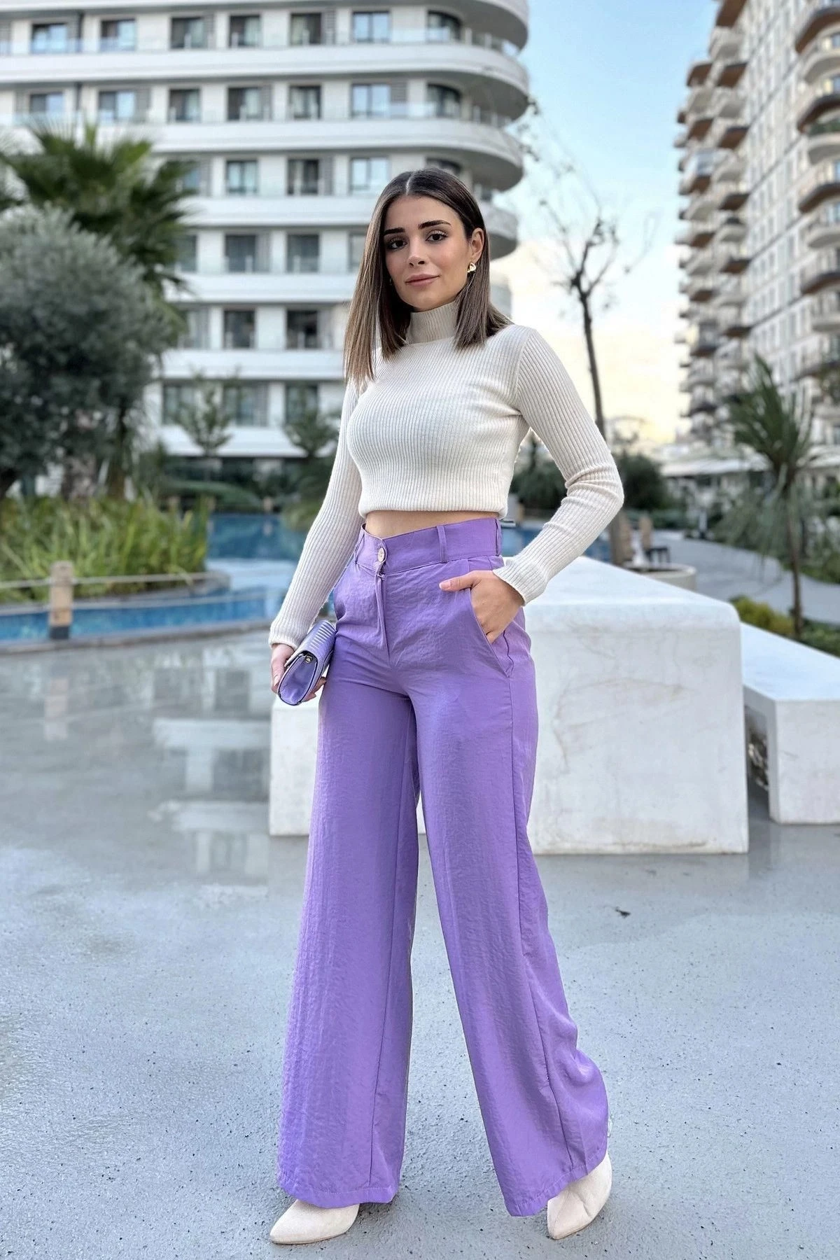 Kadın Lila Yüksek Bel, Cepli, Bol Paça Pantolon