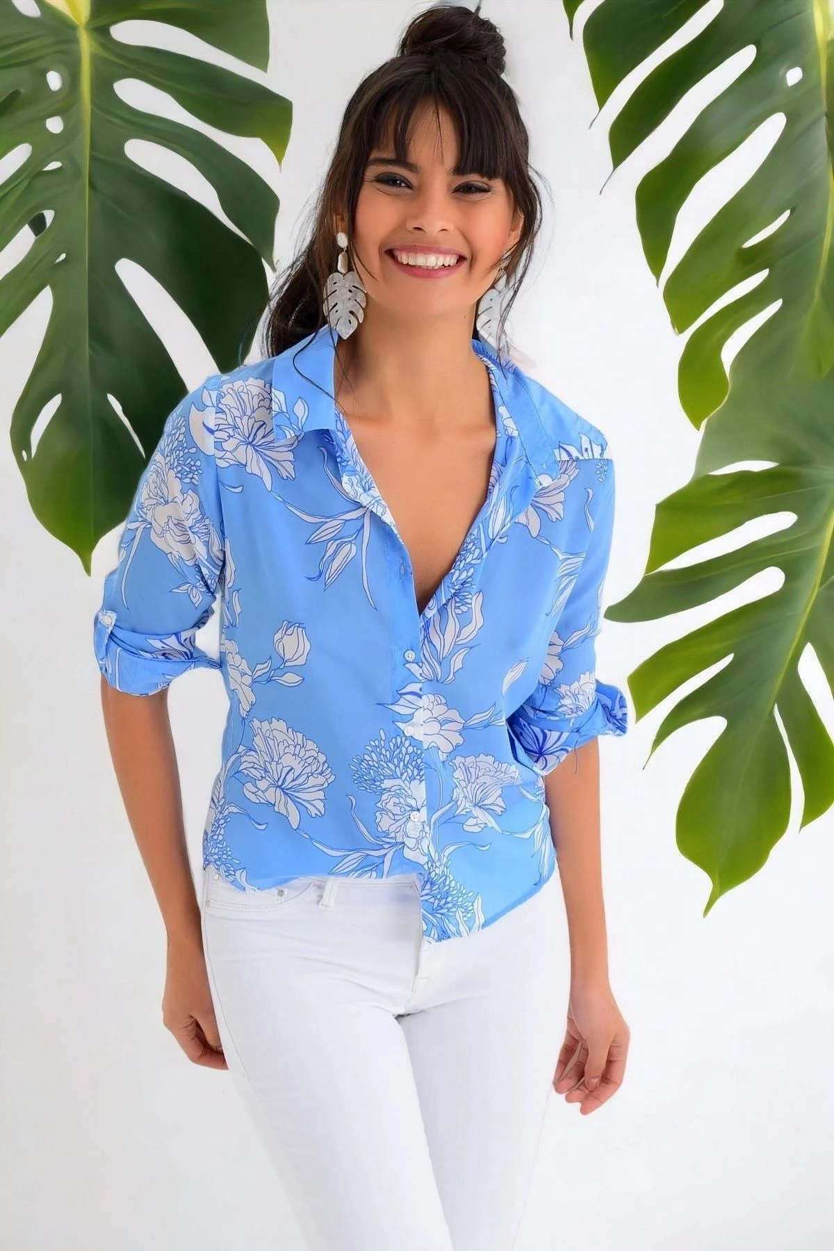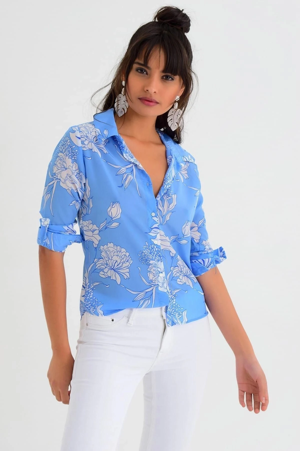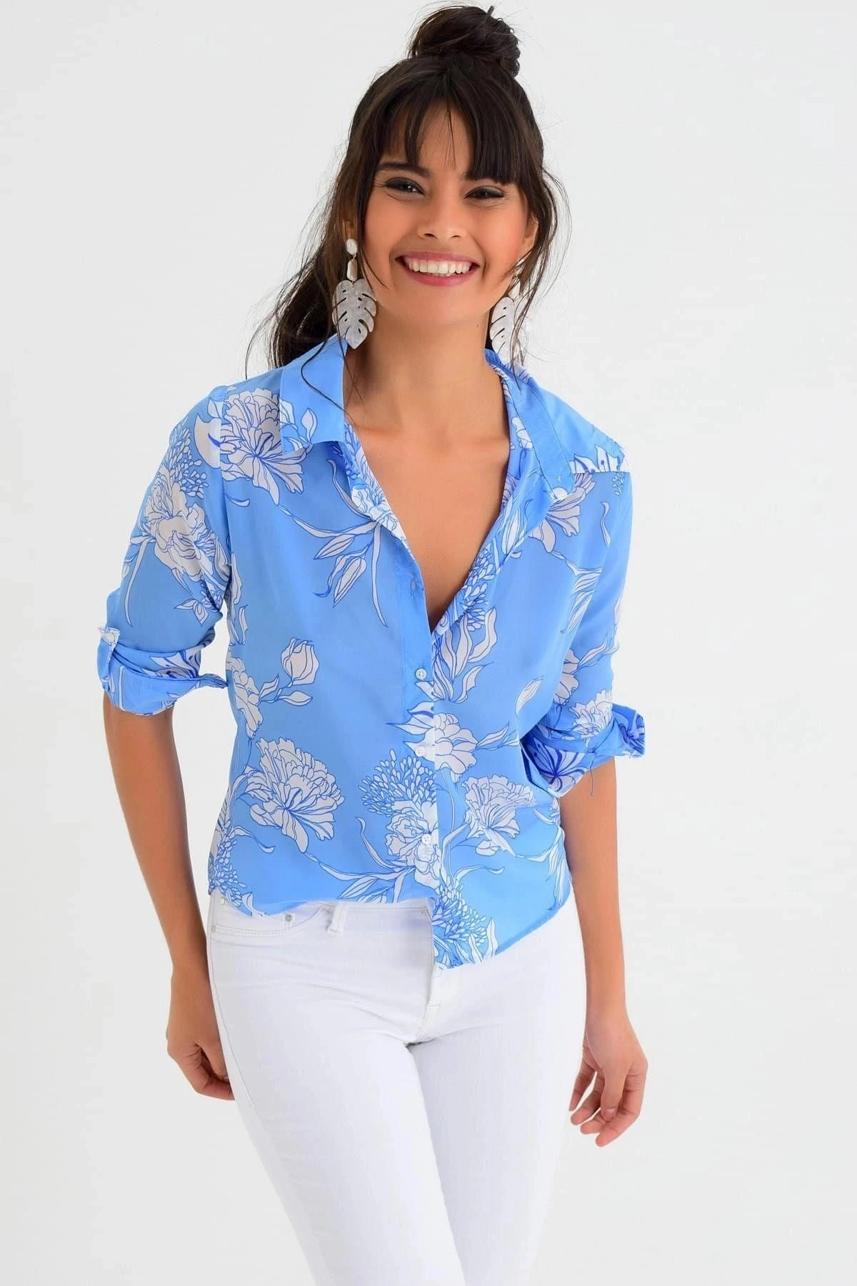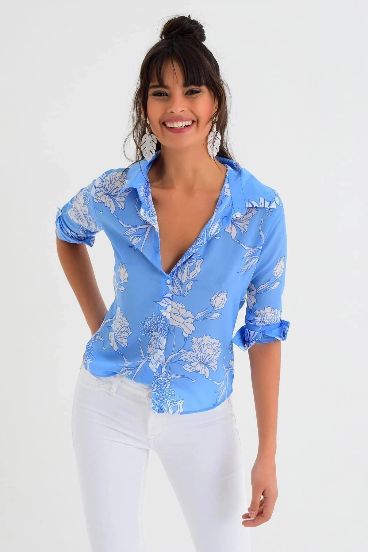 Bu mavi renk çiçek desenli uzun kollu gömlek, sadece görünümüyle değil, aynı zamanda yüksek kaliteli kumaş içeriğiyle de dikkat çekmektedir.; Gömleğin tamamı %100 polyesterden üretilmiştir, bu da hem dayanıklılığını artırırken hem de rahat bir giyim deneyimi sunar.; Gömleğin mavi renkli tasarımı, zarif ve şık bir görünüm sağlar.; Çiçek desenleri, gömleğe enerjik bir dokunuş katarak günlük giyiminizi canlandırır.; Renkler, uzun süre dayanıklı kalmak için özenle seçilmiş ve kalıcıdır, böylece yıkama ve kullanma sonrasında bile tazeliklerini korurlar.; Standart boy regular kesim, bu gömleği birçok bedene uygun hale getirir.; Rahat ve özgür bir hareket serbestisi sunarken aynı zamanda şık bir görünüm elde etmenizi sağlar.; Kumaşın yumuşak ve hafif dokusu, gün boyu konforlu bir giyim deneyimi sunar ve gömleğin vücudunuza tam oturmasını sağlar.; Bu gömlek, çeşitli etkinliklerde ve günlük yaşamda şık bir tercih olacaktır.; İster iş yerinde ister arkadaşlarınızla buluşurken kullanın, tarzınızı tamamlamak için mükemmel bir seçimdir.; Mavi renk ve çiçek desenleriyle kendinizi canlı ve neşeli hissedeceksiniz.; Özetlemek gerekirse, bu mavi renk çiçek desenli uzun kollu gömlek, %100 polyester kumaş içeriğiyle dayanıklı ve rahat bir seçenektir.; Renkleri kalıcıdır ve tasarımı şık ve enerjiktir.; Standart boy regular kesimi, geniş bir beden yelpazesine uyum sağlar.; Kendinizi güvenle ve stil sahibi hissetmek için bu gömleği gardırobunuza ekleyin.
